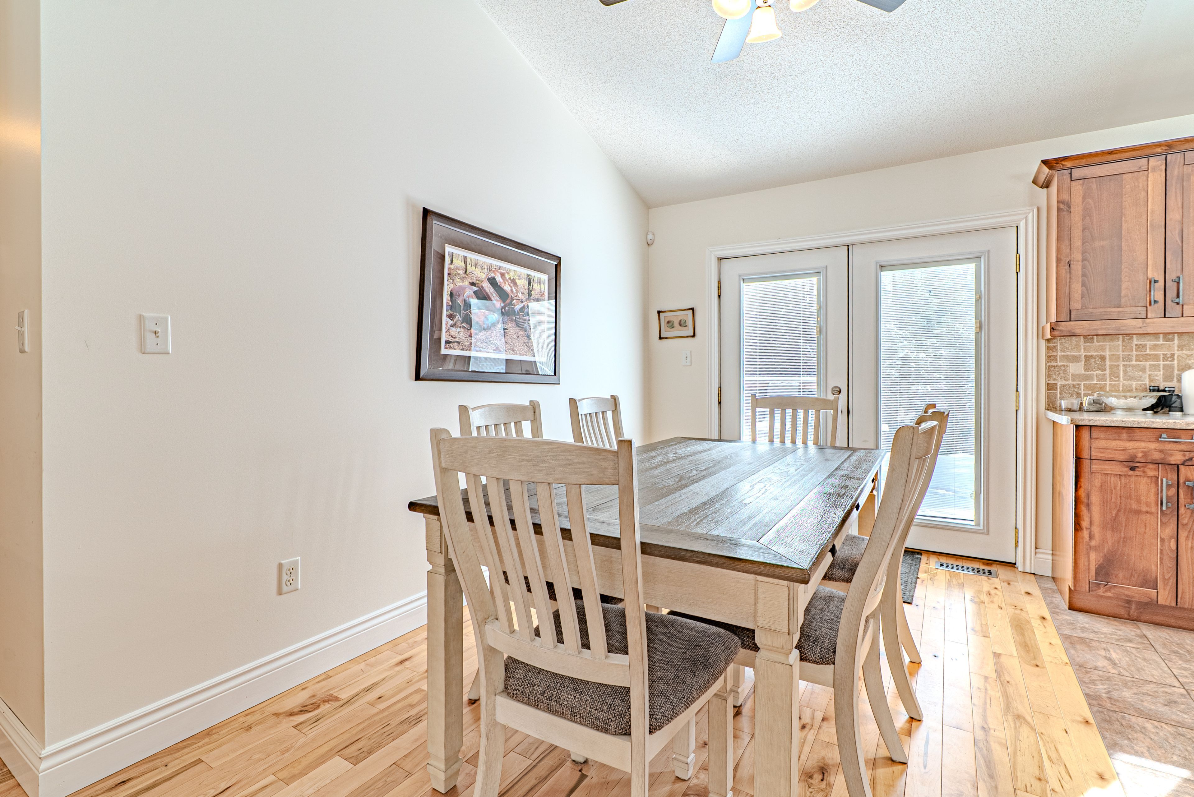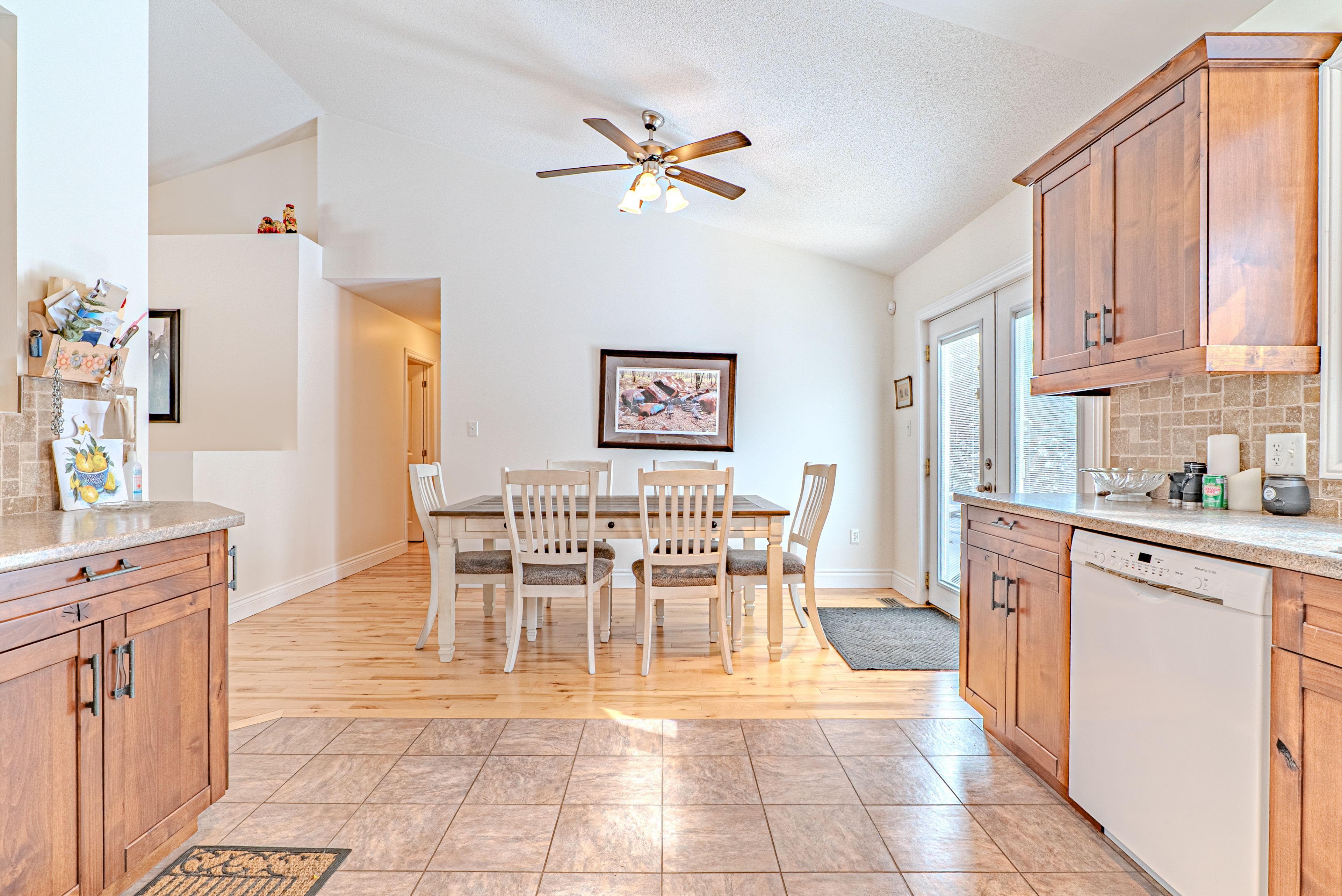 • Bright open-concept kitchen and dining area with large deck access.