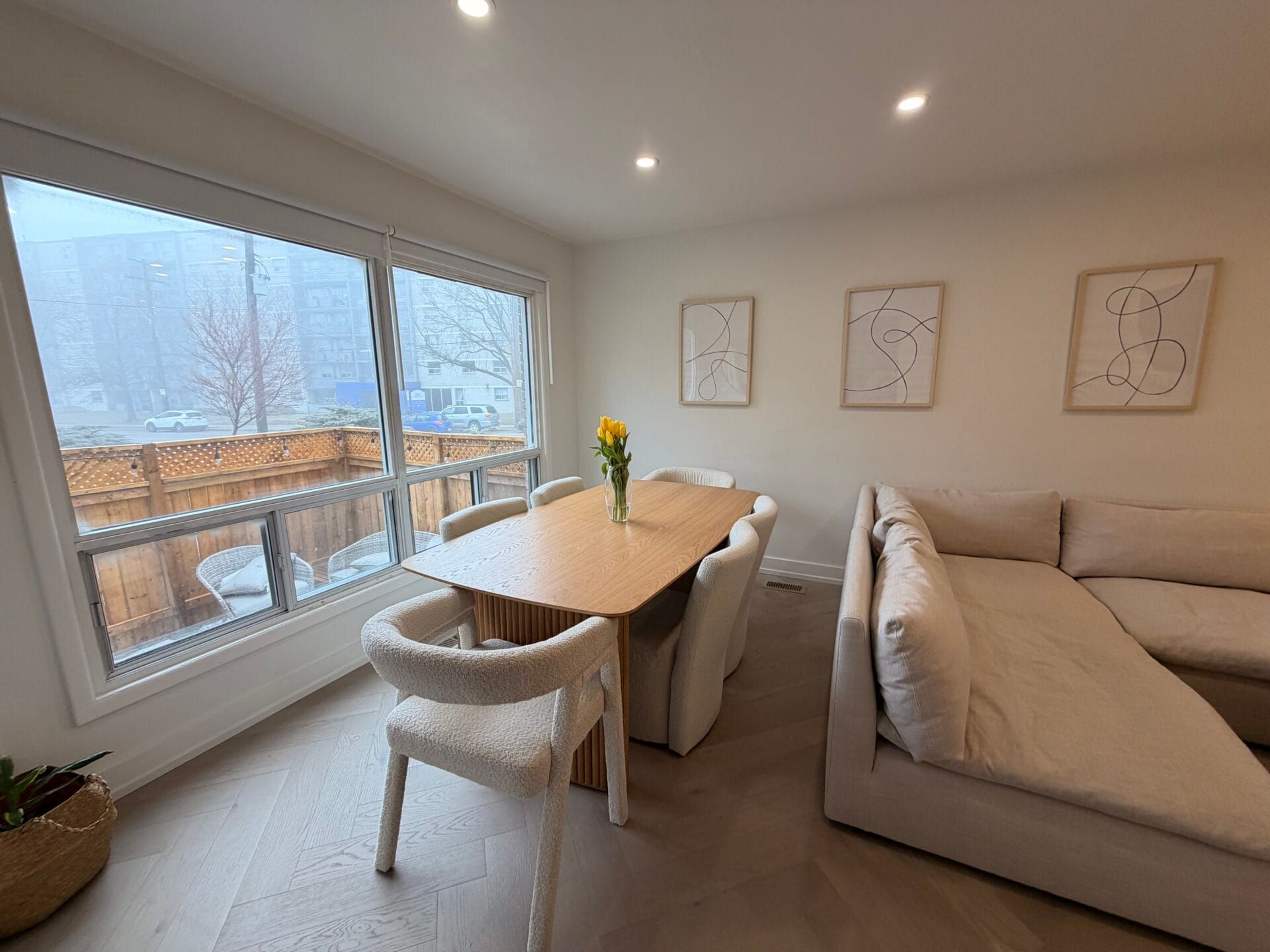 • Renovated townhome with modern finishes and smart layout.
