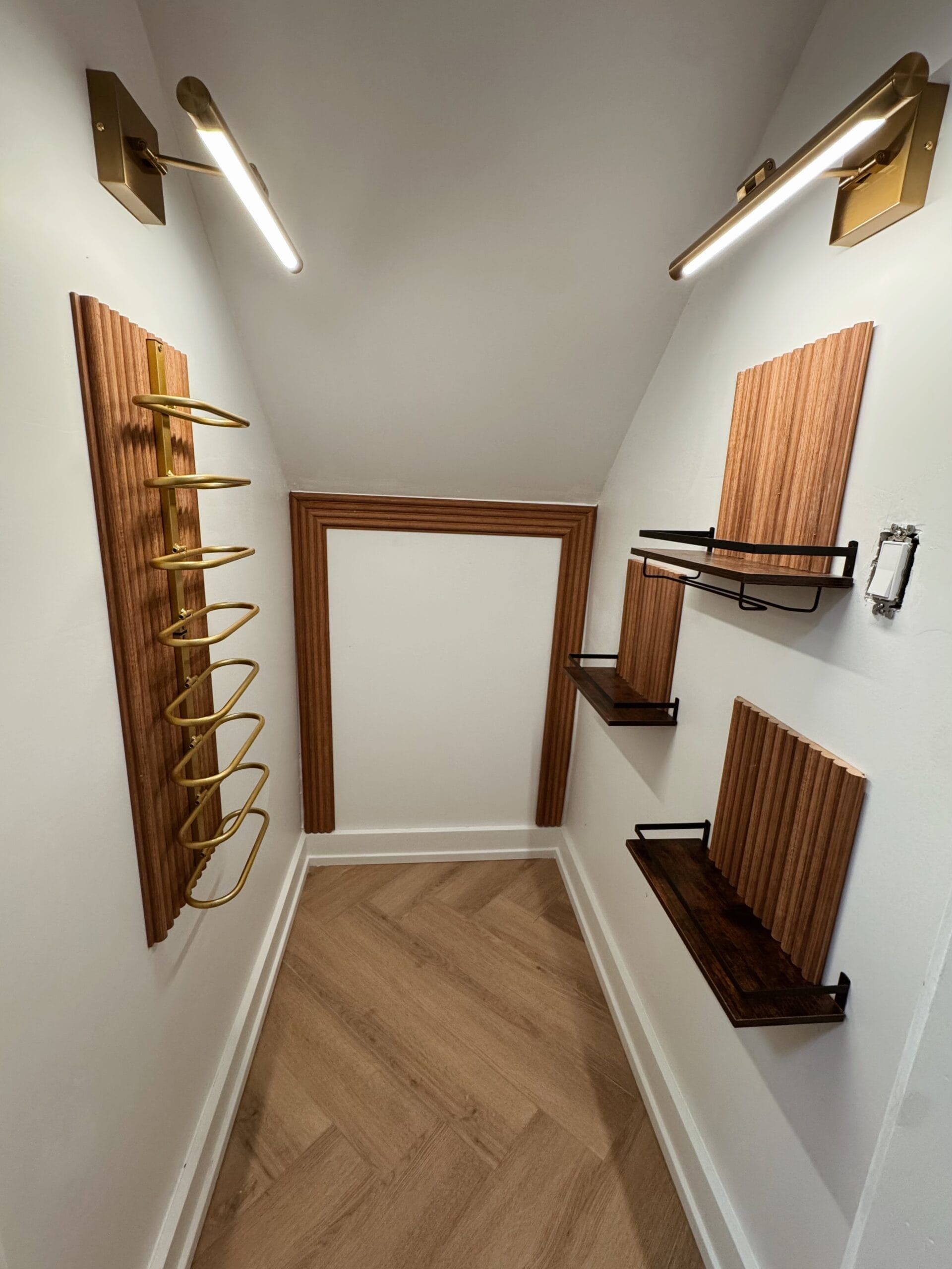 • Spacious primary bedroom with walk-in closet and fluted accent wall.