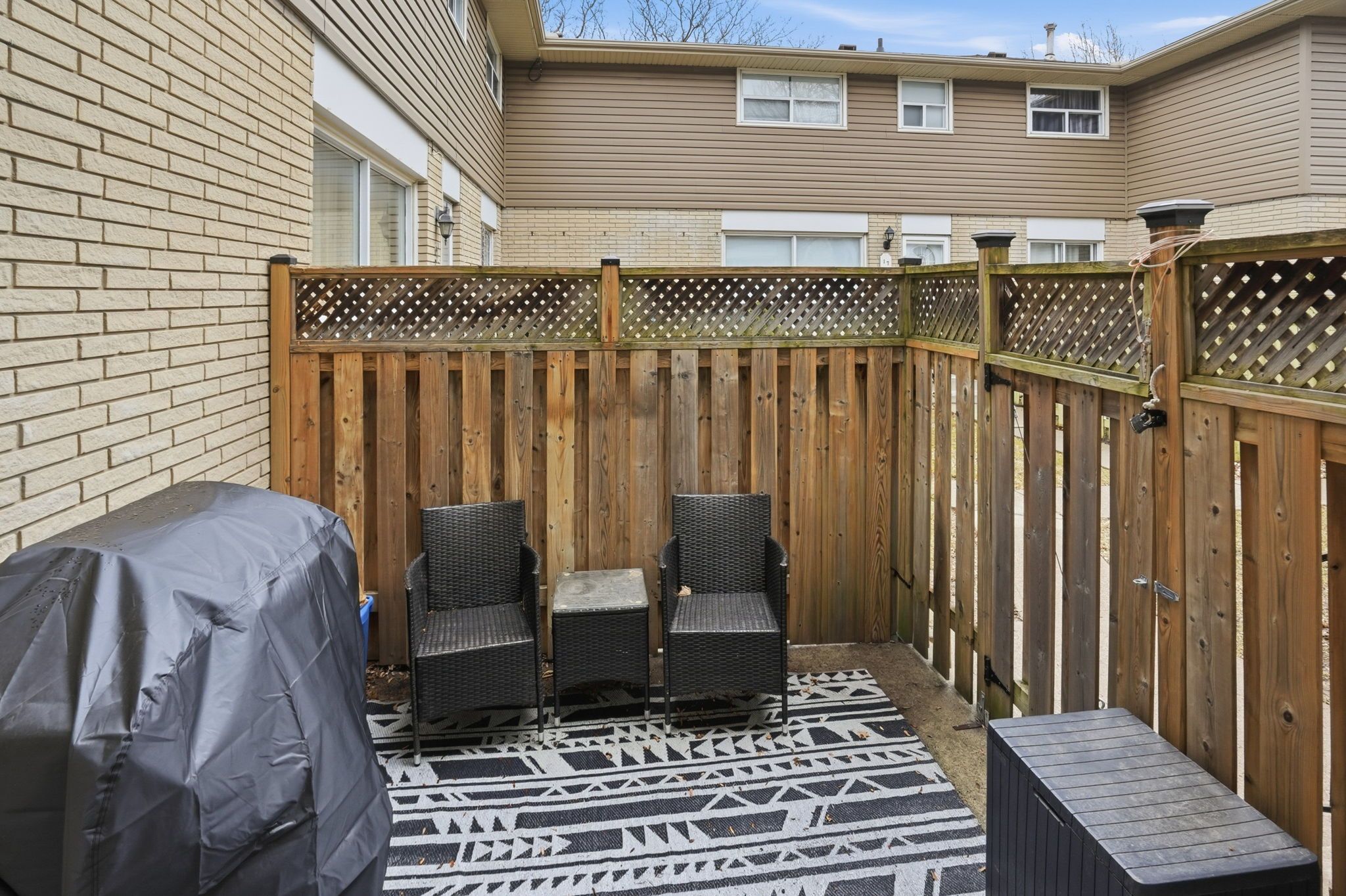 • Exclusive fenced-in front patio and green space perfect for gardening.