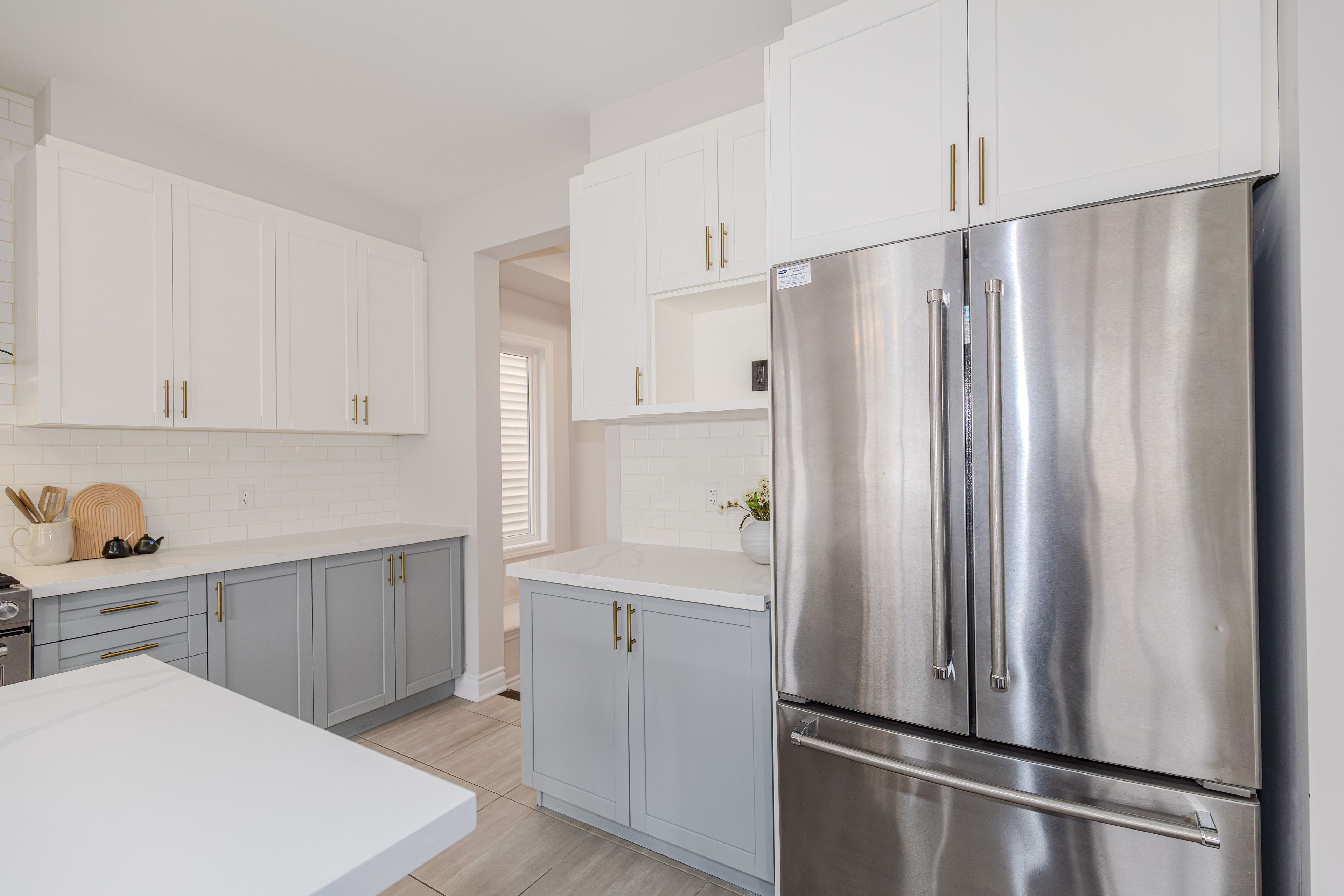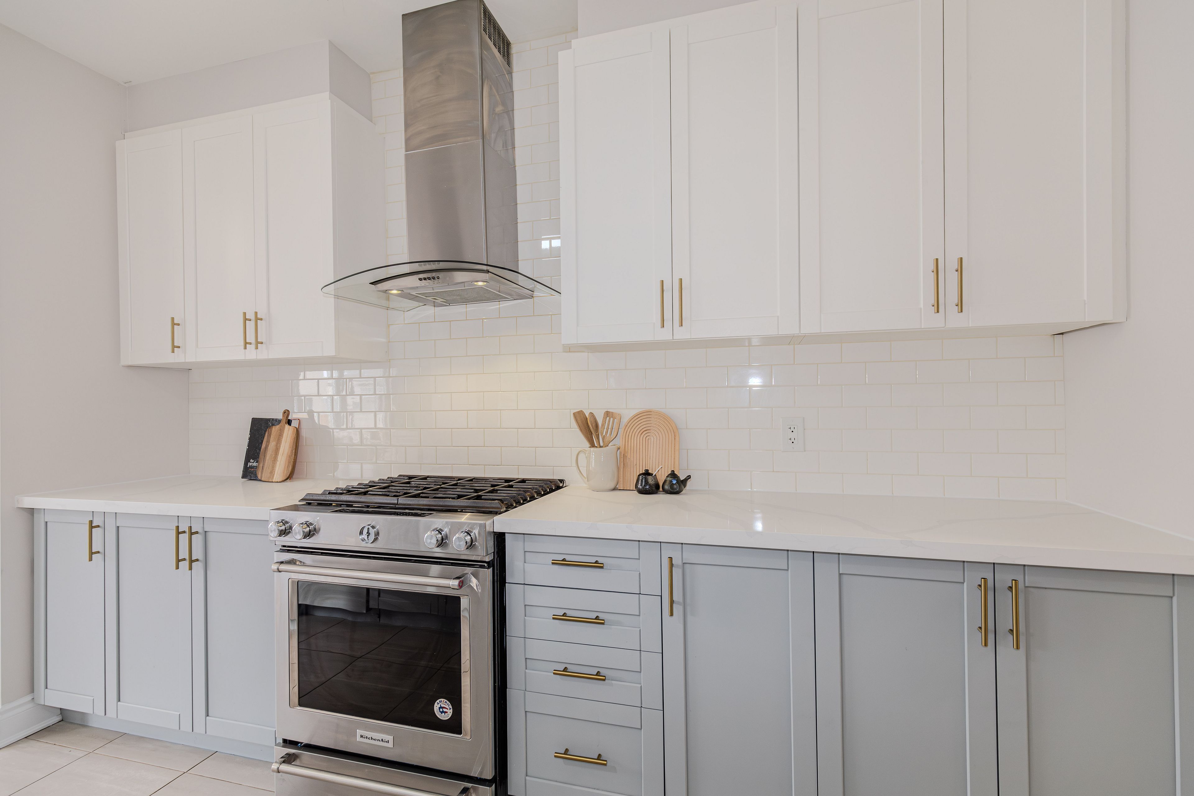 • Modern kitchen with new quartz countertops and stainless steel appliances.