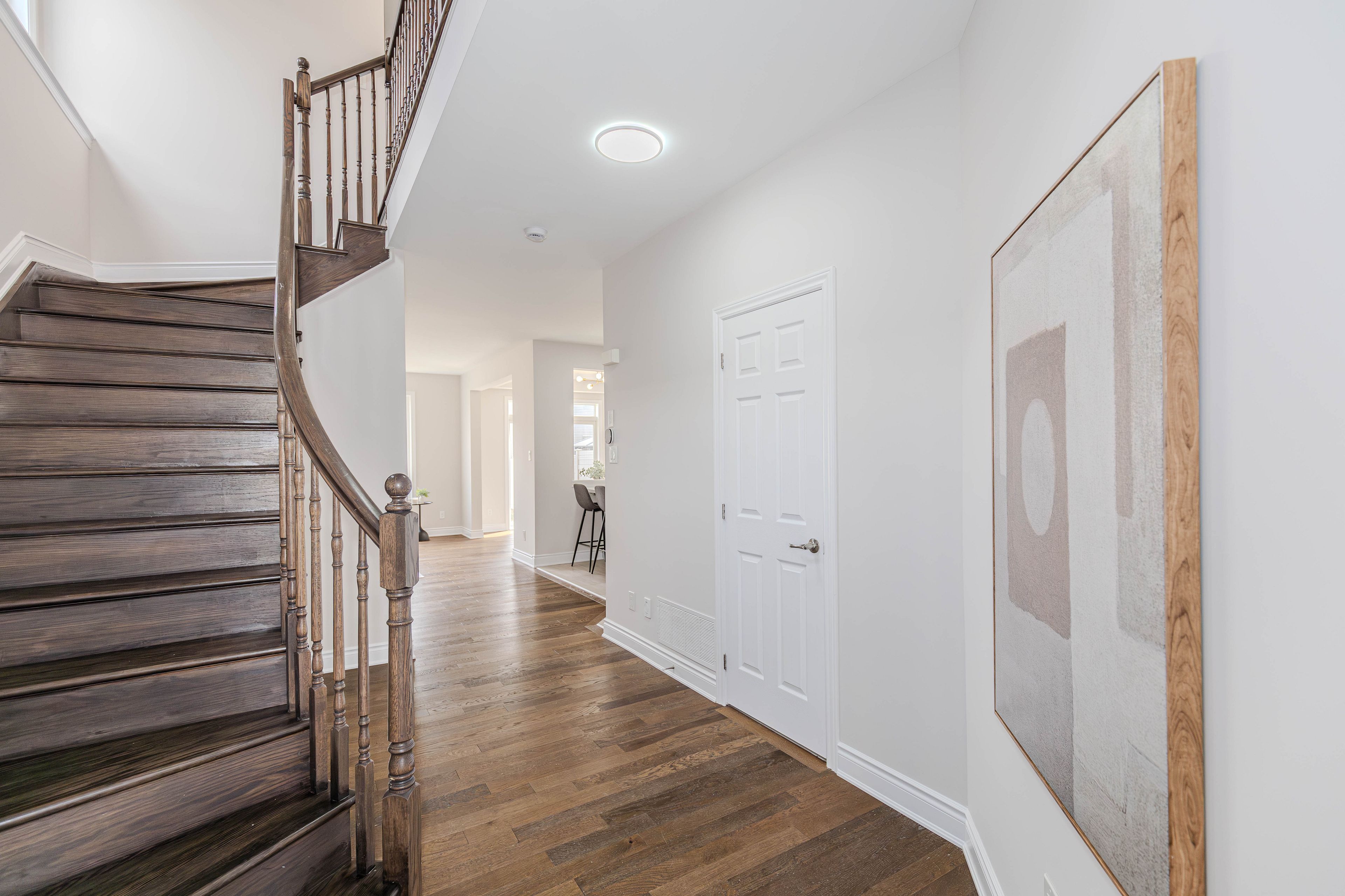Welcome to this beautifully upgraded 2020-built double-car garage single detached home, ideally located in a family-friendly stittsville neighbourhood with no front neighbours and direct views of rubicon park. This spacious 4-bedroom, 2. 5-bathroom residence offers a bright open-concept layout with 9-foot smooth ceilings, hardwood flooring throughout most of the main level, and fresh paint (2026). The modern kitchen features new quartz countertops (2026), updated cabinetry, stainless steel appliances, an upgraded gas stove, and a chimney-style hood fan. A convenient mudroom with built-in shelving and a generous closet provides excellent storage and potential for a walk-in pantry. Upstairs, the sun-filled south-facing primary suite includes two walk-in closets and an updated 3-piece ensuite with a new quartz countertop and faucet. Three additional generously sized bedrooms share a refreshed full bathroom, with two bedrooms enjoying peaceful park views. A second-floor laundry room adds everyday convenience. The basement includes a 3-piece bathroom rough-in, offering excellent potential for future customization. The backyard has been newly seeded, ready for your personal touch. Ideally situated within walking distance to shingwàkons public school and st. Bernadette catholic school, and close to shopping, dining, parks, and transit, this move-in-ready home combines comfort, style, and convenience-perfect for growing families.
