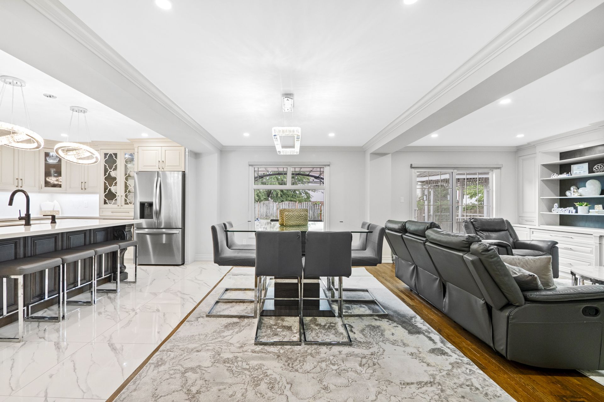 • Hardwood flooring and open-concept design enhance living space.