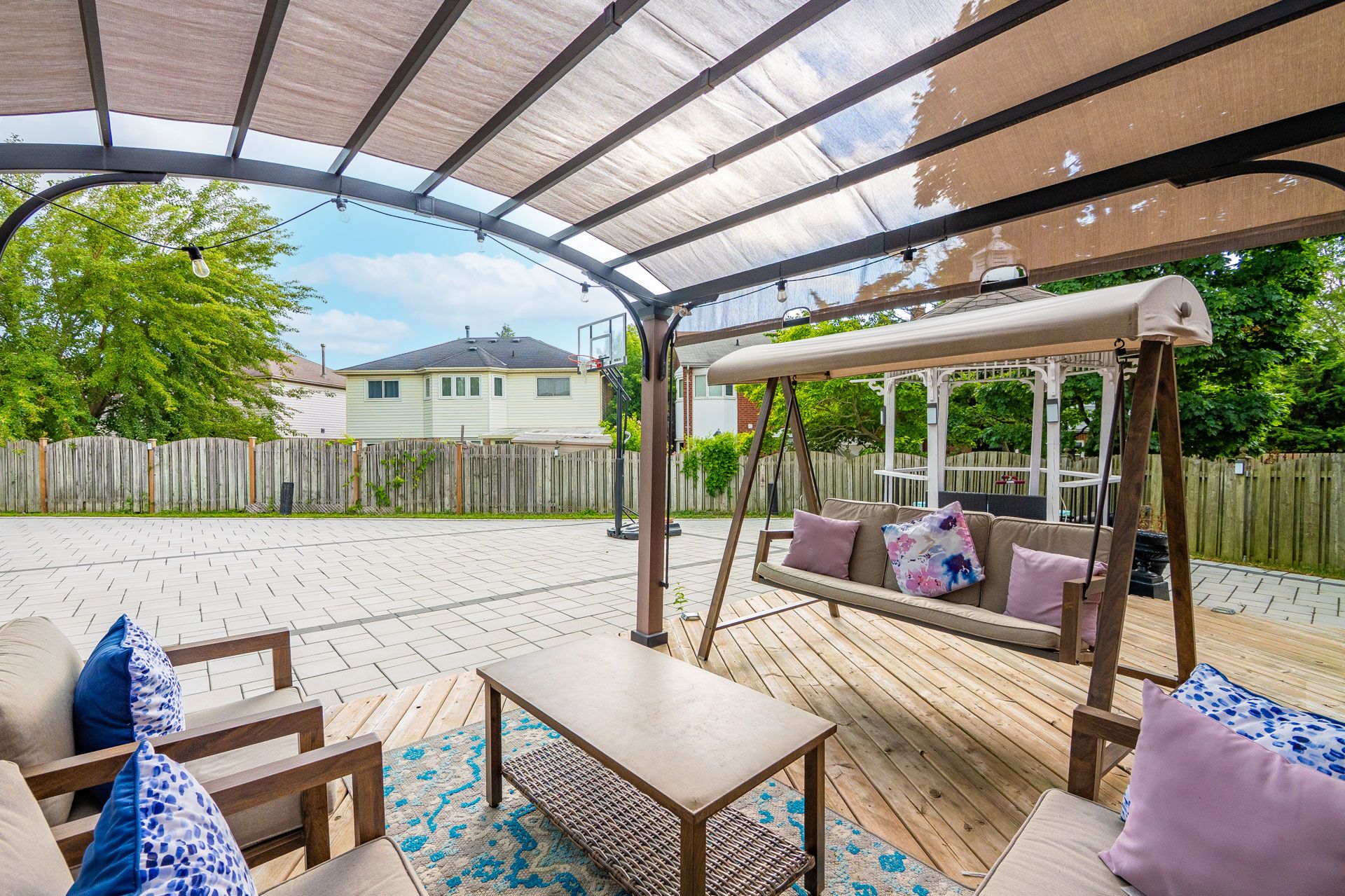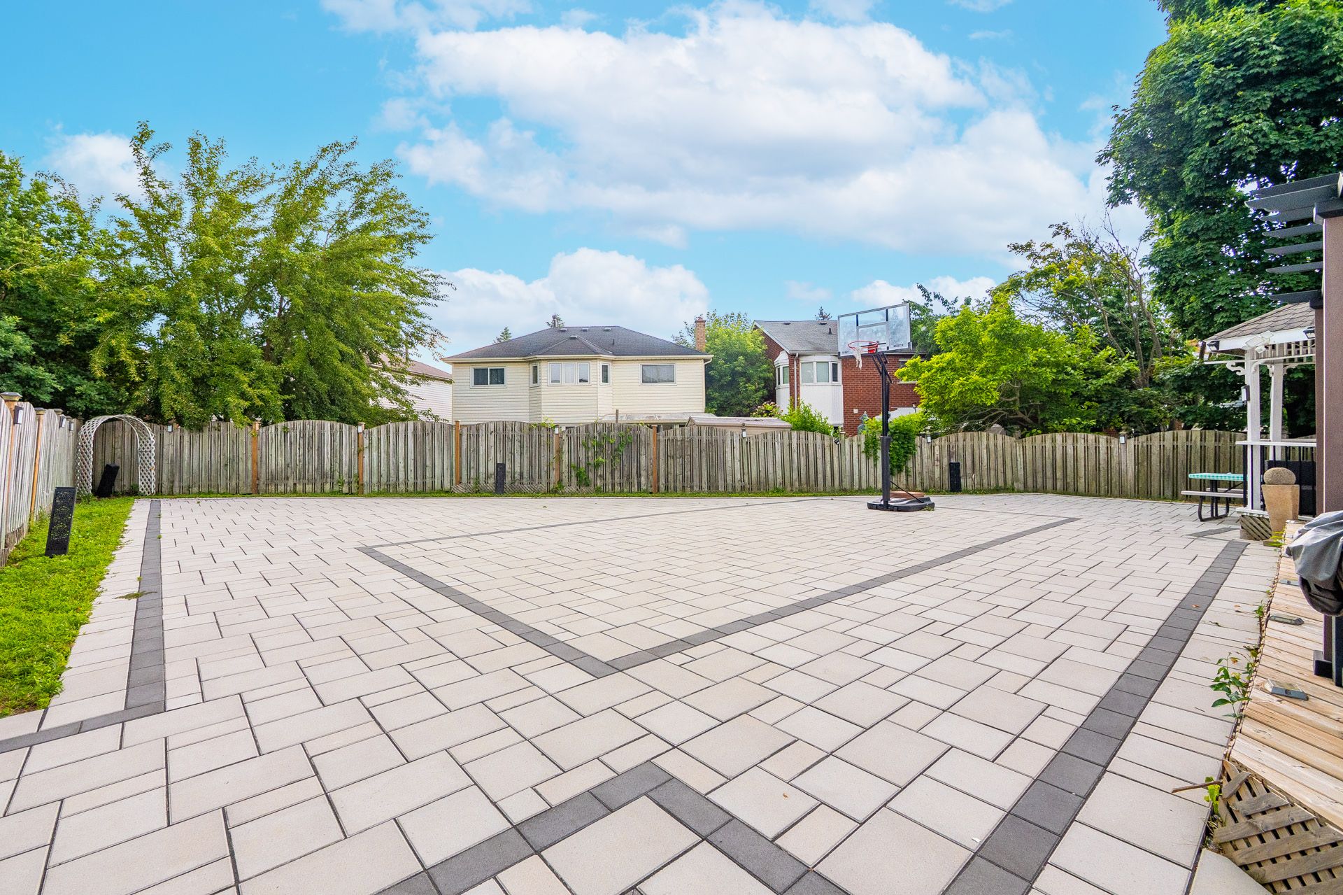 • Low-maintenance, interlocked backyard perfect for entertaining.
