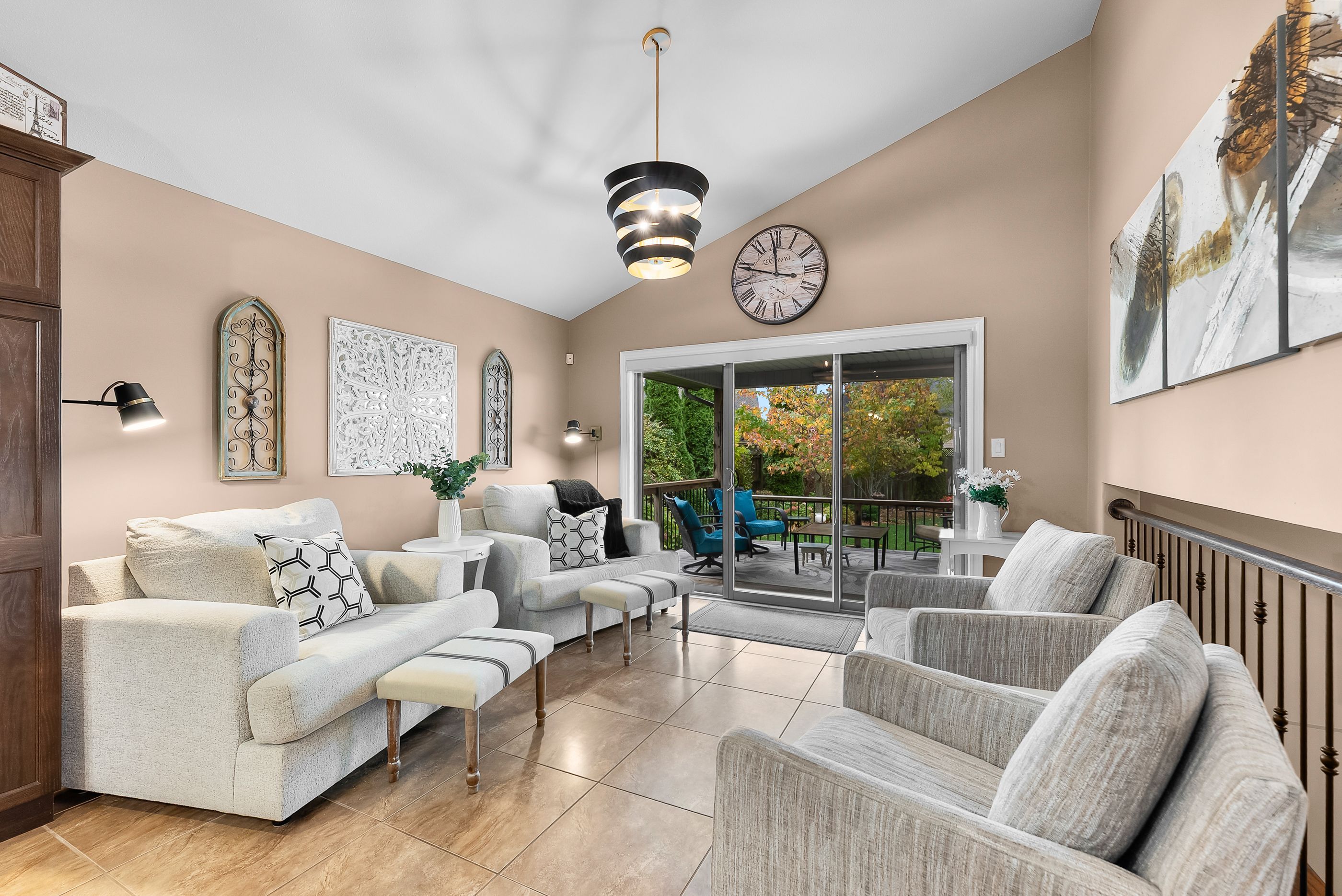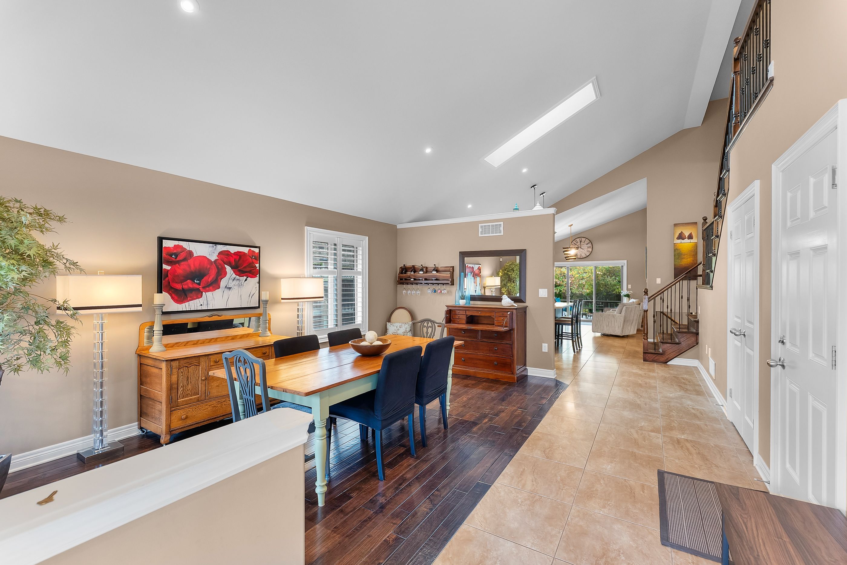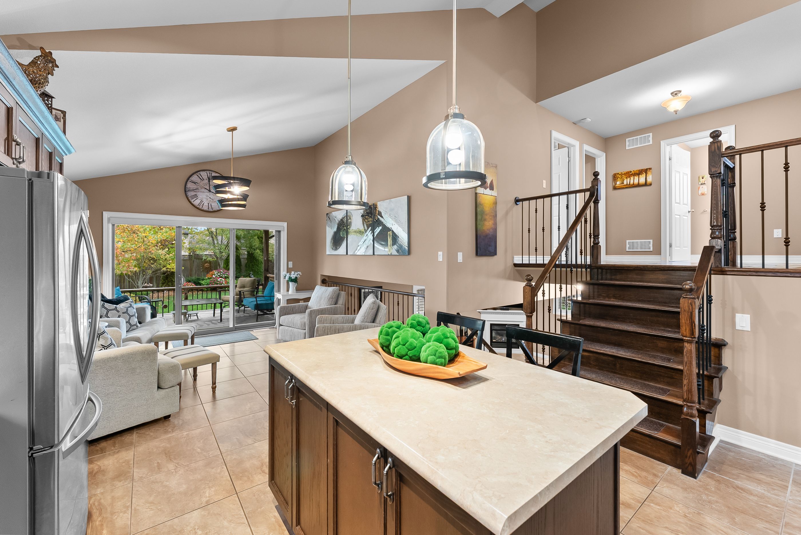 Welcome to 9148 tapestry court, located in the highly sought-after fernwood estates community of niagara falls. This beautifully maintained home offers a bright, open-concept layout with soaring ceilings and large windows that fill the rooms with natural light. The spacious kitchen features rich cabinetry, a centre island, stainless steel appliances, and a skylight, creating an inviting space for cooking and entertaining. Upstairs, you'll find three generous bedrooms, including a primary suite complete with a luxurious five-piece ensuite featuring a soaker tub and separate glass shower. The lower level includes an additional bedroom currently used as an office, a cozy family room with a gas fireplace and large windows, plus a finished basement offering plenty of storage and recreation space. Step outside to enjoy a private, fully fenced backyard with a covered deck and beautifully landscaped gardens, perfect for relaxing or entertaining. Additional highlights include a double car garage with inside entry, an aggregate & stamped concrete driveway, and a premium location close to parks, schools, shopping, and highway access. This home combines functionality, style, and comfort in one of niagara's most desirable neighbourhood's.