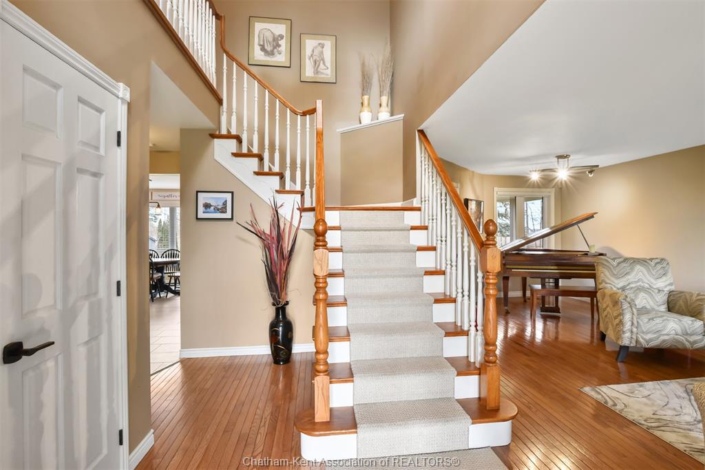 The best of both worlds with a country type setting on a beautiful landscaped 213' lot and conveniently located at the edge of the town of blenheim. This is truly a perfect family home featuring 4 bedrooms, 2. 5 bathrooms finished basement and a very desirable location on the service road marlborough heights. First impressions - outstanding! Inviting foyer with open staircase, office with glass doors and formal living room. Kitchen with breakfast bar, dining room with garden door to the rear composite deck and view of the yard. Family room with gas fireplace, 2 pc bath and main floor laundry round out the room allocation. Upper level with 4 generous sized bedrooms is rare to find, new custom bathroom, large primary with walk-in closet and ensuite. Lower level has a finished family room, storage, workshop and utility. 200 amp hydro service, new forced air gas furnace and central air. This wonderful home provides for an excellent opportunity for a prime site and location, 2600 square feet plus finished basement, double garage, concrete drive and custom landscaping. Compare the difference in cost for all these features vs a new build which would not have this large lot and location. Original owner is a testament to the neighbourhood and the home has been well cared for and maintained.