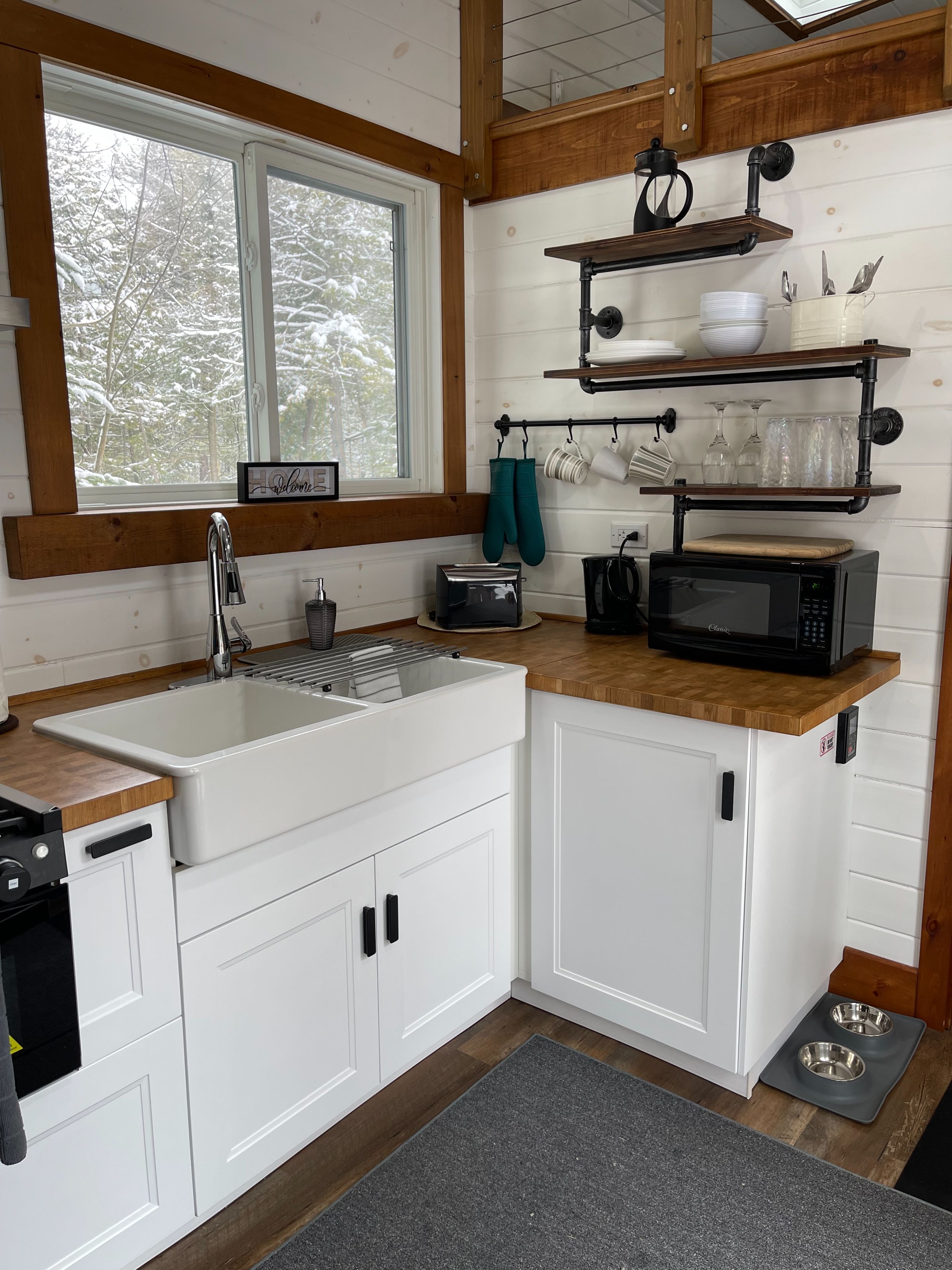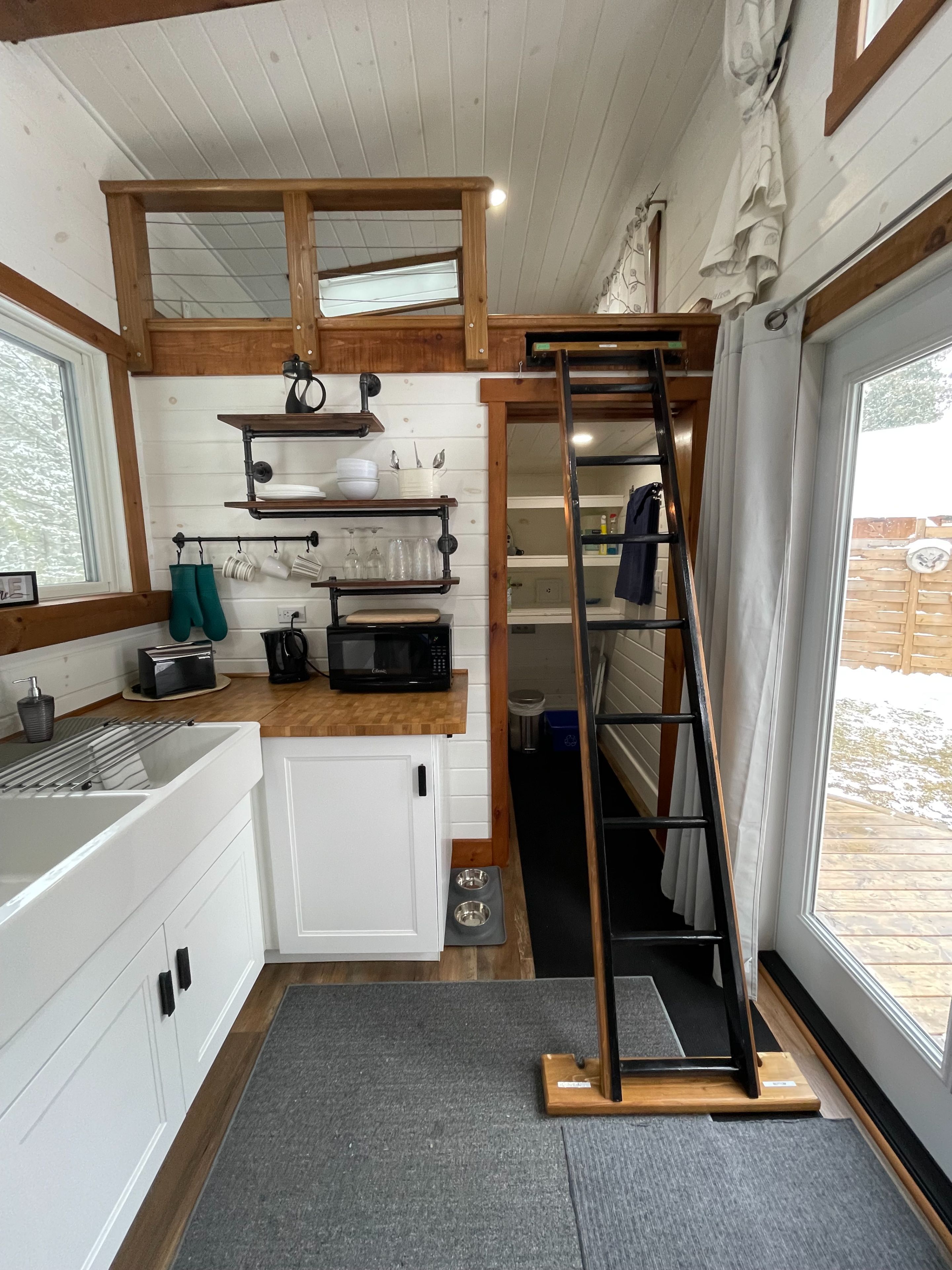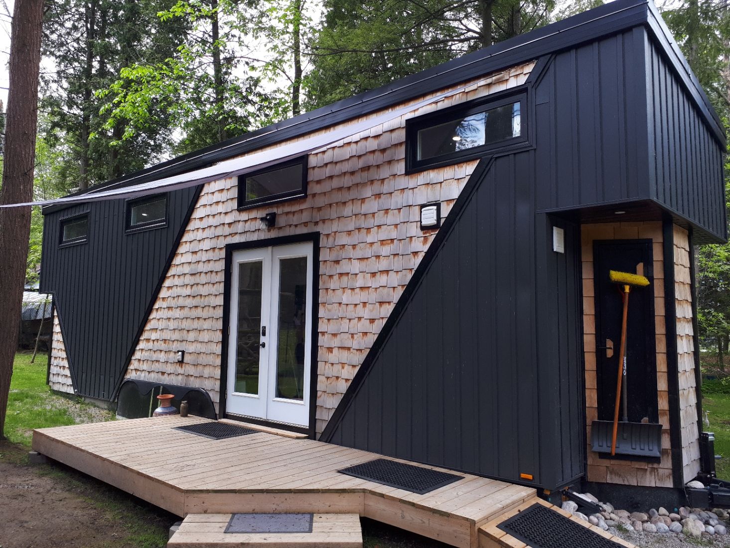 Tiny home only! It does not come with the land and needs to be moved to your own property! Welcome to one of today's unique options for a year-round bunkie/guest house or an amazing way to relax after a cold and wet day hunting! This adorable, custom 32-foot tiny home has been built and designed with the ultimate storage and best use in mind offering many comforts of home! Features include the capability of six guests, custom kitchen with built-in appliances, pot lights, pot drawer, pull out spice rack and double garbage containers, fridge can be propane or electric, open shelving, farmhouse double sink, walk-out french doors to deck, projector and screen in living room area, built-in tables, storage boxes in ceiling above sofa, storage shelves under stairs to main bedroom loft, 3pc bathroom with large rain head shower, electric toilet, an electric fireplace, a ductless mini-split, washer and dryer connections, 50 gallon water tank, and the electrical system features the future possibility to add a solar panel for off the grid living or back up power for when the hydro goes off! This home also comes with versatile furnishings. Have we peaked your interest? Are you curious? Buyer to verify with your township on allowed uses, required permits and to move the tiny home. Approx weight ~ 19,000 lbs, tri-axel trailer, width is 8 ft 6 inches, length is 32 ft, width is 13 ft 6 inches. Recommend having a licensed and insured towing company move it.