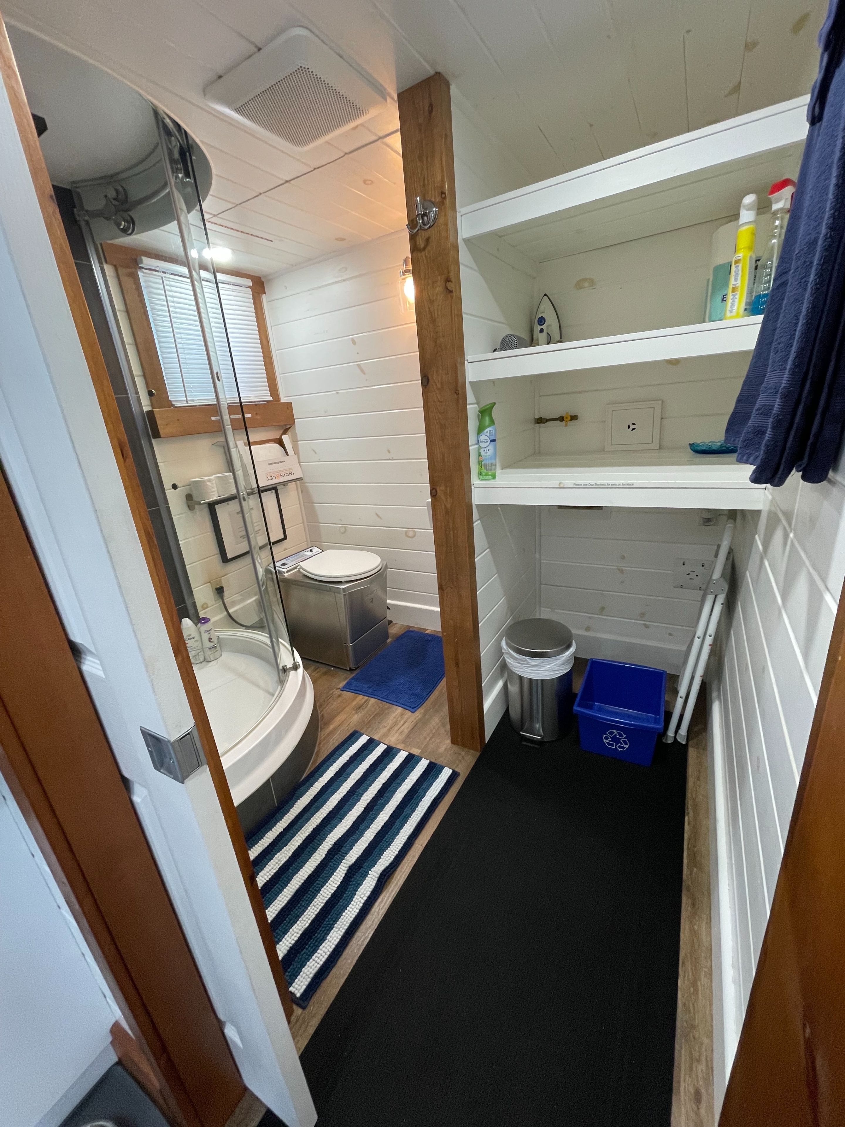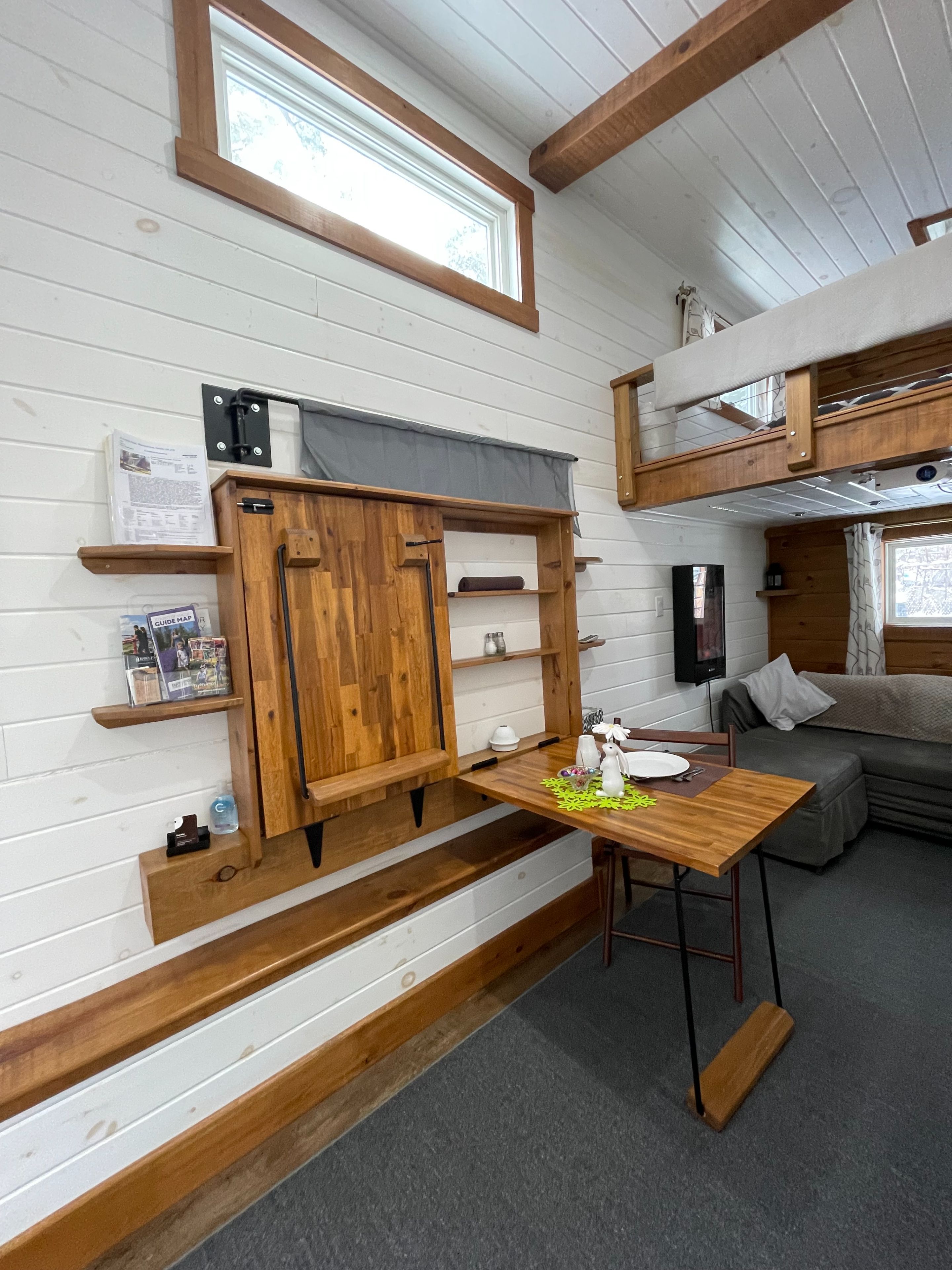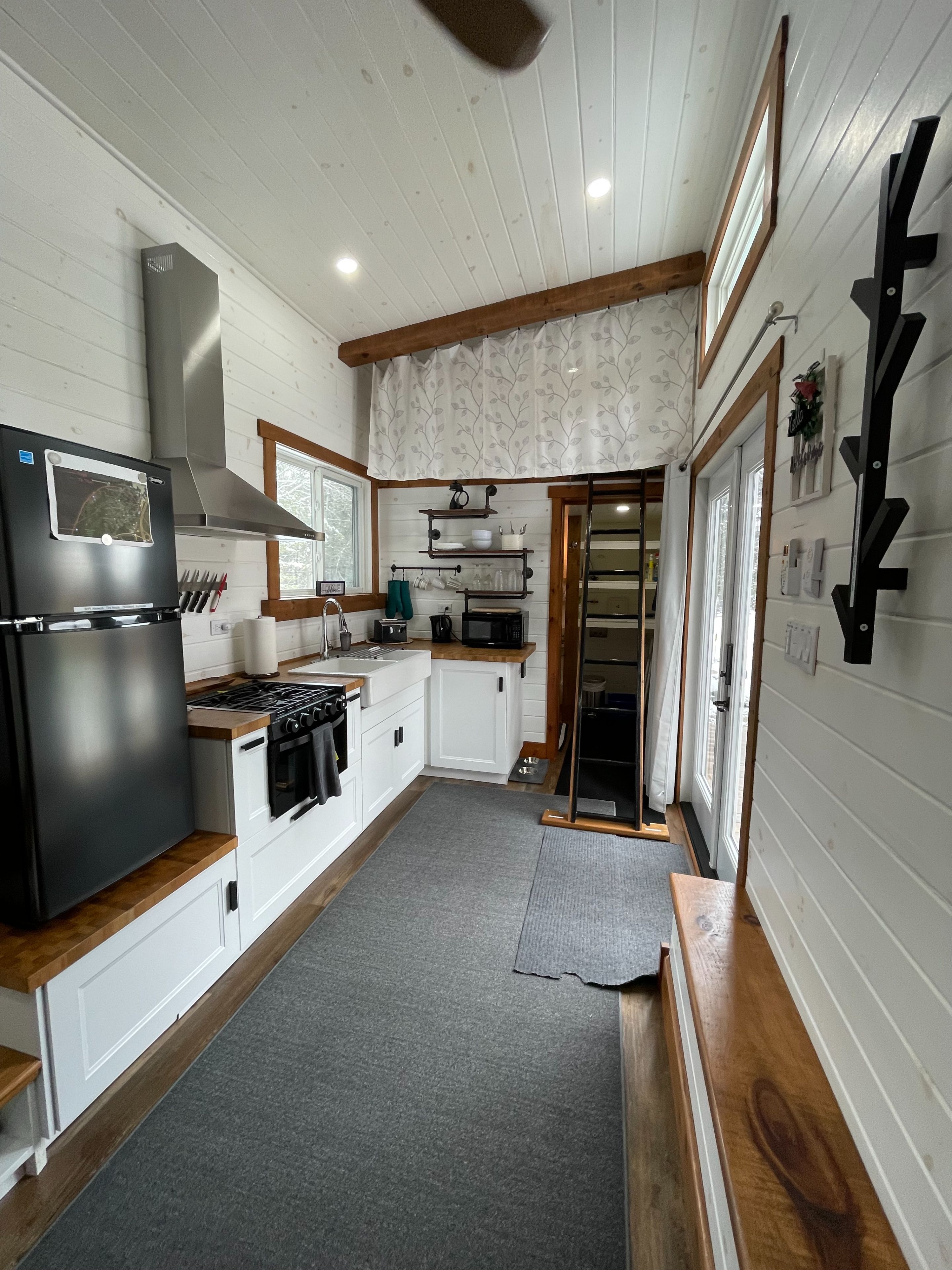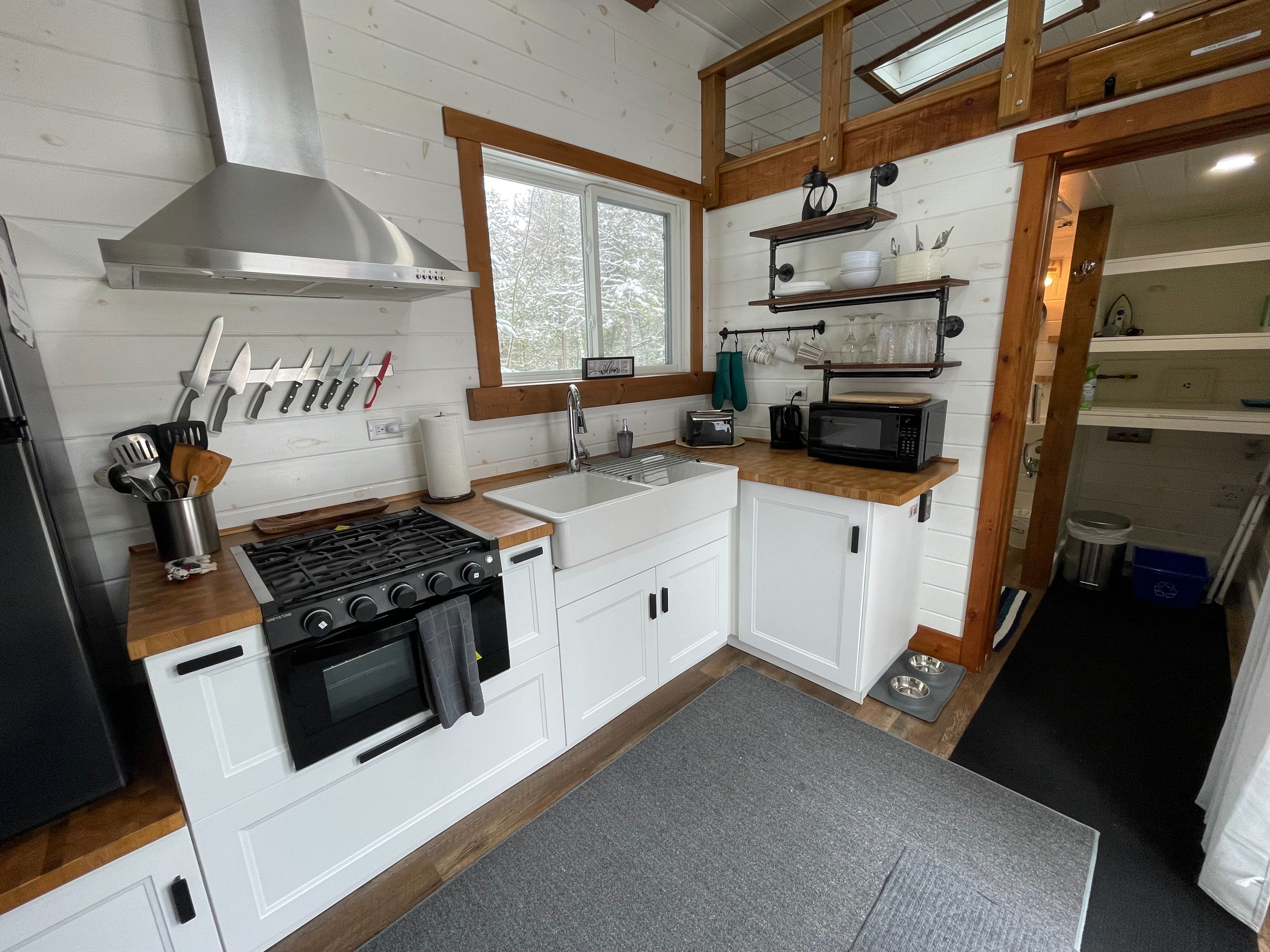Tiny home only! It does not come with the land and needs to be moved to your own property! Welcome to one of today's unique options for a year-round bunkie/guest house or an amazing way to relax after a cold and wet day hunting! This adorable, custom 32-foot tiny home has been built and designed with the ultimate storage and best use in mind offering many comforts of home! Features include the capability of six guests, custom kitchen with built-in appliances, pot lights, pot drawer, pull out spice rack and double garbage containers, fridge can be propane or electric, open shelving, farmhouse double sink, walk-out french doors to deck, projector and screen in living room area, built-in tables, storage boxes in ceiling above sofa, storage shelves under stairs to main bedroom loft, 3pc bathroom with large rain head shower, electric toilet, an electric fireplace, a ductless mini-split, washer and dryer connections, 50 gallon water tank, and the electrical system features the future possibility to add a solar panel for off the grid living or back up power for when the hydro goes off! This home also comes with versatile furnishings. Have we peaked your interest? Are you curious? Buyer to verify with your township on allowed uses, required permits and to move the tiny home. Approx weight ~ 19,000 lbs, tri-axel trailer, width is 8 ft 6 inches, length is 32 ft, width is 13 ft 6 inches. Recommend having a licensed and insured towing company move it.