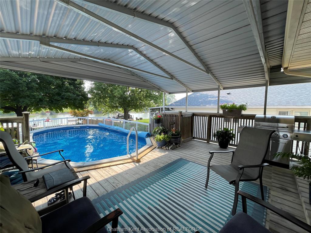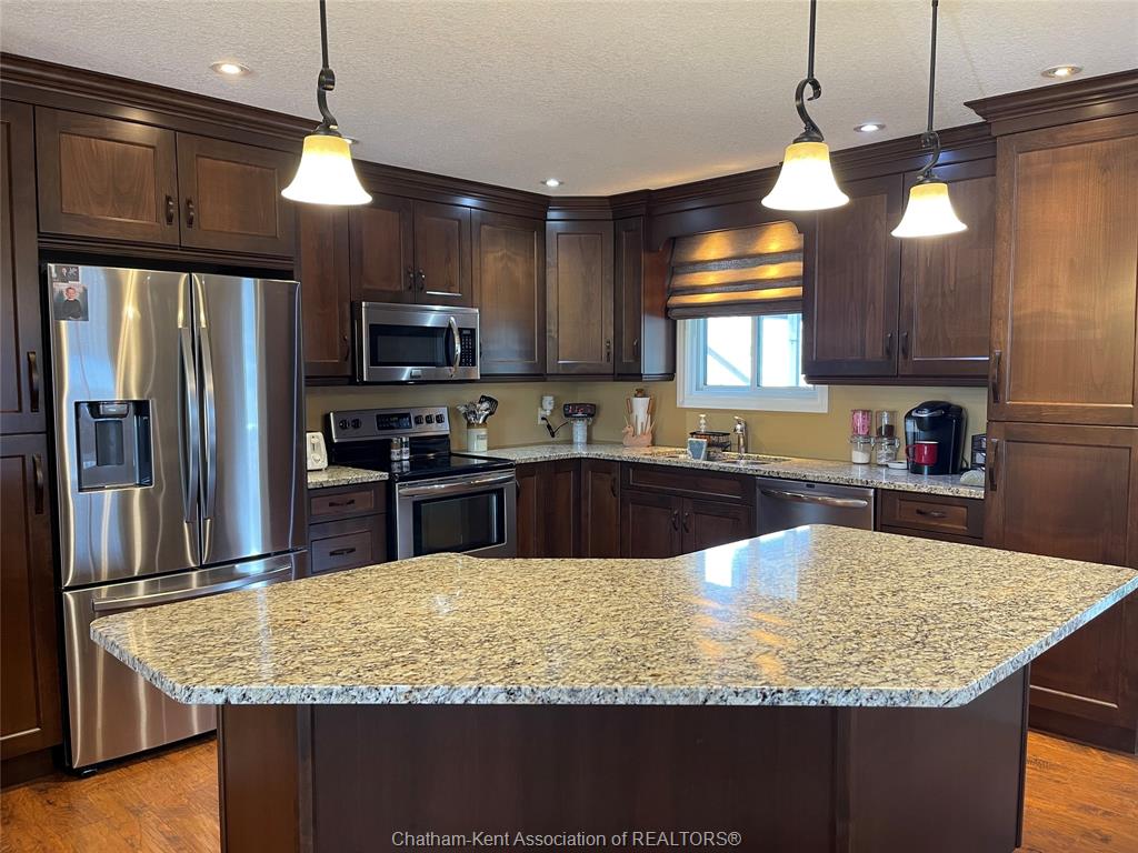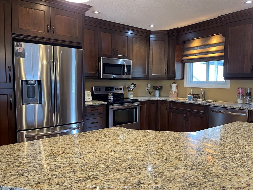 Welcome to this beautifully maintained raised ranch nestled along the sydenham river offering the perfect blend of comfort, function and outdoor living. The main floor features a large living room, kitchen/dining combo with spacious cabinets, large island and granite countertops, 2 bedrooms, primary bedroom complete with custom built-ins, 4 pc bathroom, ample closets and storage throughout. The lower level features a family/recreation room, 2 good size bedrooms, 3 pc bathroom, utility room and storage area. Lots of room to entertain inside or out, enjoy serene river views off the main floor, or relax on the back covered porch which leads to the refreshing pool and pond area nearby. The backyard is meticulously landscaped and complete with a boat lift and dock area to enjoy serene river views. There's a 17 x 13 garage/workshop and storage shed. This is a dream location for anglers and outdoor enthusiasts! Attention to detail and quality are evident in this home with plenty of updates over the years including, steel roof, windows, hvac, insulation, irrigation system and more. A true pleasure to show.