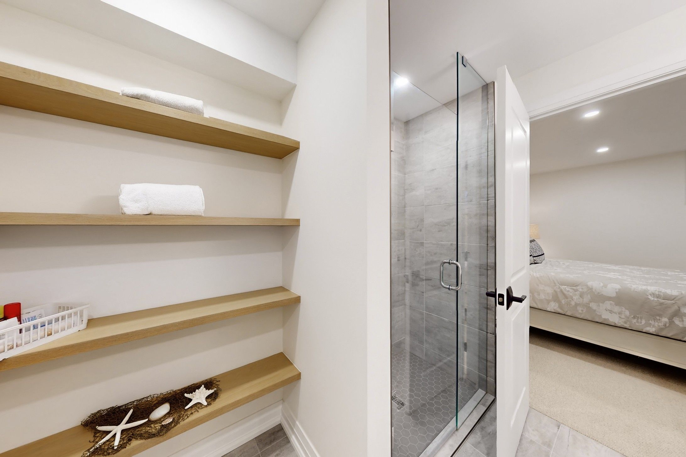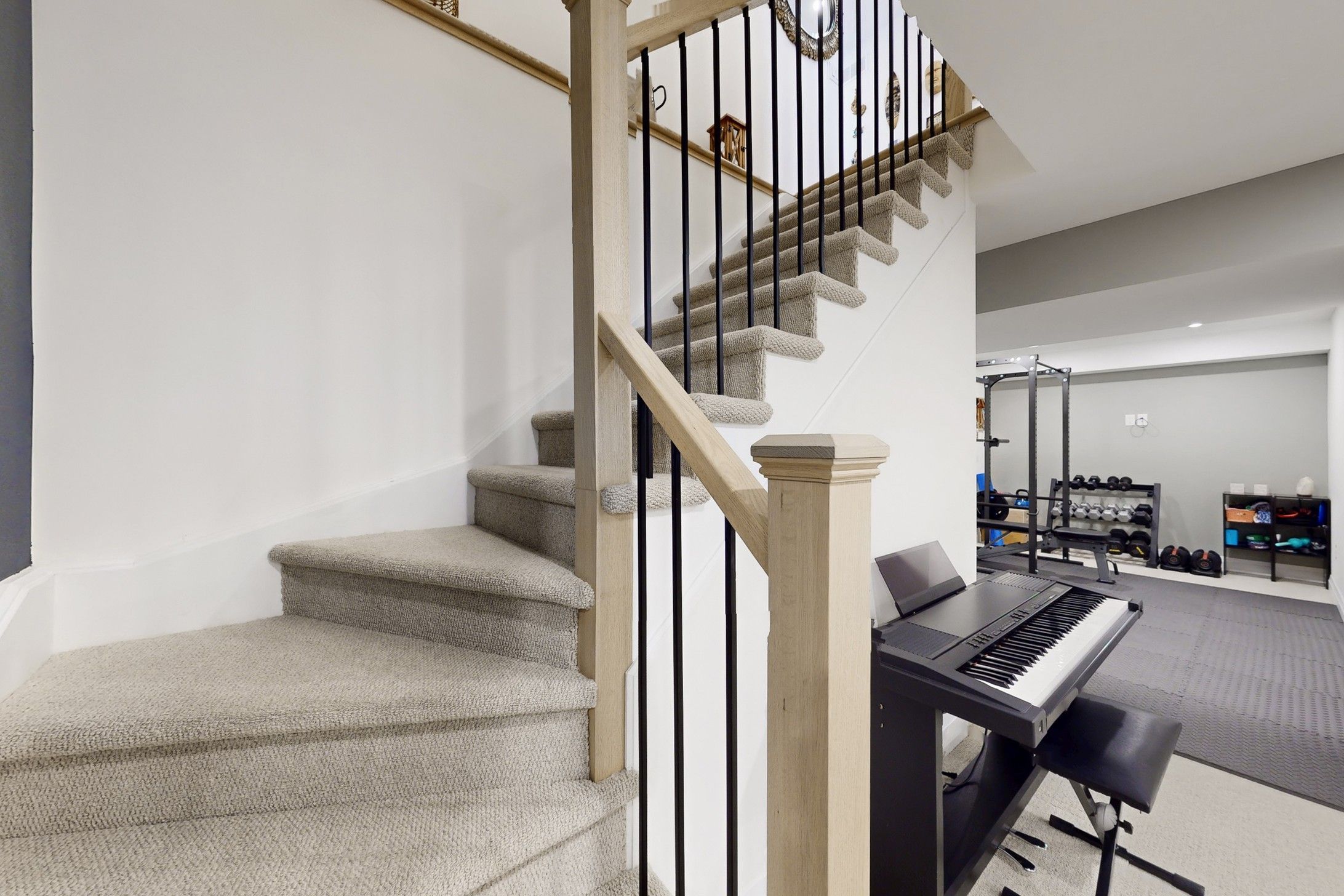 • Finished basement with additional living space, bedroom, and heated bathroom floors.