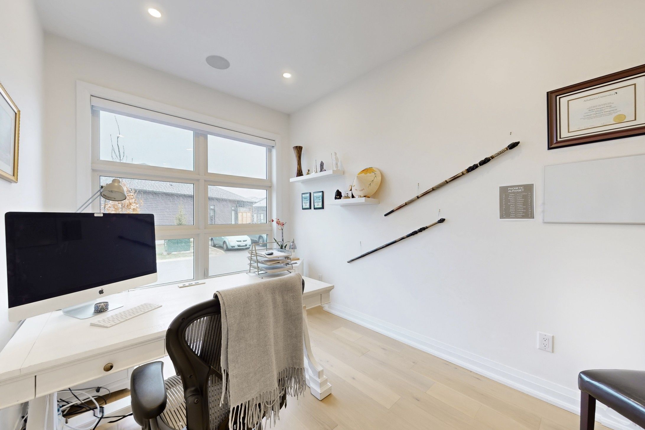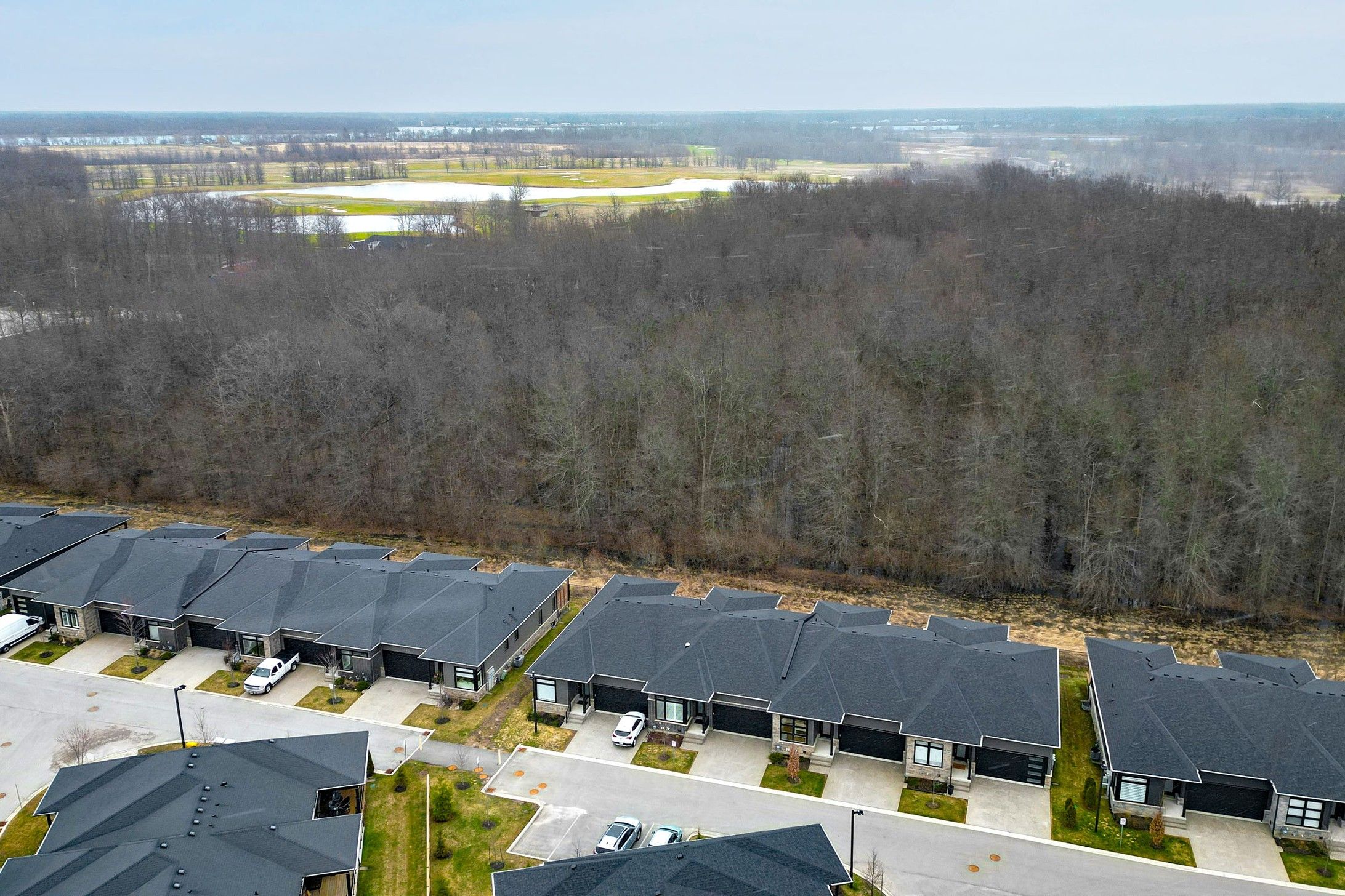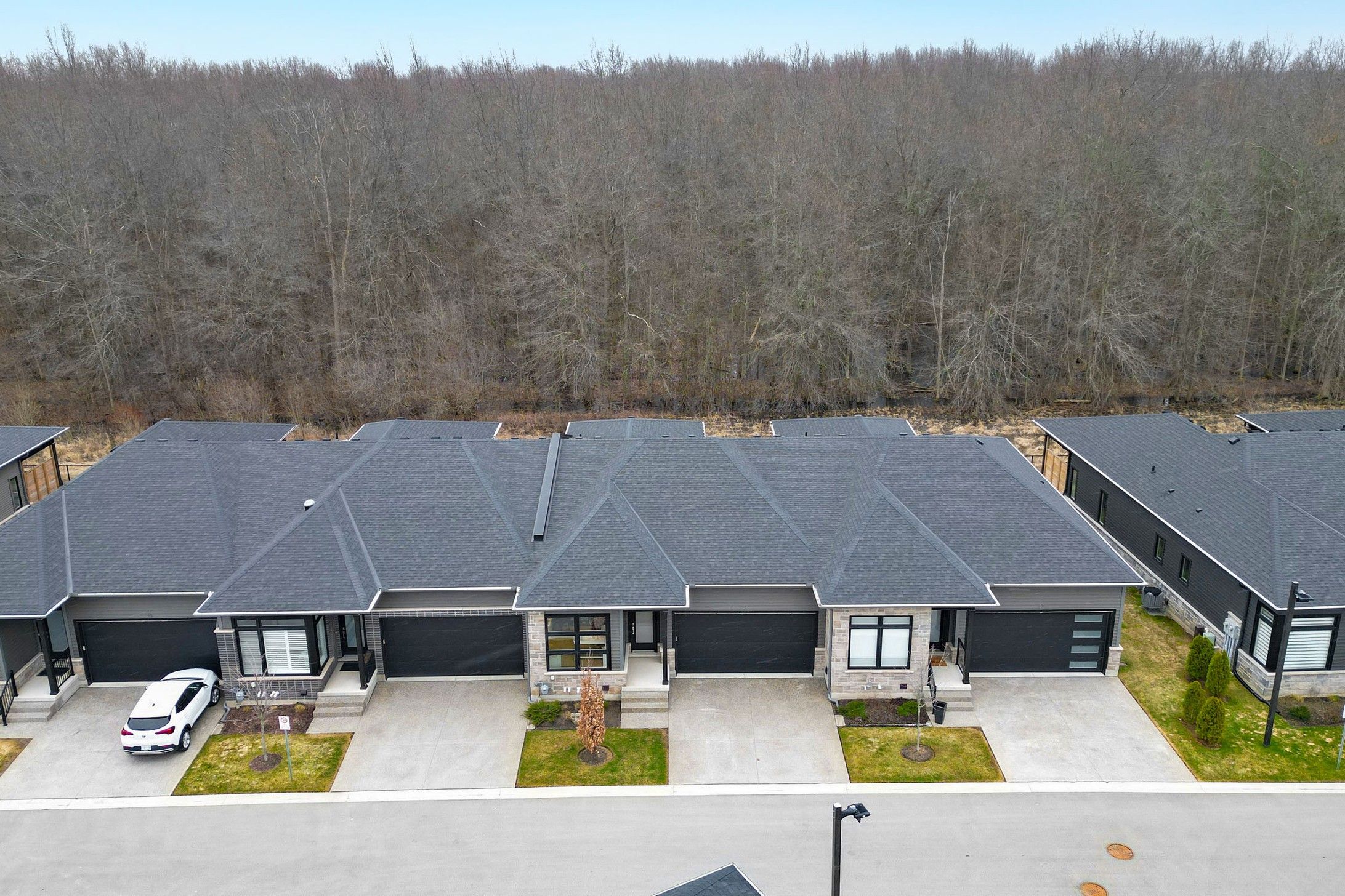 Enjoy luxury living and architectural elegance in this extensively upgraded double car garage bungalow townhome which backs on to the wooded area and located steps from world class 'legends on the niagara' golf course in niagara's premier contemporary community. Luxury finishes throughout the house including $125k (as per seller) spent in quality upgrades and enjoy carefree living in this rare enclave of upscale homes. Features include 9' ceilings on main level, 8' tall interior doors, gorgeous gourmet kitchen with stainless steel appliances, extended center island with quartz countertops and waterfall edge, laundry room with custom built-ins located conveniently off of the kitchen. Modern open concept great room with electric fireplace and floating wood mantle, large windows, sliding glass door leading to private, covered 20' x 10' deck finished with glass railing and gorgeous views of wooded area. Backyard also features a concrete patio and natural gas hookup for bbq. Serene primary bedroom with large walk-in closet and spa-inspired 5pc ensuite, complete with glass and tile shower, soaker tub, double vanity and quartz counters. West facing 2nd bedroom with large windows, 4pc guest bath and interior door to double car garage with rough-in for future electric vehicle completes the main level. Finished basement with upgraded carpet and under pad provides additional 660 sq ft of luxurious living space including a bedroom, 3pc ensuite bathroom with heated floors & custom wood shelves, a huge rec room with large window and exercise area. Unfinished mechanical room is 307 sq ft in size. Home is wired with audio system in all the rooms, outside video cameras installed and comes with sony surround sound system, sonos amps, hikvision for video surveillance along with the 90" tv in the basement rec room. Hunter douglas blinds throughout with remotes. Upgraded lighting throughout. 200 amp electrical panel. Energy star certified and located close to golf, watersports and more!