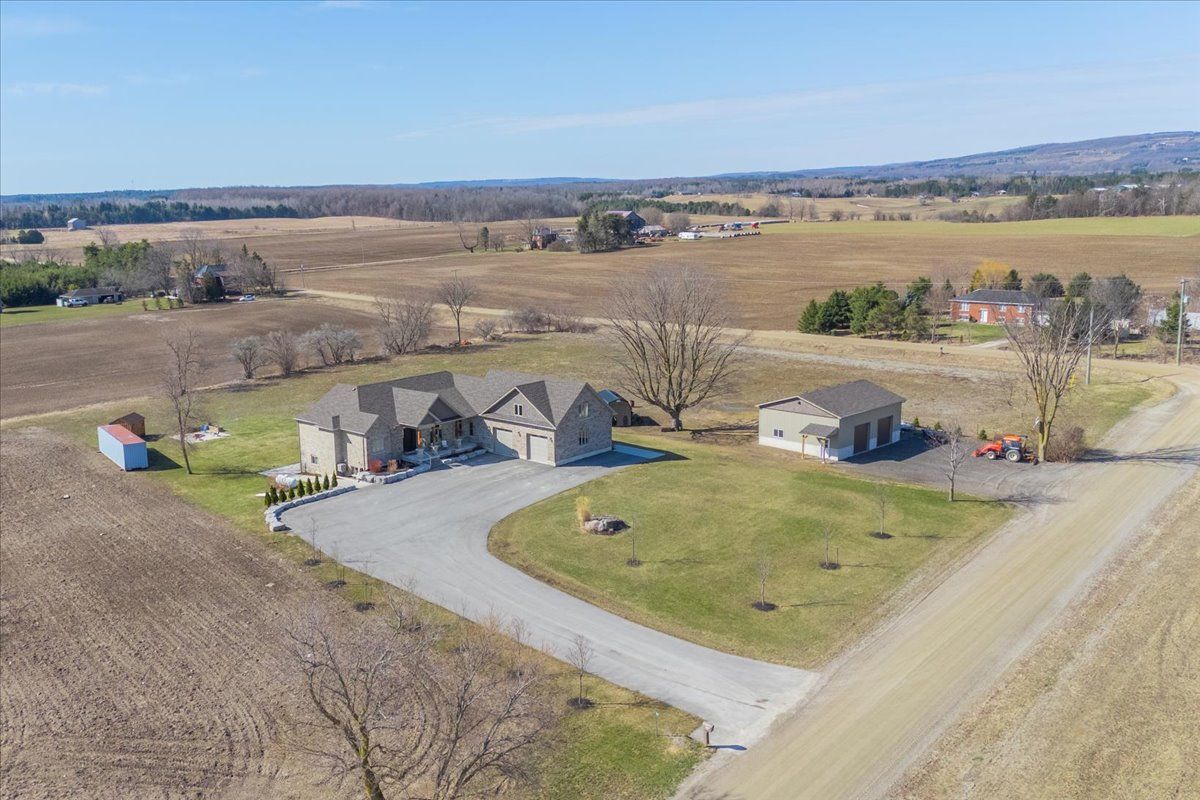 Welcome to this exceptional 3,228 sq. Ft. Custom-built bungalow built in 2020, complete with a walk-out basement and fully equipped detached workshop, set on a pristine 19-acre property. Just 20 minutes from barrie, wasaga beach, and alliston-and under 90 minutes to toronto-this home blends secluded country living with unmatched convenience. From the moment you arrive, the impressive stone and brick exterior, professional landscaping, and armour stone accents set the tone for the quality throughout. Inside, soaring 10 ft ceilings enhance the elegant main level, featuring a formal dining room, a grand living room with vaulted ceilings, and a spacious eat-in kitchen upgraded with brand-new quartz countertops and sink. Walk out to the deck for entertaining or peaceful country views. The primary suite is a true retreat with a walk-in closet and luxurious 5-piece ensuite with heated floors, freestanding tub, and separate shower. The opposite wing includes two additional bedrooms, a second 5-piece bath, and a guest powder room. A well-designed laundry room connects to the oversized 29-ft deep two-car garage and leads to a finished loft-ideal for a gym, office, or teen hangout. The walk-out basement offers over 2,500 sq. Ft. Of potential living space with large windows, rough-in for a kitchen, and direct access to a concrete patio-perfect for an in-law suite. The property also features a 30x40 detached shop with hydro, 14 ft ceilings, two 10 ft doors, a 10x20 powered shed, r80 insulation, generac switch panel, and a second drilled well for irrigation. This is truly a rare country estate offering space, craftsmanship, and endless possibilities. Municipal address: 9157 tosorontio sideroad 30.