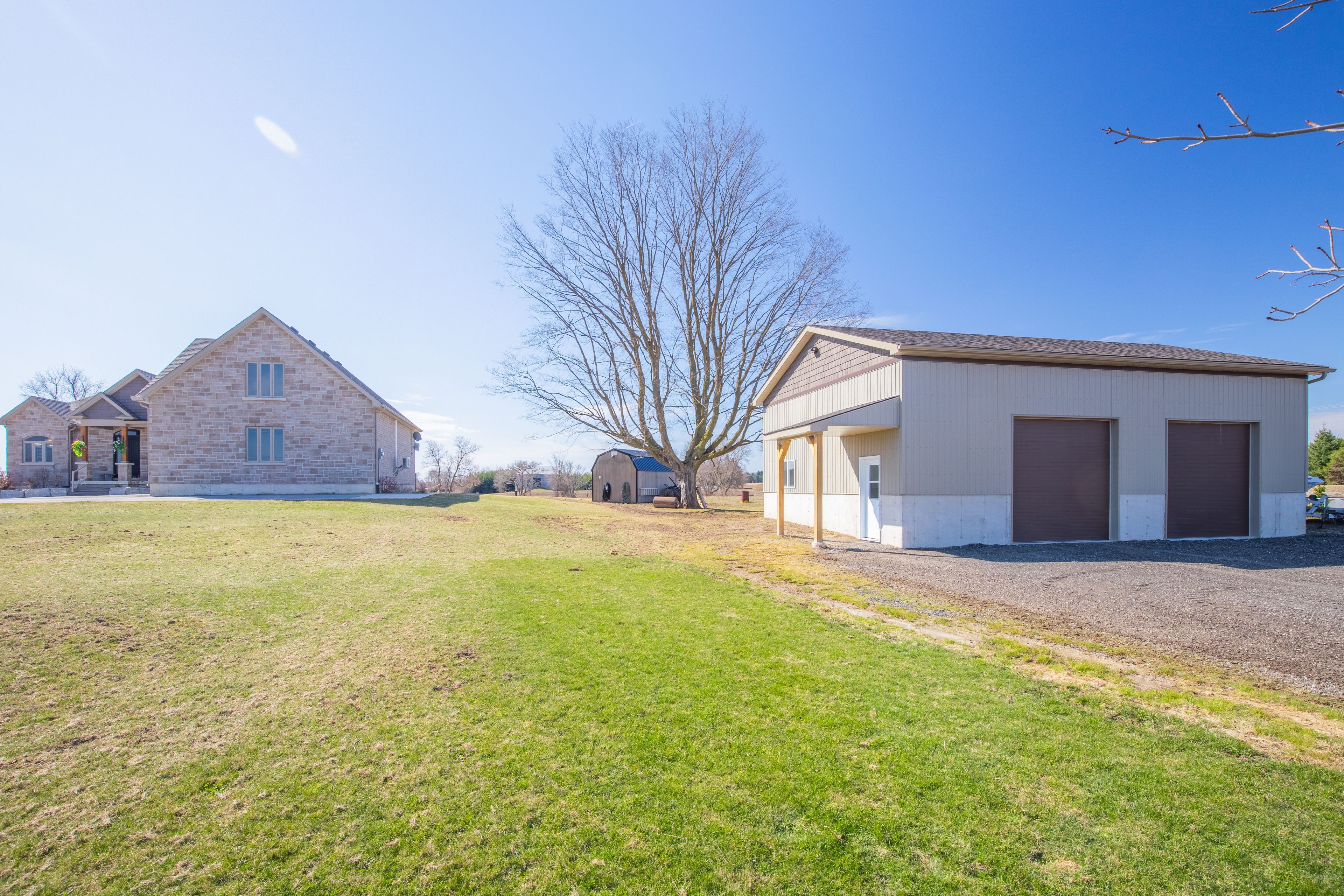 Incredible custom built 3,228 sqft ranch bungalow on 19 acres only 10 minutes from angus. Also conveniently located only 20 minutes from barrie, wasaga beach, and alliston and under 90 minutes to toronto-this home blends secluded country living with unmatched convenience. From the moment you arrive, the impressive stone and brick exterior, professional landscaping, and armour stone accents set the tone for the quality throughout. Inside, soaring 10 ft ceilings enhance the elegant main level, featuring a formal dining room, a grand living room with vaulted ceilings, and a spacious eat-in kitchen upgraded with brand-new quartz countertops and sink. Walk out to the deck for entertaining or peaceful country views. The primary suite is a true retreat with a walk-in closet and luxurious 5-piece ensuite with heated floors, freestanding tub, and separate shower. The opposite wing includes two additional bedrooms, a second 5-piece bath, and a guest powder room. A well-designed laundry room connects to the oversized 29-ft deep two-car garage and leads to a finished loft-ideal for a gym, office, or teen hangout. The walk-out basement offers over 2,500 sq. Ft. Of potential living space with large windows, rough-in for a kitchen, and direct access to a concrete patio-perfect for an in-law suite. The property also features a 30x40 detached shop with hydro, 14 ft ceilings, two 10 ft doors, a 10x20 powered shed, r80 insulation, generac switch panel, and a second drilled well for irrigation. This is truly a rare country estate offering space, craftsmanship, and endless possibilities. Municipal address: 9157 tosorontio sideroad 30.
