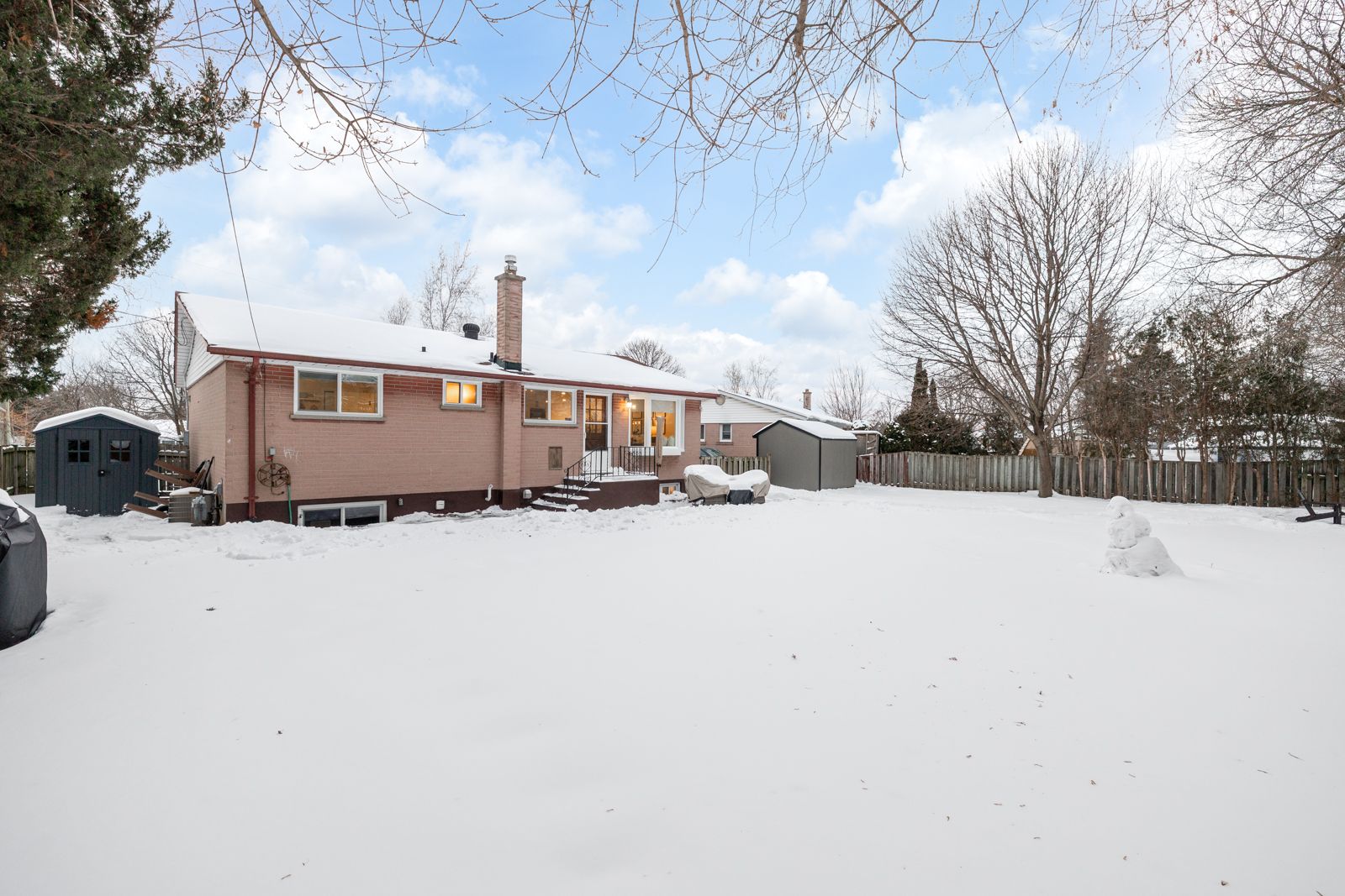 Welcome to this beautifully renovated bungalow tucked away on a quiet, sought-after street in downtown whitby. Sitting on a rare premium pie-shaped lot that expands to an impressive 105 feet wide at the rear, this home offers exceptional outdoor space, privacy, and long-term value. Completely renovated from top to bottom, this move-in-ready home features a bright, open layout with a beautifully renovated kitchen featuring stainless steel appliances and quartz countertops. With 3 bedrooms and 2 fully updated bathrooms, there's plenty of space for families, downsizers, or those seeking a flexible work-from-home setup. The finished lower level adds valuable living space with an additional bedroom, perfect for guests, a home office, or a growing family. Major mechanical updates provide peace of mind, including a newer roof, most windows 2023, kitchen appliances 2023 and new furnace 2024. Exterior upgrades include interlocking patio (2023), new fence (2024), two new sheds (2025) & fire pit (2025). Ideally located close to top-rated schools, whitby go station, highway 401, downtown whitby, as well as a wide variety of shopping and dining.