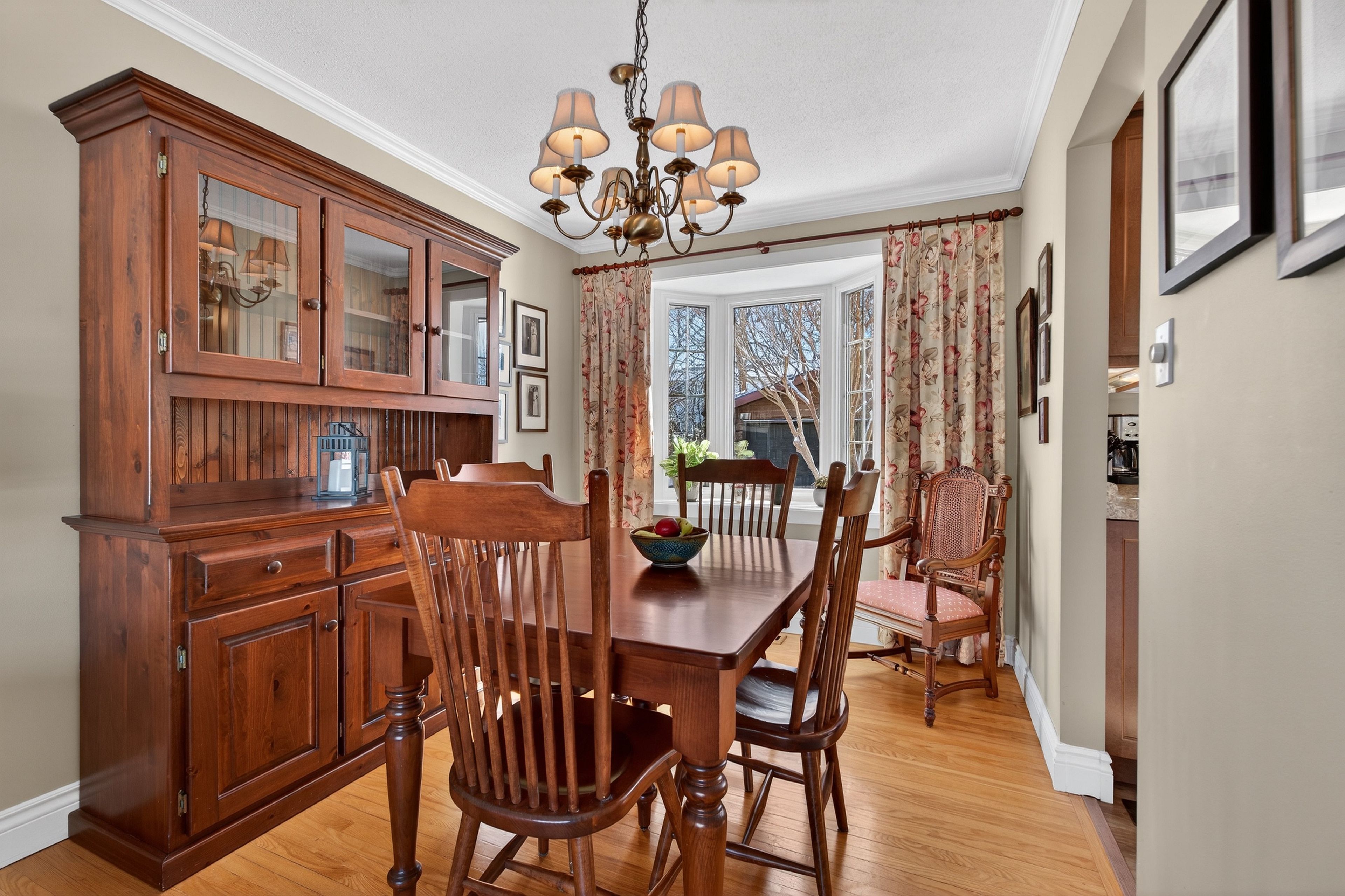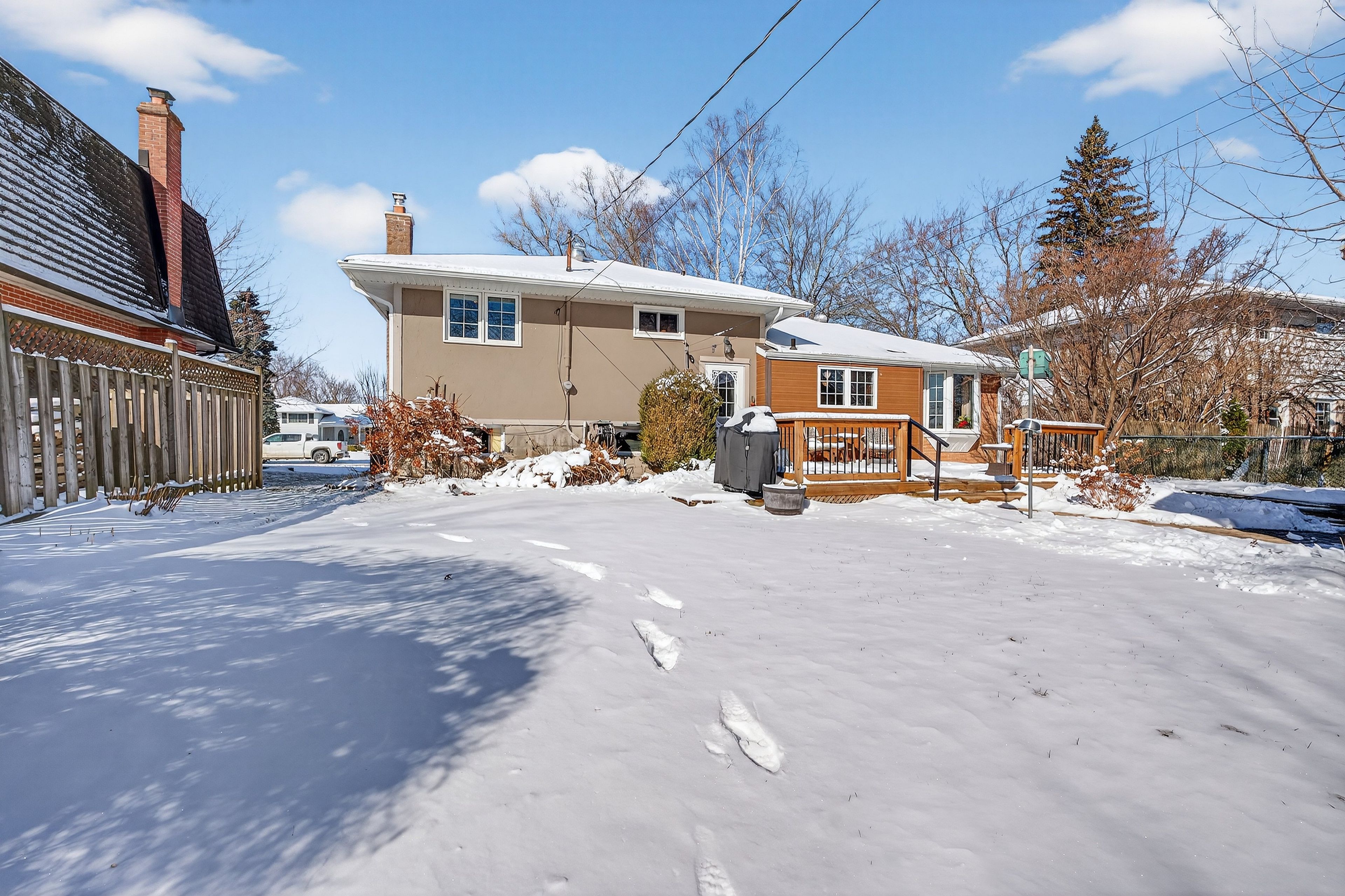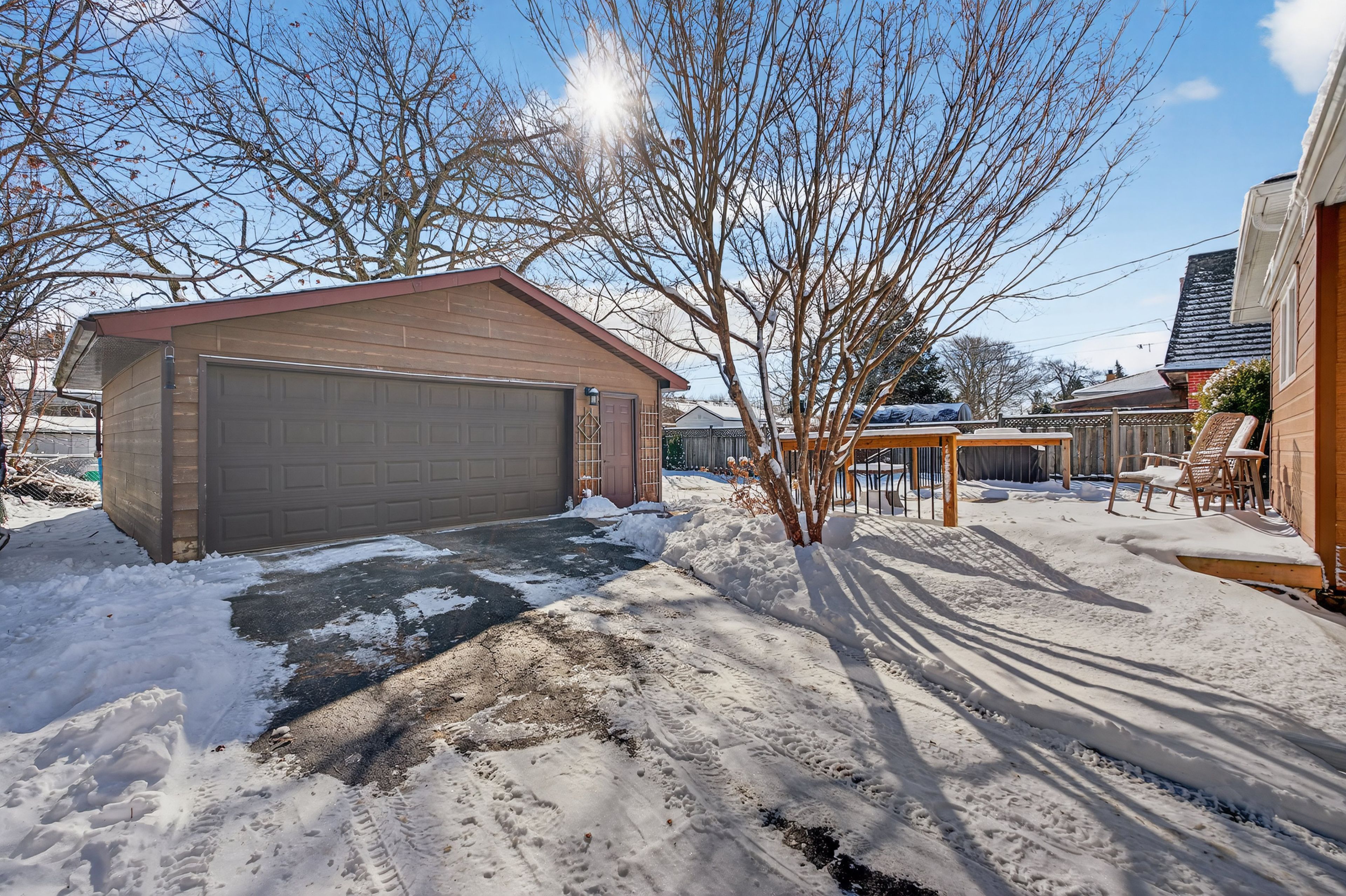 Exceptionally well maintained by original owners, this inviting home exudes pride of ownership at every turn. With 3 bedrooms, 2 full bathrooms, 24' x 24' detached garage and located within a sought-after school district, this home is a must-see! Enjoy the renovated kitchen with updated cabinetry, the spacious living room with oversized picture window and the dedicated dining room complete with custom bay window. The bright lower level boasts a large rec room with a built-in wall unit and like-new plush carpeting. Step outside to your private fenced backyard with an 18' x 12' deck. This home offers a "move-in-ready" opportunity as all appliances (2 fridges, freezer, stove, microwave, dishwasher, washer, dryer, natural gas bbq) and window coverings are included. Major updates include: a new furnace and a/c (2021); 40-year shingles on both house and garage (2016), hot water tank (2025), 100 amp electrical panel, and newer windows throughout. Additional features include a custom desk, wall unit and moveable drawer bank in the third bedroom. Book your showing today!