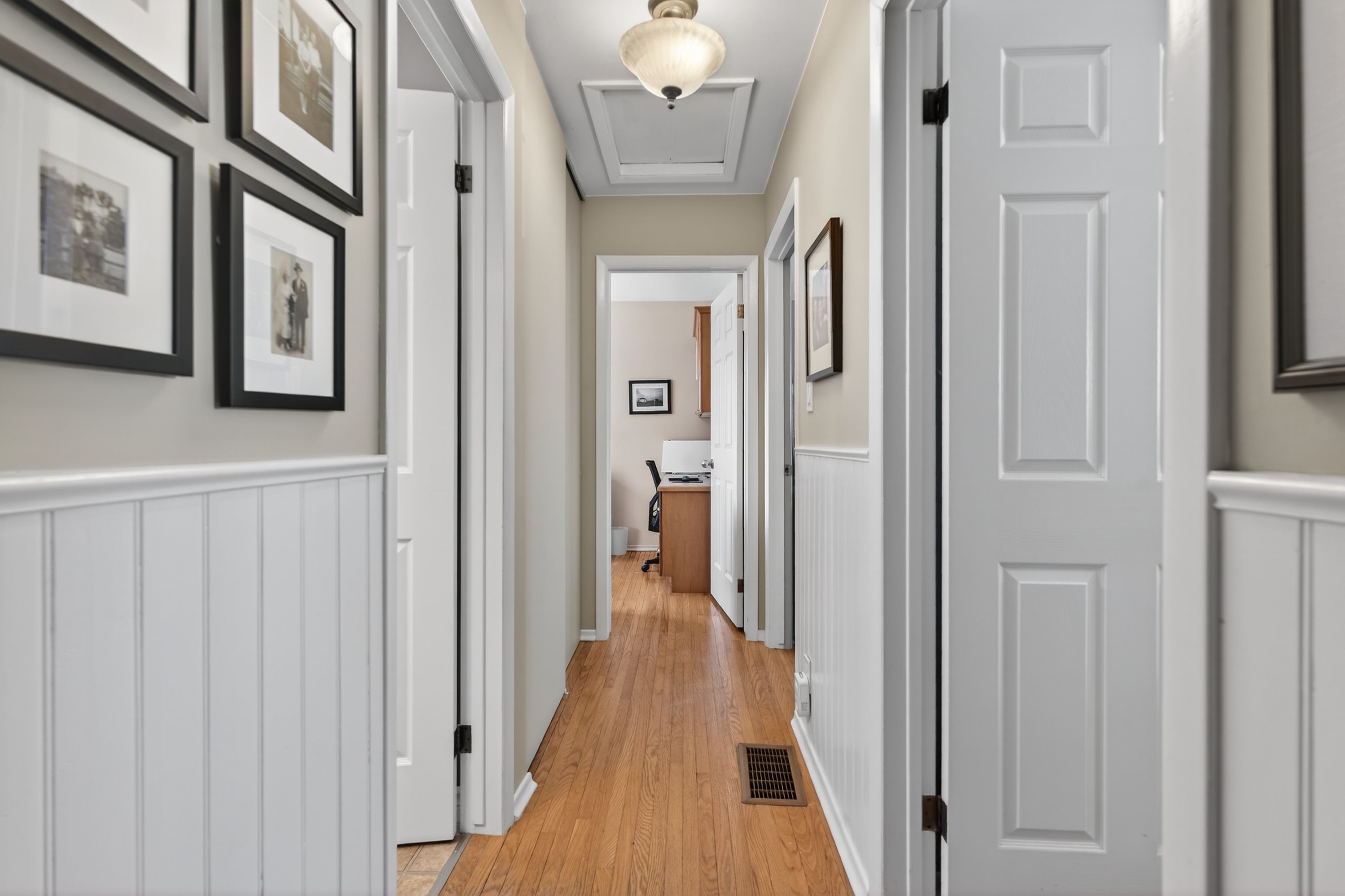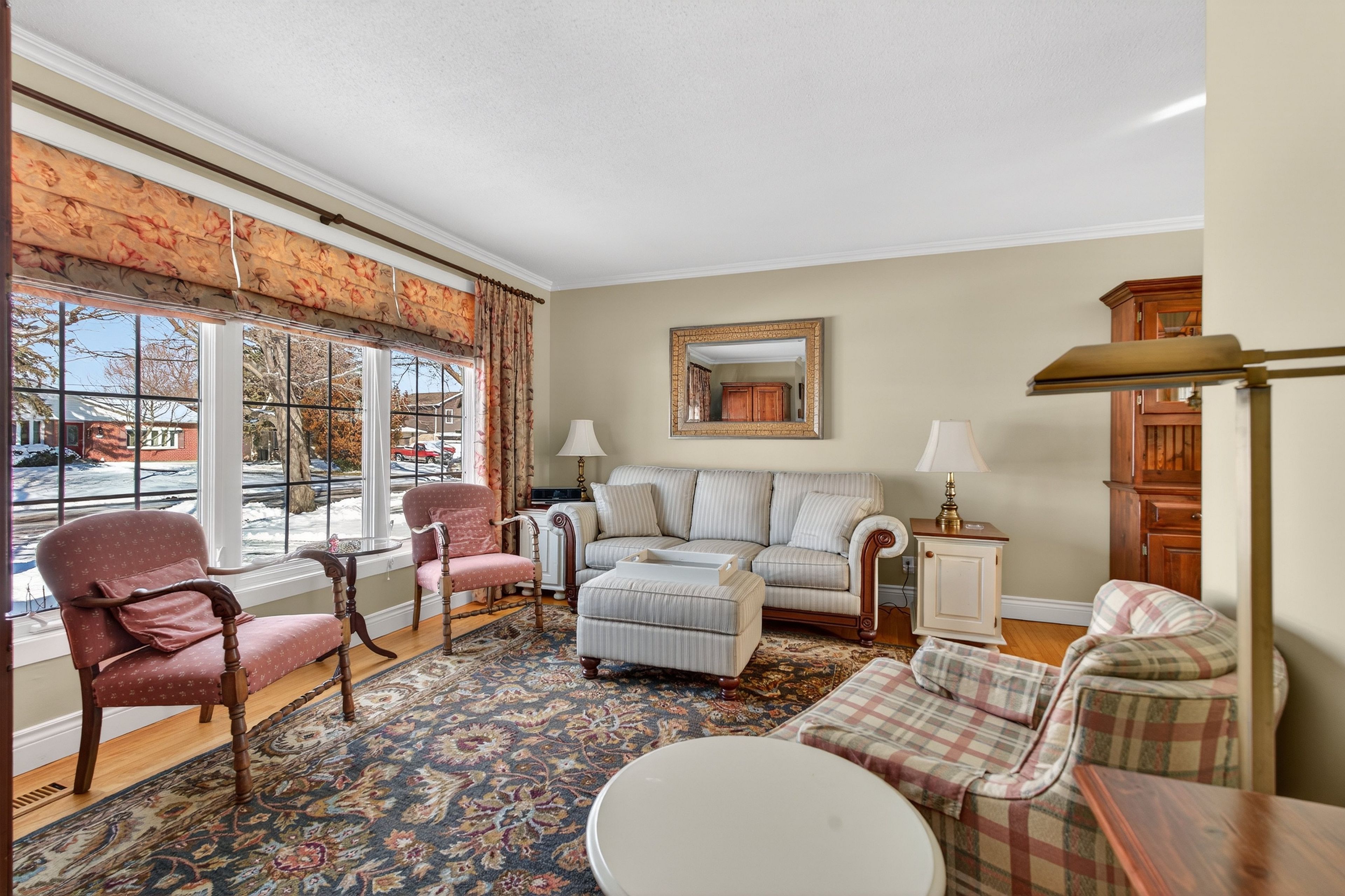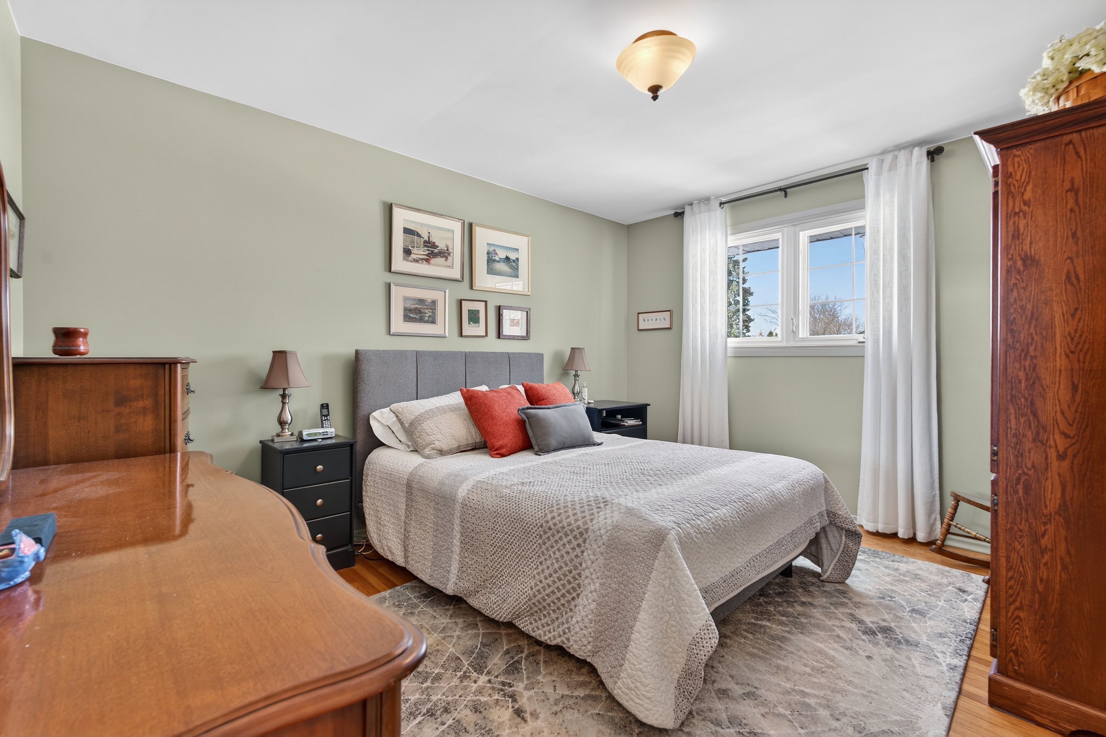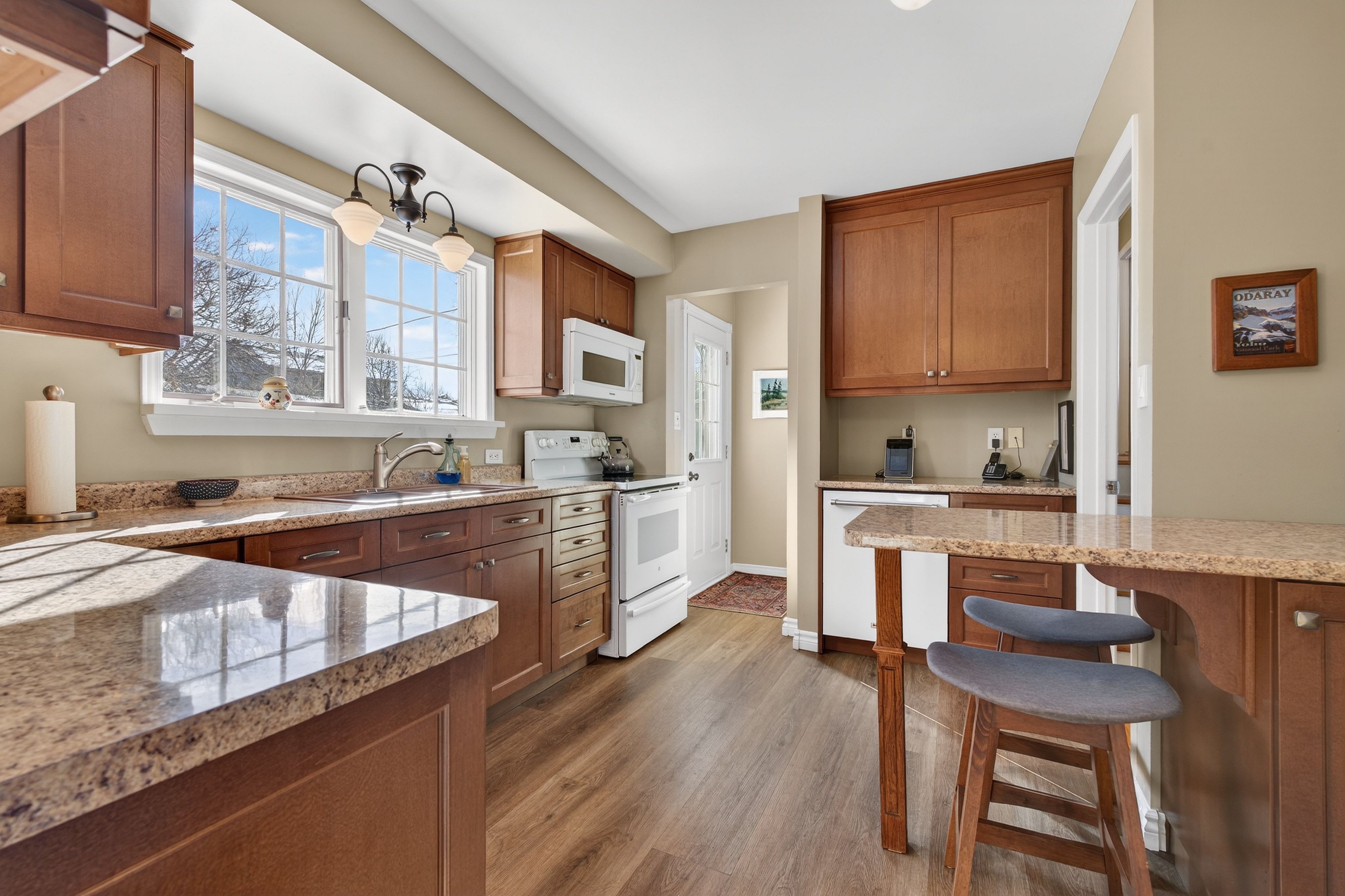 Exceptionally well maintained by original owners, this inviting home exudes pride of ownership at every turn. With 3 bedrooms, 2 full bathrooms, 24' x 24' detached garage and located within a sought-after school district, this home is a must-see! Enjoy the renovated kitchen with updated cabinetry, the spacious living room with oversized picture window and the dedicated dining room complete with custom bay window. The bright lower level boasts a large rec room with a built-in wall unit and like-new plush carpeting. Step outside to your private fenced backyard with an 18' x 12' deck. This home offers a "move-in-ready" opportunity as all appliances (2 fridges, freezer, stove, microwave, dishwasher, washer, dryer, natural gas bbq) and window coverings are included. Major updates include: a new furnace and a/c (2021); 40-year shingles on both house and garage (2016), hot water tank (2025), 100 amp electrical panel, and newer windows throughout. Additional features include a custom desk, wall unit and moveable drawer bank in the third bedroom. Book your showing today!