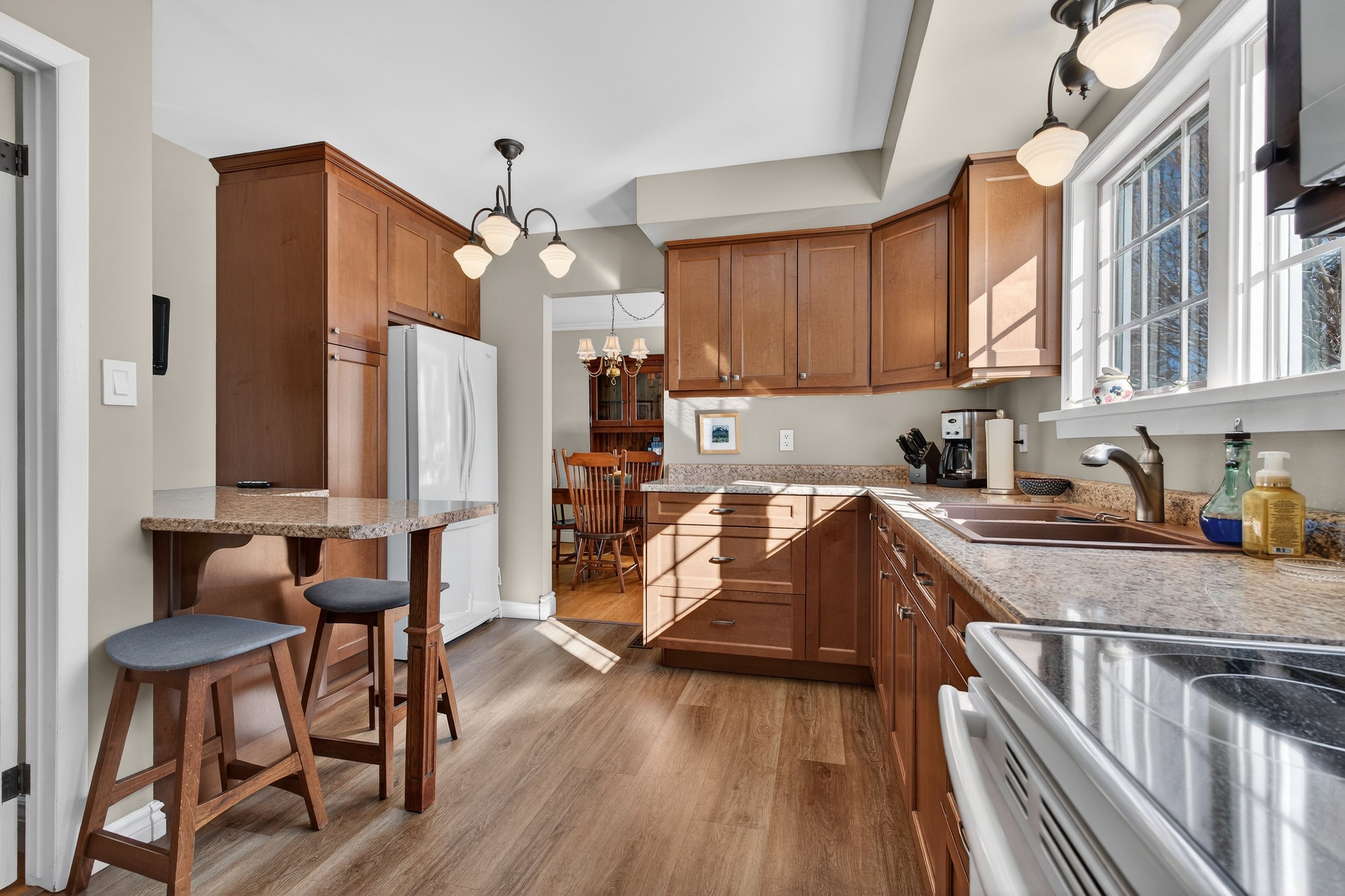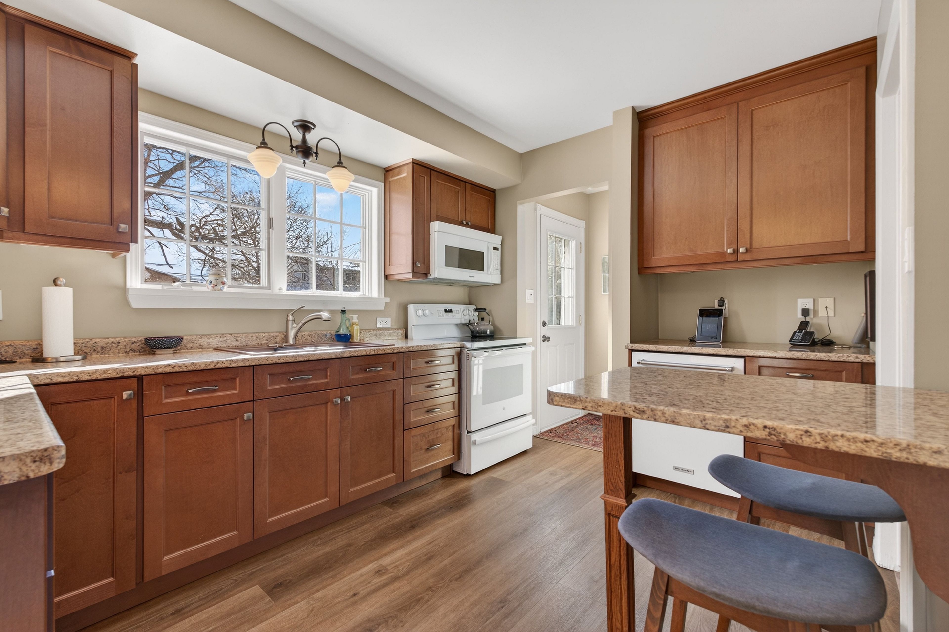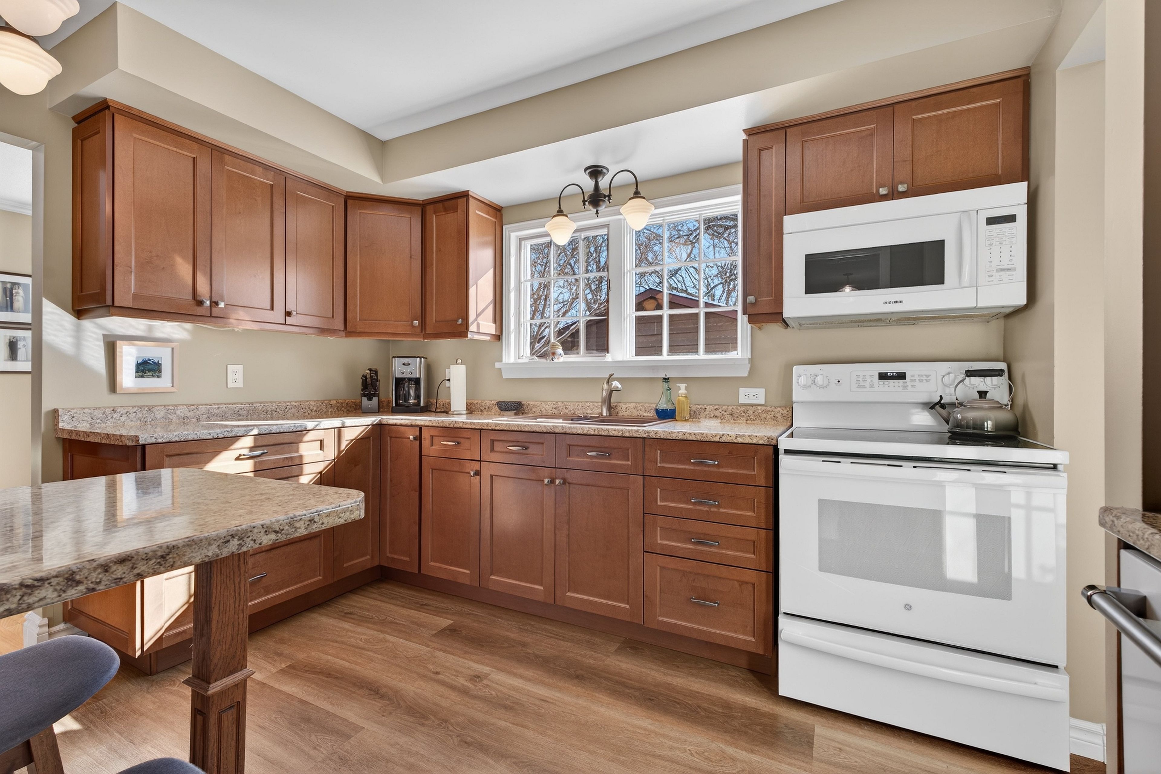 • Renovated kitchen with updated cabinetry for modern functionality.