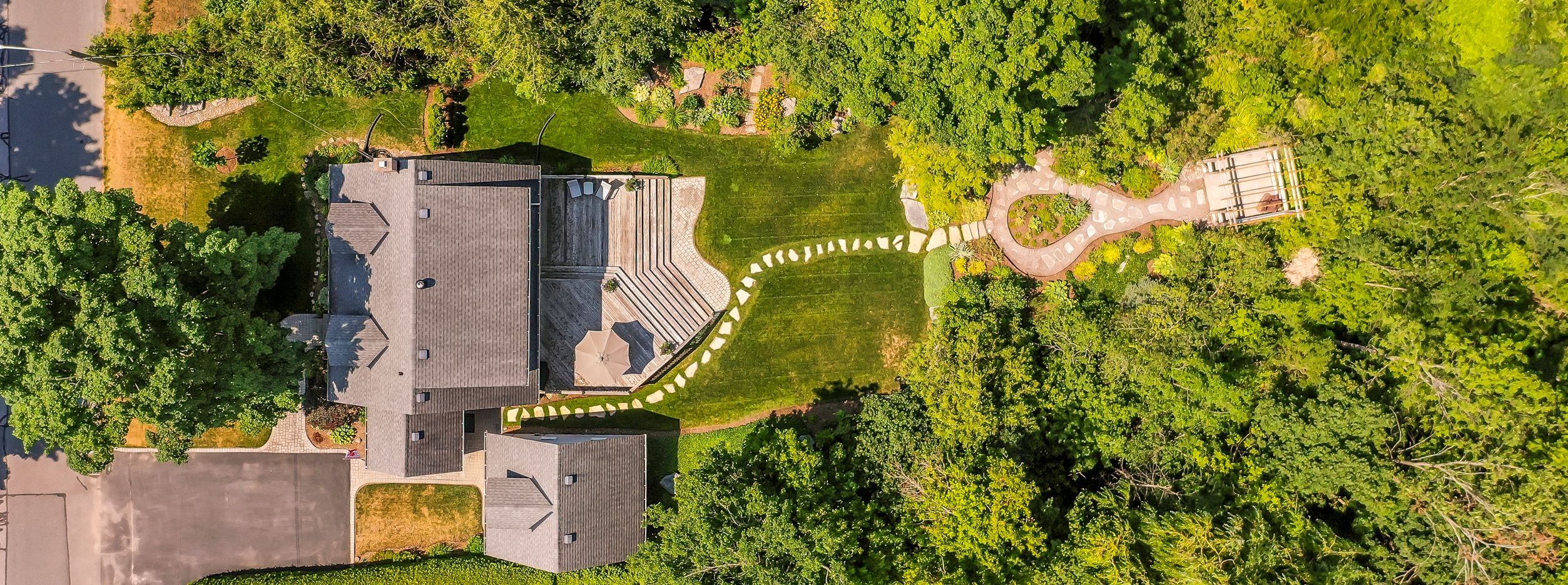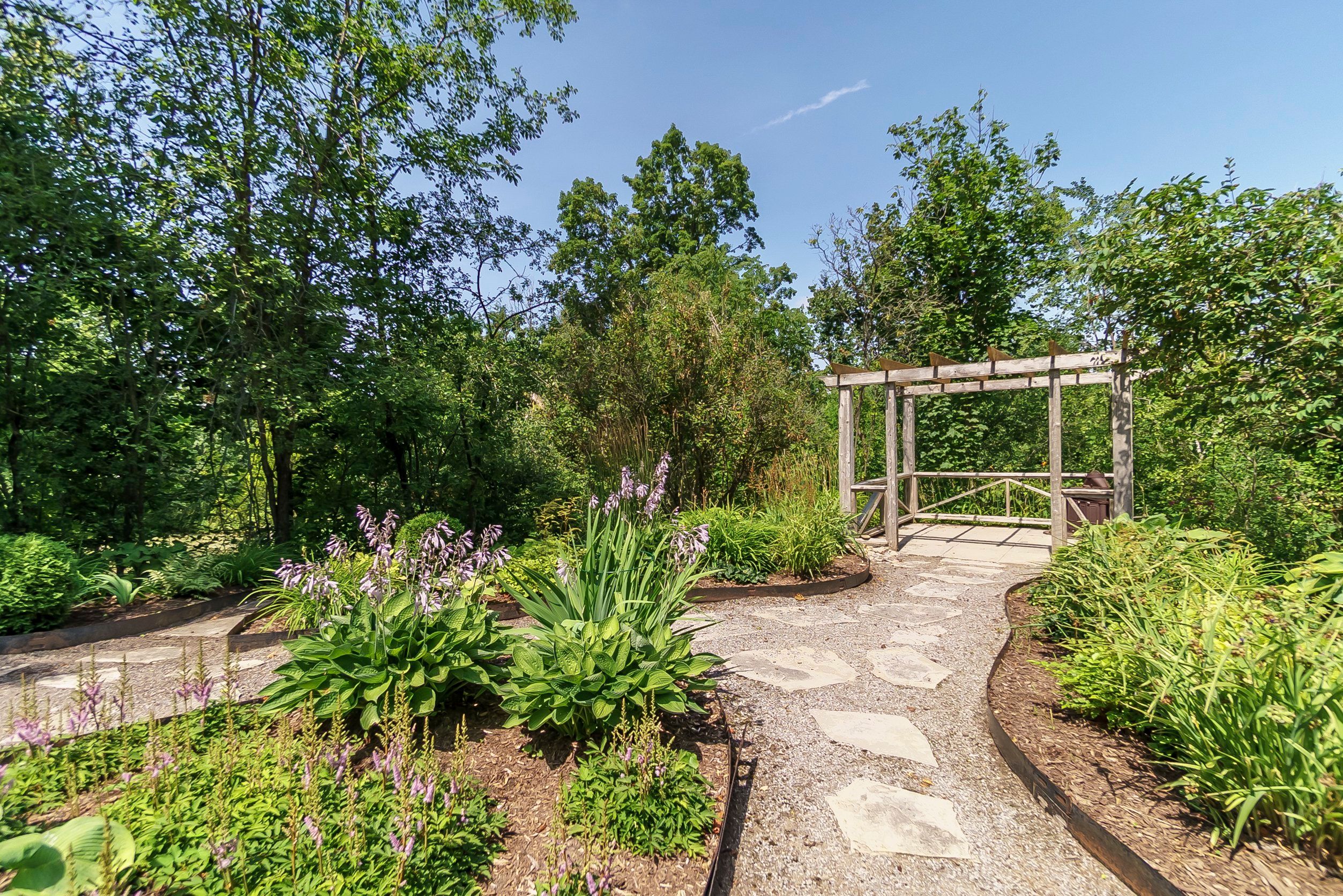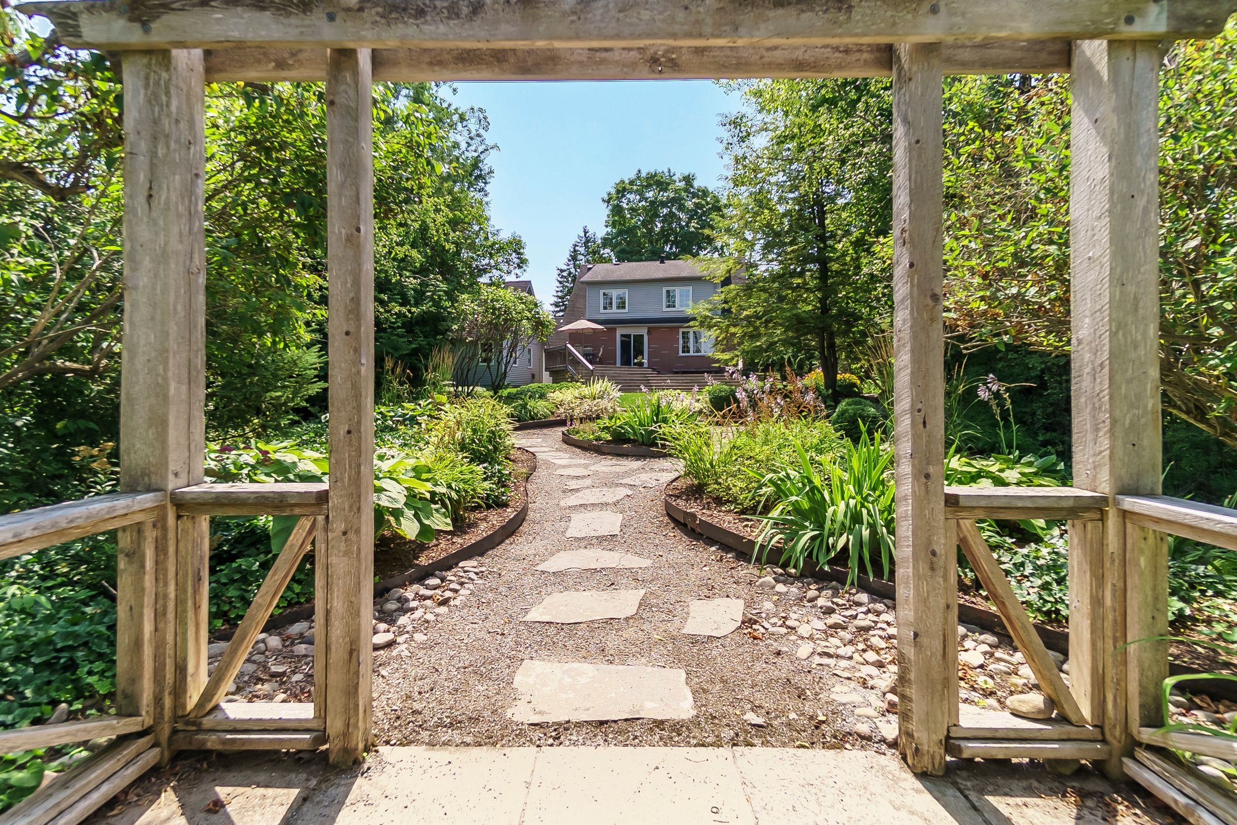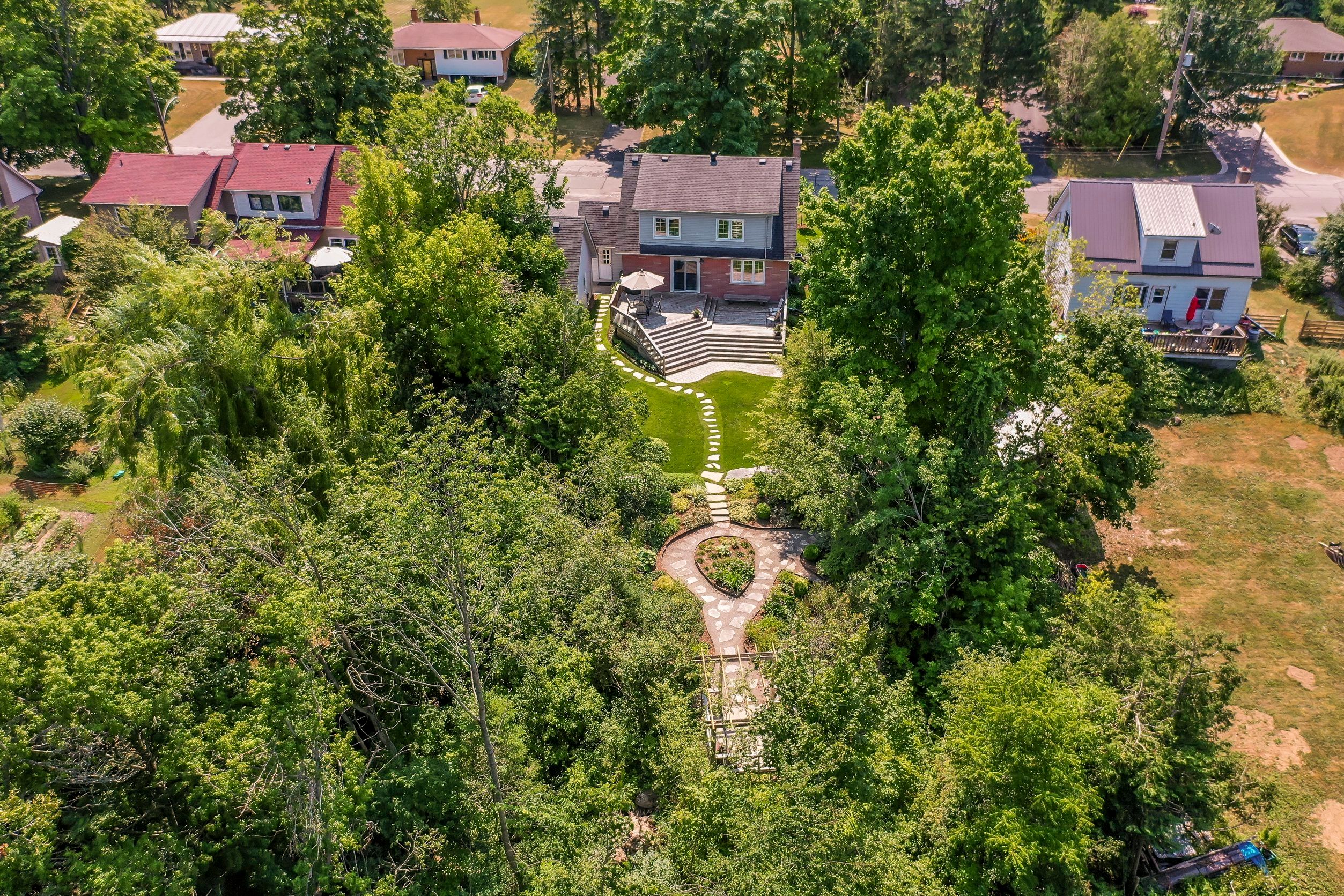 A beautiful cape cod style home in one of peterborough's most sought after neighbourhoods, nestled on a quiet residential street backing onto jackson park, and the trans canada trail - offering a rare blend of privacy and natural surroundings; all just minutes to the hospital and excellent schools. Set on an impressive 86' x 210' lot, this property truly shines with its spectacular, professionally landscaped backyard oasis. Enjoy a serene outdoor retreat with mature trees, lush gardens, a pergola, and a large two-tiered deck overlooking the grounds, all maintained effortlessly with an irrigation system. Inside, this well maintained 2 bedroom, 2 bath home features hardwood flooring, bright inviting living spaces, and a walkout to the deck, seamlessly connecting indoor and outdoor living. The spacious primary bedroom includes a den/office area. The home was originally designed as a 3 bedroom, offering flexibility for future conversion. A fully finished basement with bonus room, a large mudroom, and a detached oversized single-car garage with loft completes this exceptional property.