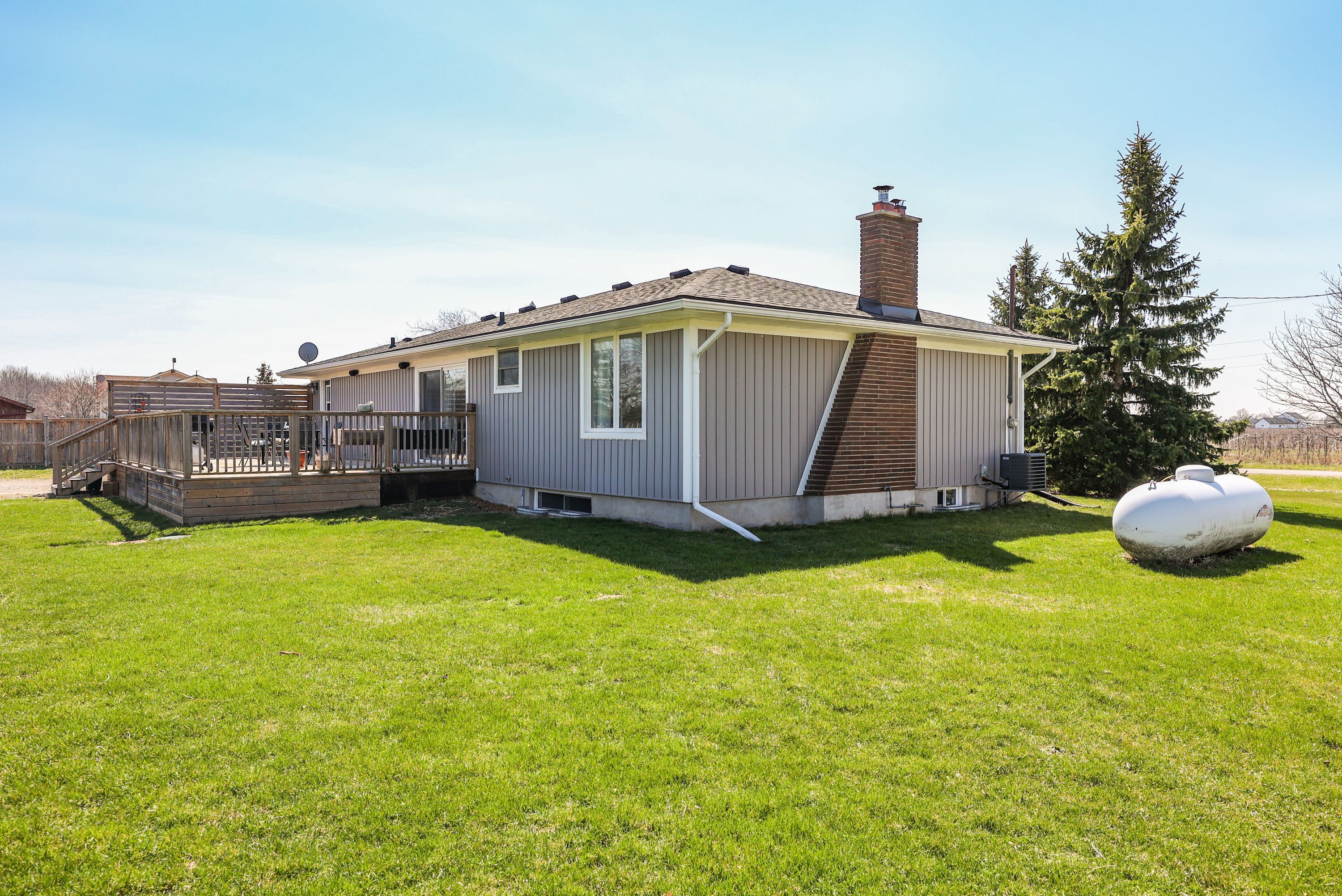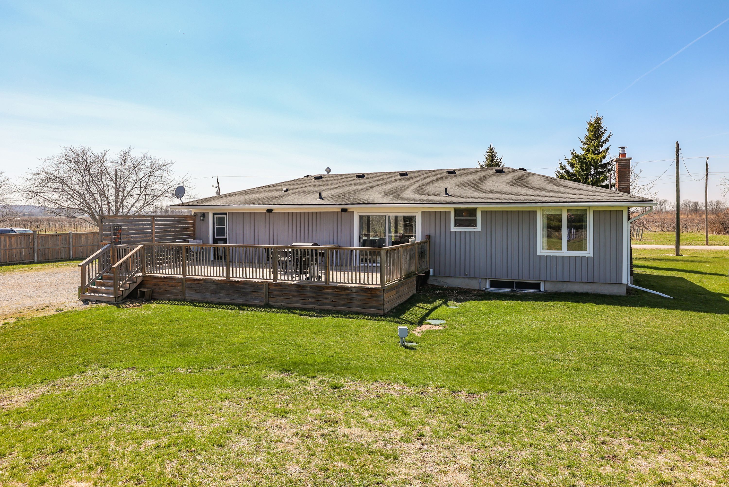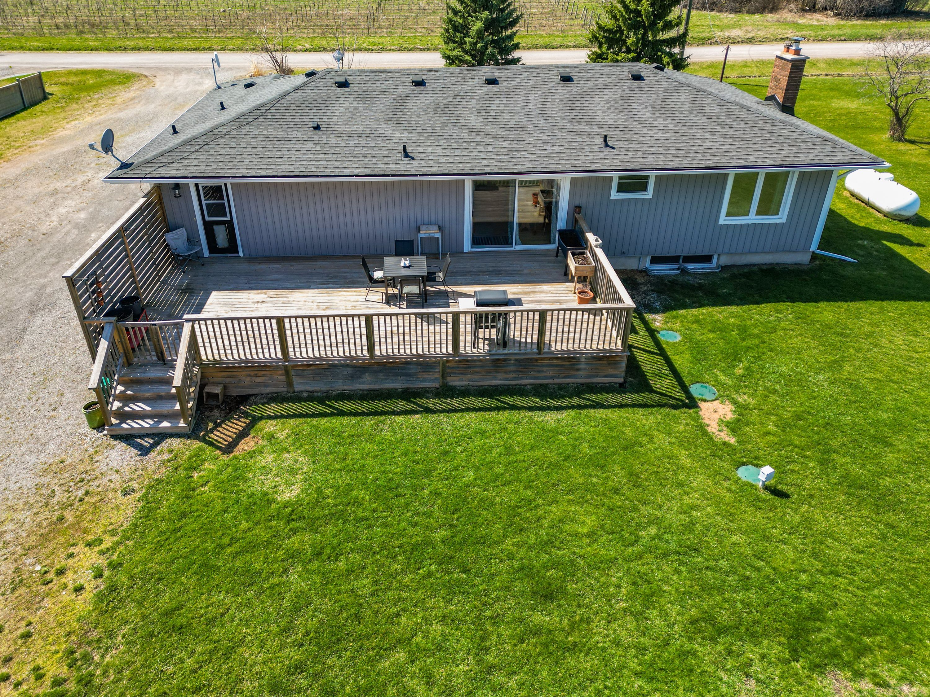 Imagine ending your day on your front porch or in the great room watching vivid sunsets wash over the neighboring grapevines. This immaculate bungalow offers a picturesque lifestyle in rural niagara-on-the-lake, set on a sprawling . 9 acre lot surrounded by vineyards and farmland. Living here means immersing yourself in the niagara lifestyle, with world-class wineries, farm-to-table restaurants, and the historic charm of downtown niagara-on-the-lake just a short drive away. This 3 bedroom, 2. 5 bathroom renovated home feels like a country retreat. The floor plan is designed for functionality, featuring a main-floor laundry and a dedicated mudroom that leads out to an expansive 34' x 16' deck. Open concept great room, dining and kitchen has a warm, natural feel with engineered hardwood. 7. 5 ft patio door from the dining area leads to the entertaining sized deck. Kitchen space balances modern function with "farmhouse charm", featuring a center island, perfect for morning coffee, anchored by a classic apron-front sink that adds a timeless country flair. Triple-glazed windows in the bedrooms & great room "frame" the view (2022). Updates include furnace, ac, electrical panel, septic tank & bed, added attic insulation and so much more. For the hobbyist, a detached oversized garage (33' x 26'11") with hydro and a long double driveway offer plenty of space for hobby projects and parking. The property itself is a dream for those seeking a connection to the land, complete with pear trees and established raspberry bushes. Start a vegetable garden or just take time to enjoy nature. Experience the beauty of the niagara countryside from a home where so much has already been done. Easy access to city amenities and highway access. The sunroom is not included in square footage of the home.