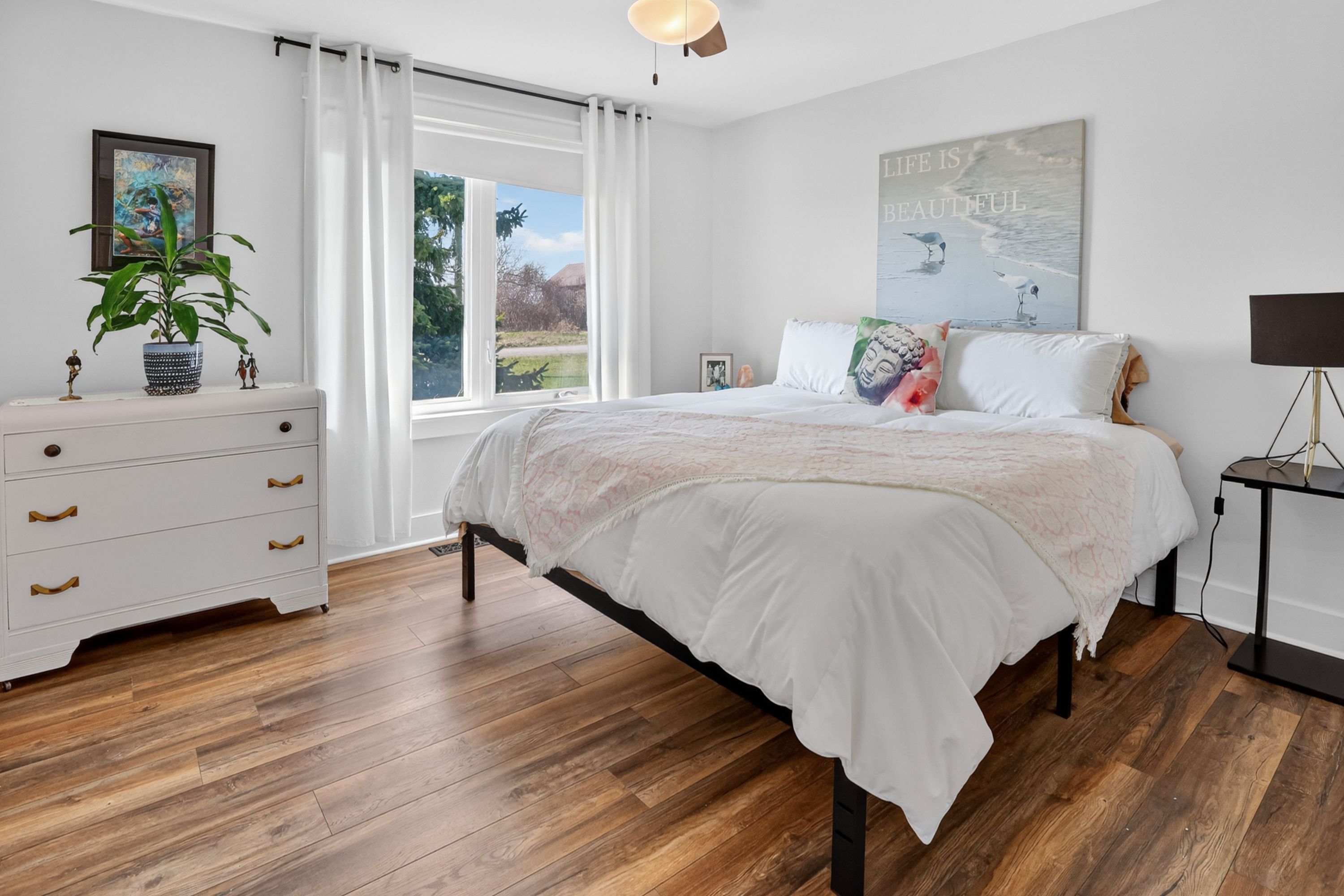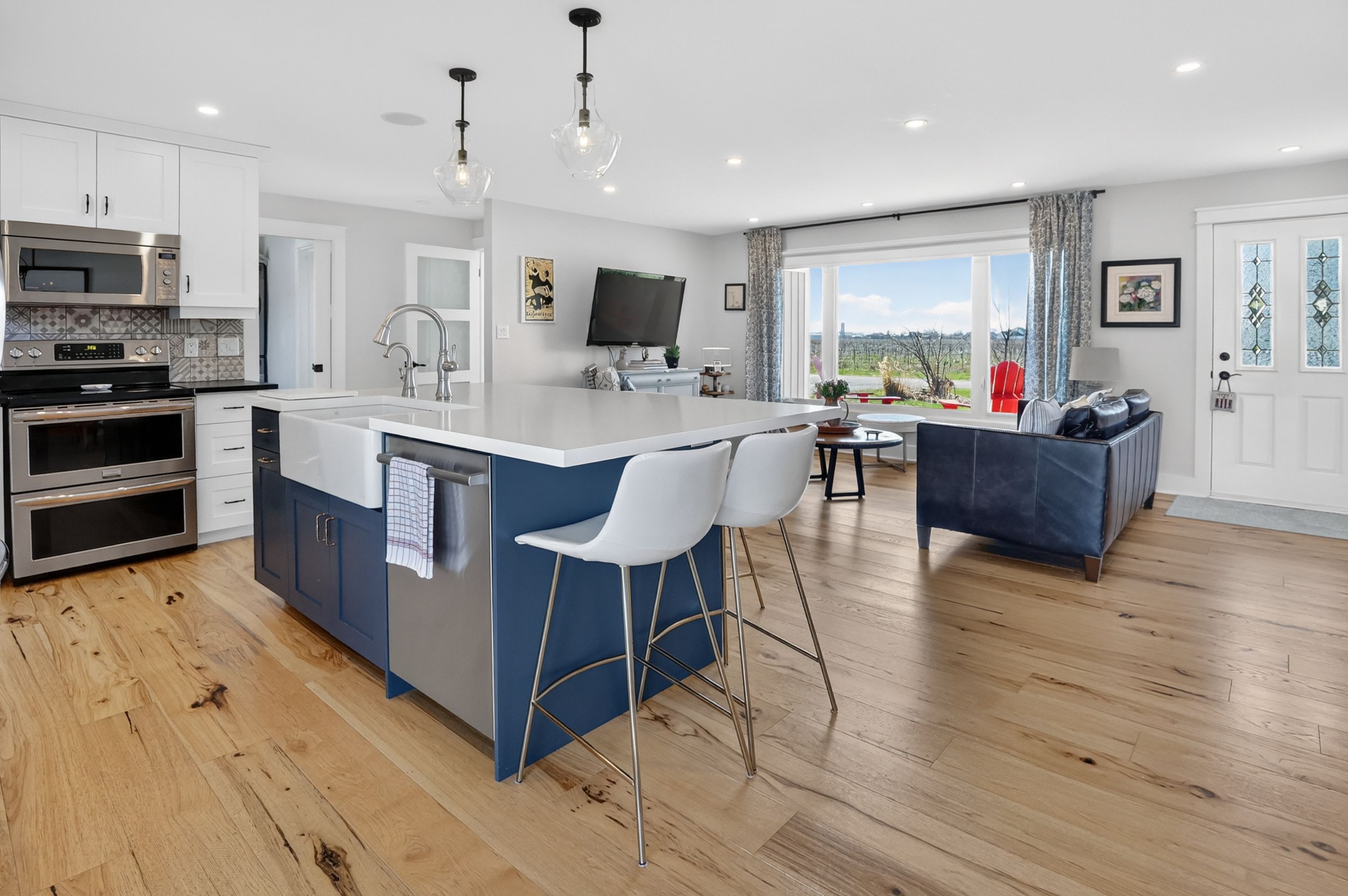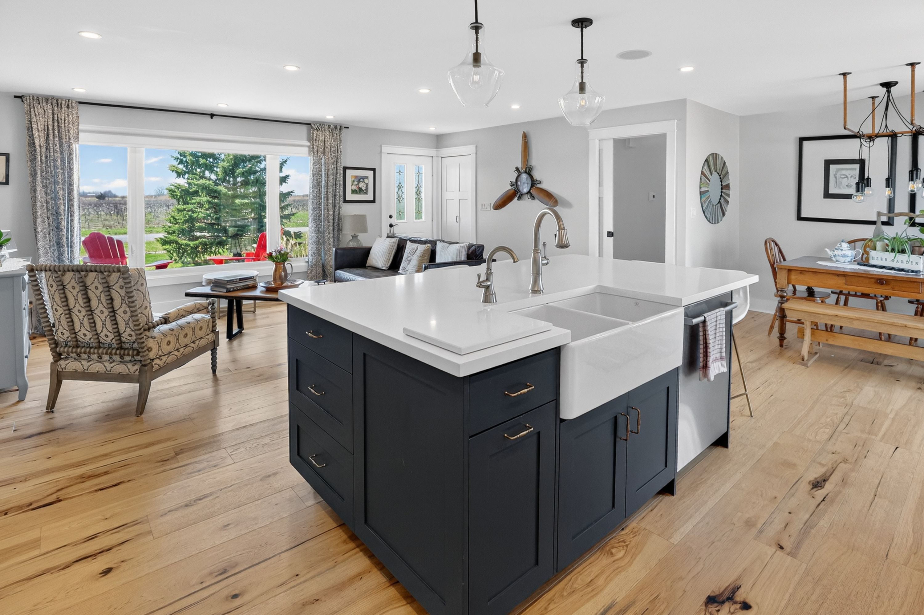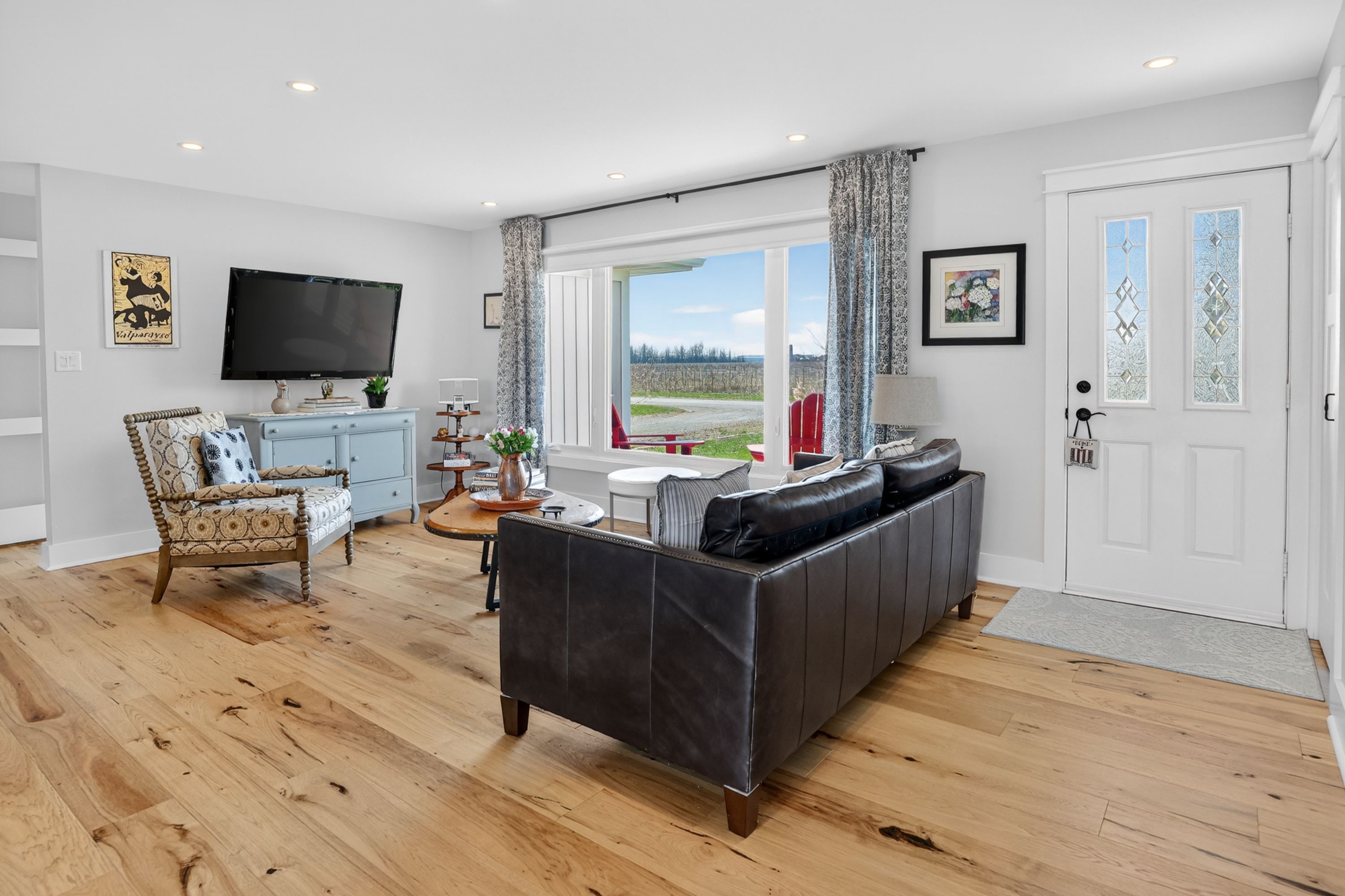 Imagine ending your day on your front porch or in the great room watching vivid sunsets wash over the neighboring grapevines. This immaculate bungalow offers a picturesque lifestyle in rural niagara-on-the-lake, set on a sprawling . 9 acre lot surrounded by vineyards and farmland. Living here means immersing yourself in the niagara lifestyle, with world-class wineries, farm-to-table restaurants, and the historic charm of downtown niagara-on-the-lake just a short drive away. This 3 bedroom, 2. 5 bathroom renovated home feels like a country retreat. The floor plan is designed for functionality, featuring a main-floor laundry and a dedicated mudroom that leads out to an expansive 34' x 16' deck. Open concept great room, dining and kitchen has a warm, natural feel with engineered hardwood. 7. 5 ft patio door from the dining area leads to the entertaining sized deck. Kitchen space balances modern function with "farmhouse charm", featuring a center island, perfect for morning coffee, anchored by a classic apron-front sink that adds a timeless country flair. Triple-glazed windows in the bedrooms & great room "frame" the view (2022). Updates include furnace, ac, electrical panel, septic tank & bed, added attic insulation and so much more. For the hobbyist, a detached oversized garage (33' x 26'11") with hydro and a long double driveway offer plenty of space for hobby projects and parking. The property itself is a dream for those seeking a connection to the land, complete with pear trees and established raspberry bushes. Start a vegetable garden or just take time to enjoy nature. Experience the beauty of the niagara countryside from a home where so much has already been done. Easy access to city amenities and highway access. The sunroom is not included in square footage of the home.
