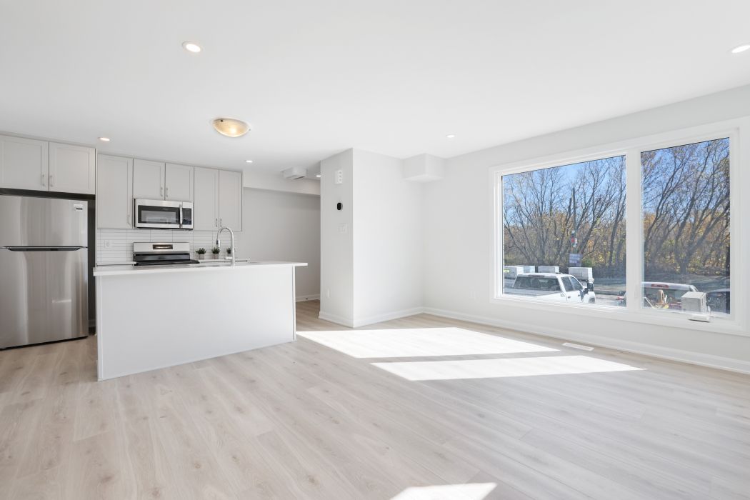 • Open-concept main level featuring modern kitchen and stylish flooring throughout.