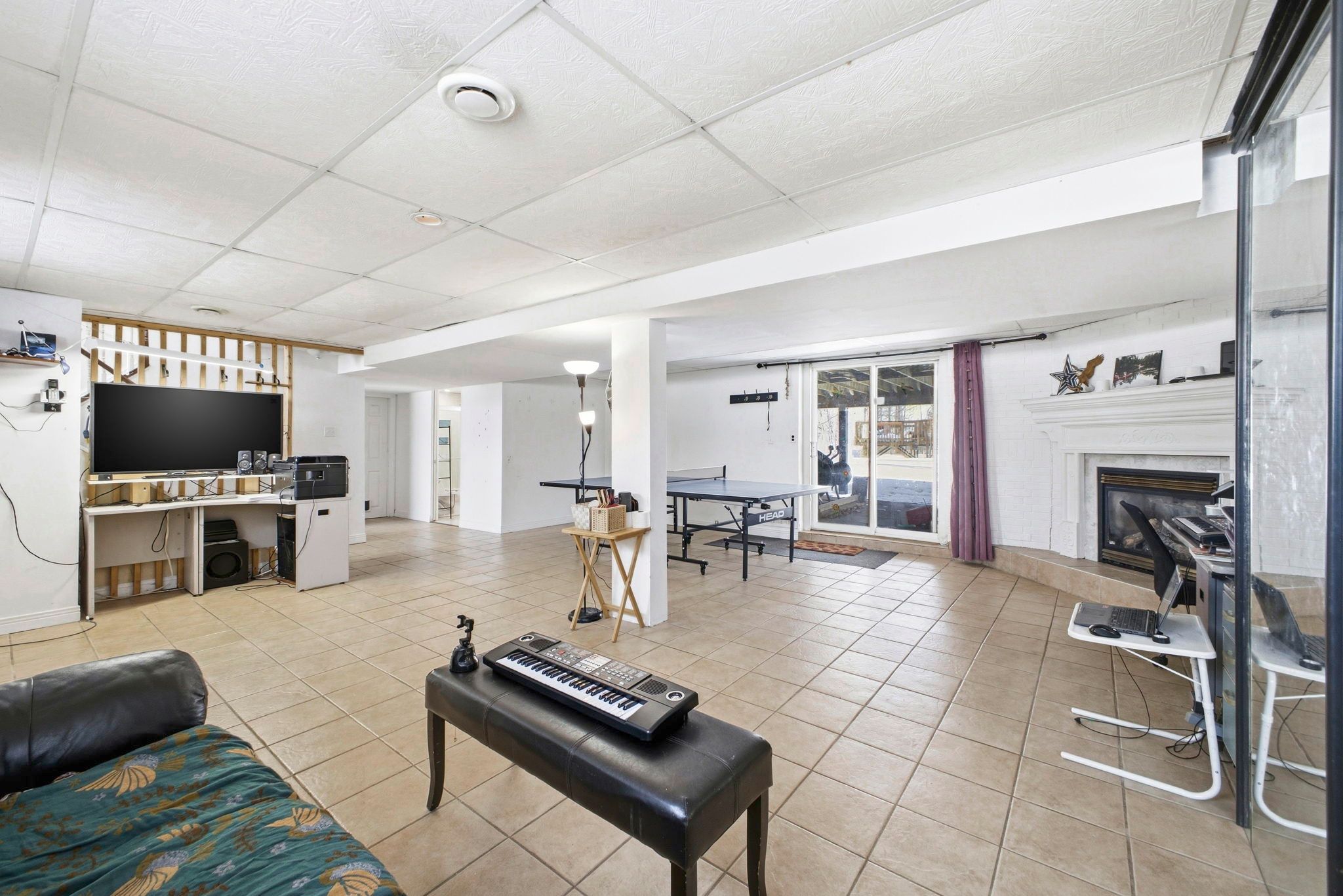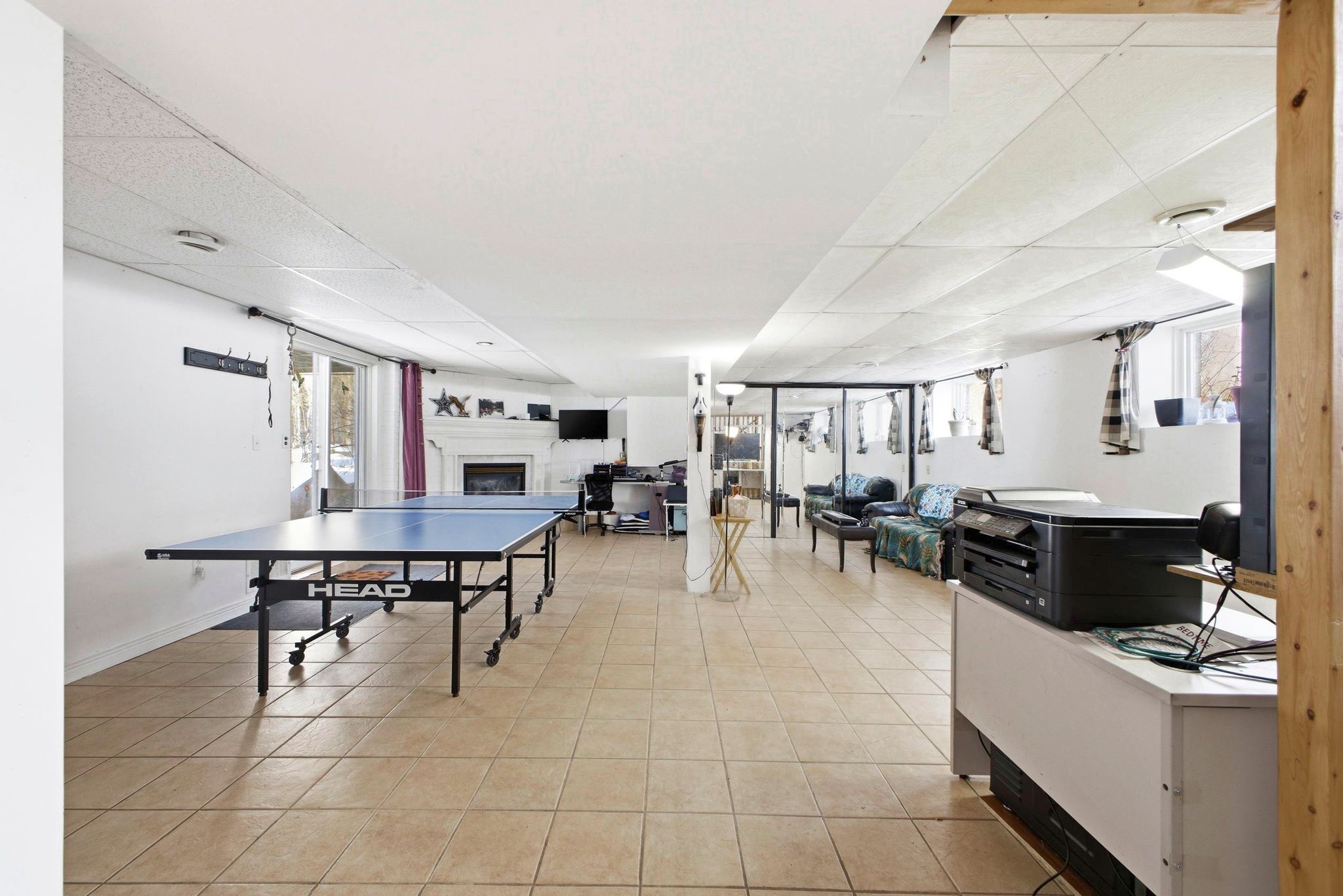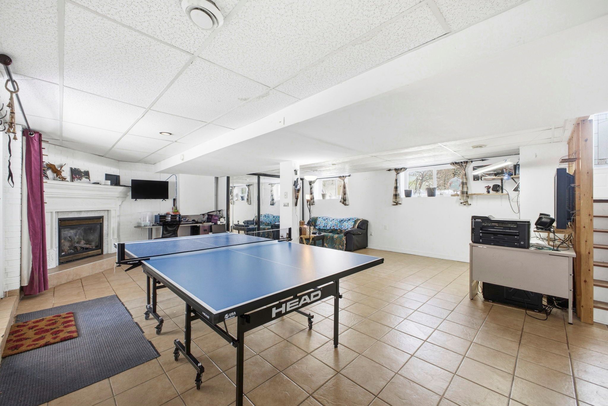 • Finished lower level includes rec room with gas fireplace.