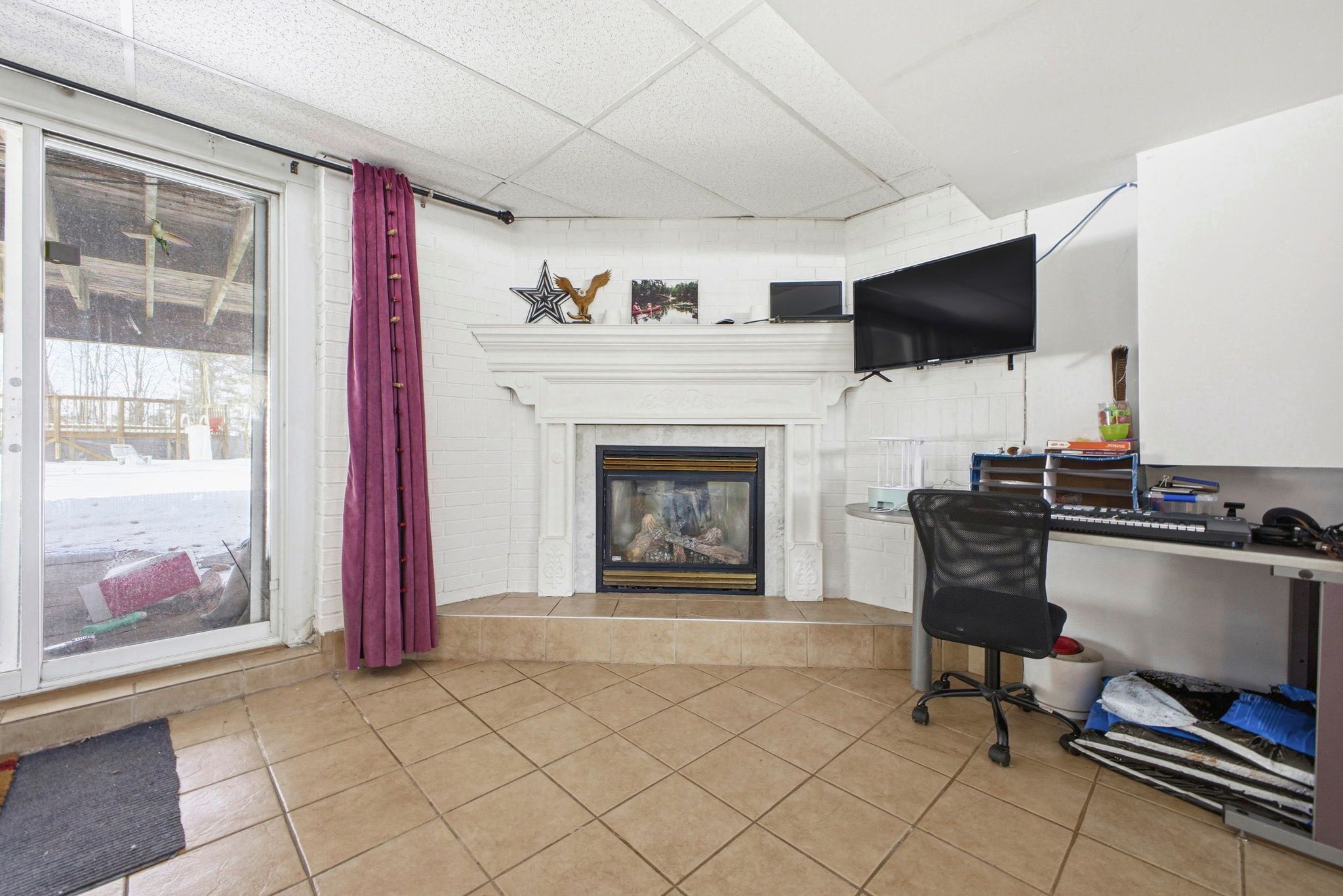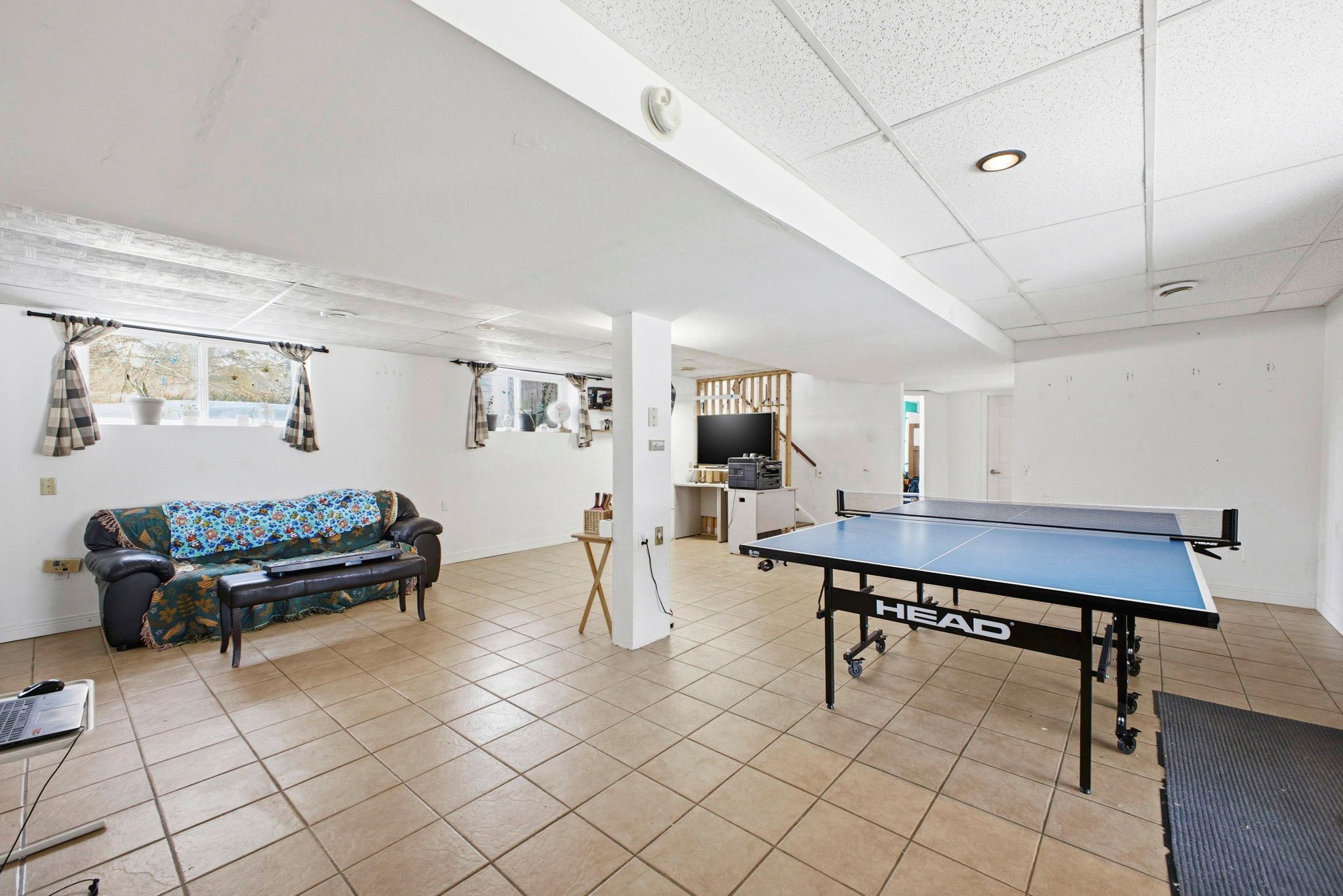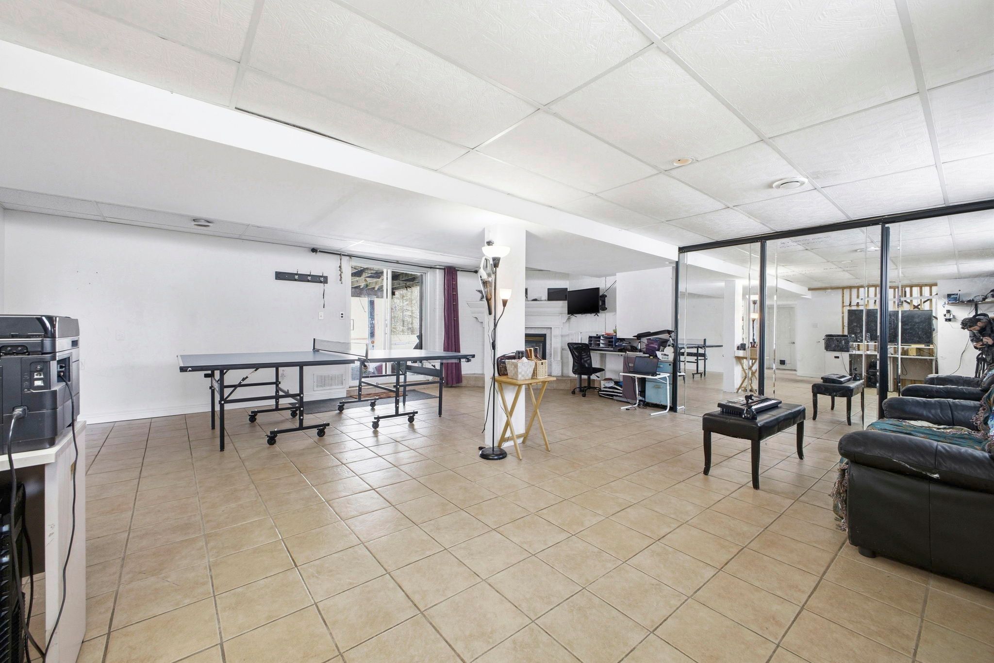 • Finished lower level includes rec room with gas fireplace.