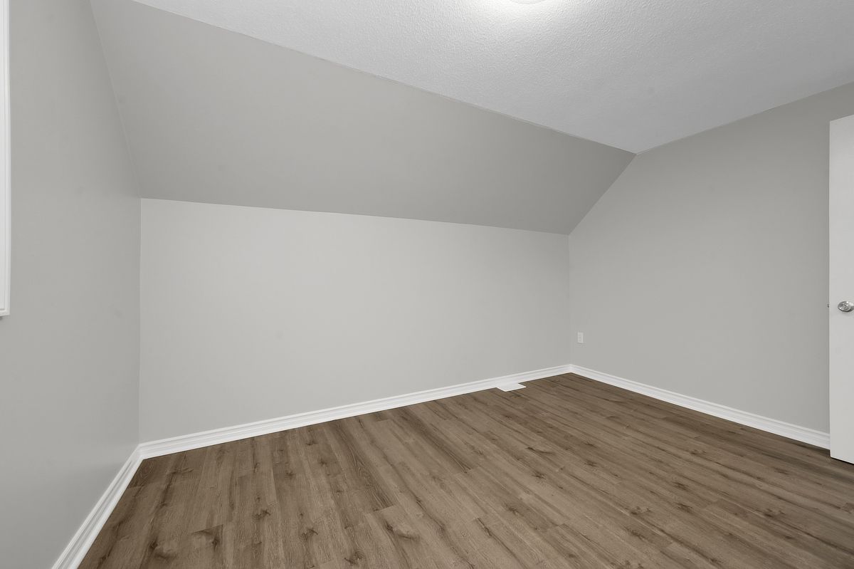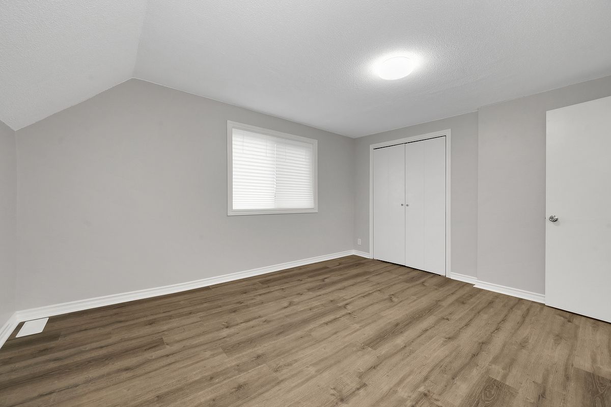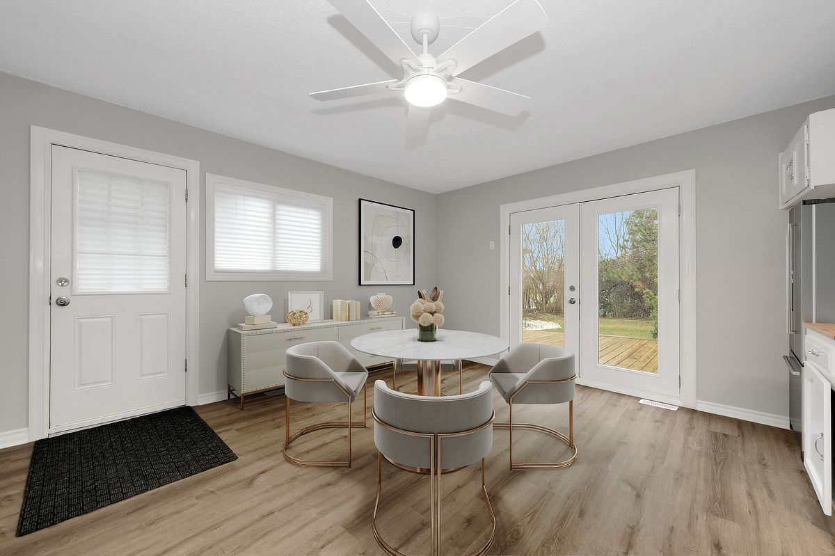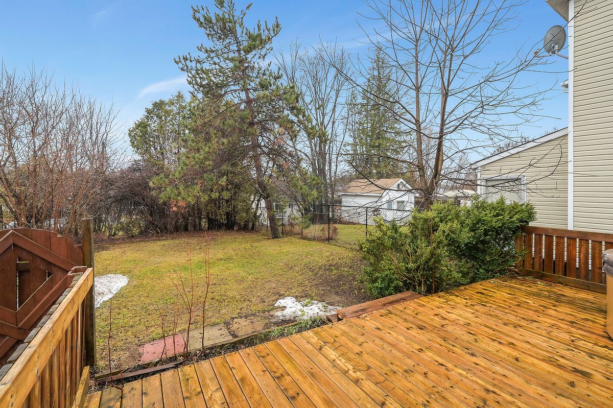 This 1. 5-storey, 3-bedroom home blends thoughtful updates with a layout that simply makes sense. The main floor anchors daily life with a spacious primary bedroom and a full bathroom ideal for easy, single-level living, with two additional bedrooms and a convenient two piece bath upstairs, perfect for family, guests, or a dedicated work-from-home setup. Freshly painted throughout, the home feels crisp and move-in ready, with new glass railings and vinyl flooring that carries a seamless flow from room to room, durable, modern, and ready for everything. Step outside and the lifestyle expands, a welcoming front porch for morning coffee, and out back, a generous deck overlooking a large treed lot with no rear neighbours, your own private backdrop for summer dinners, quiet reading, or weekend gatherings. Whether you're searching for a detached home in family friendly rockland with a main floor primary bedroom, a large private yard, or simply a space that balances function and calm, this property delivers a country vibe in a convenient location with easy highway access and walking distance to shops and restaurants. Great location, great value. Some photos have been virtually staged.