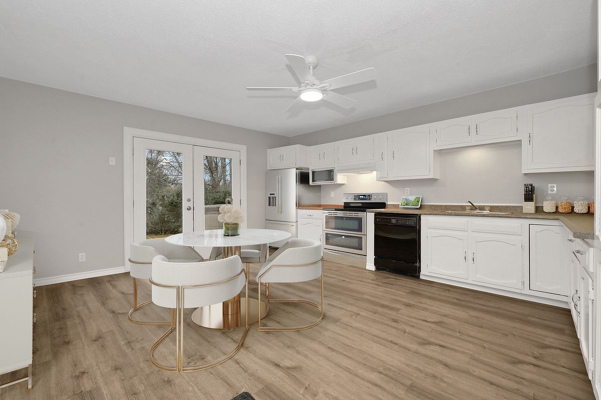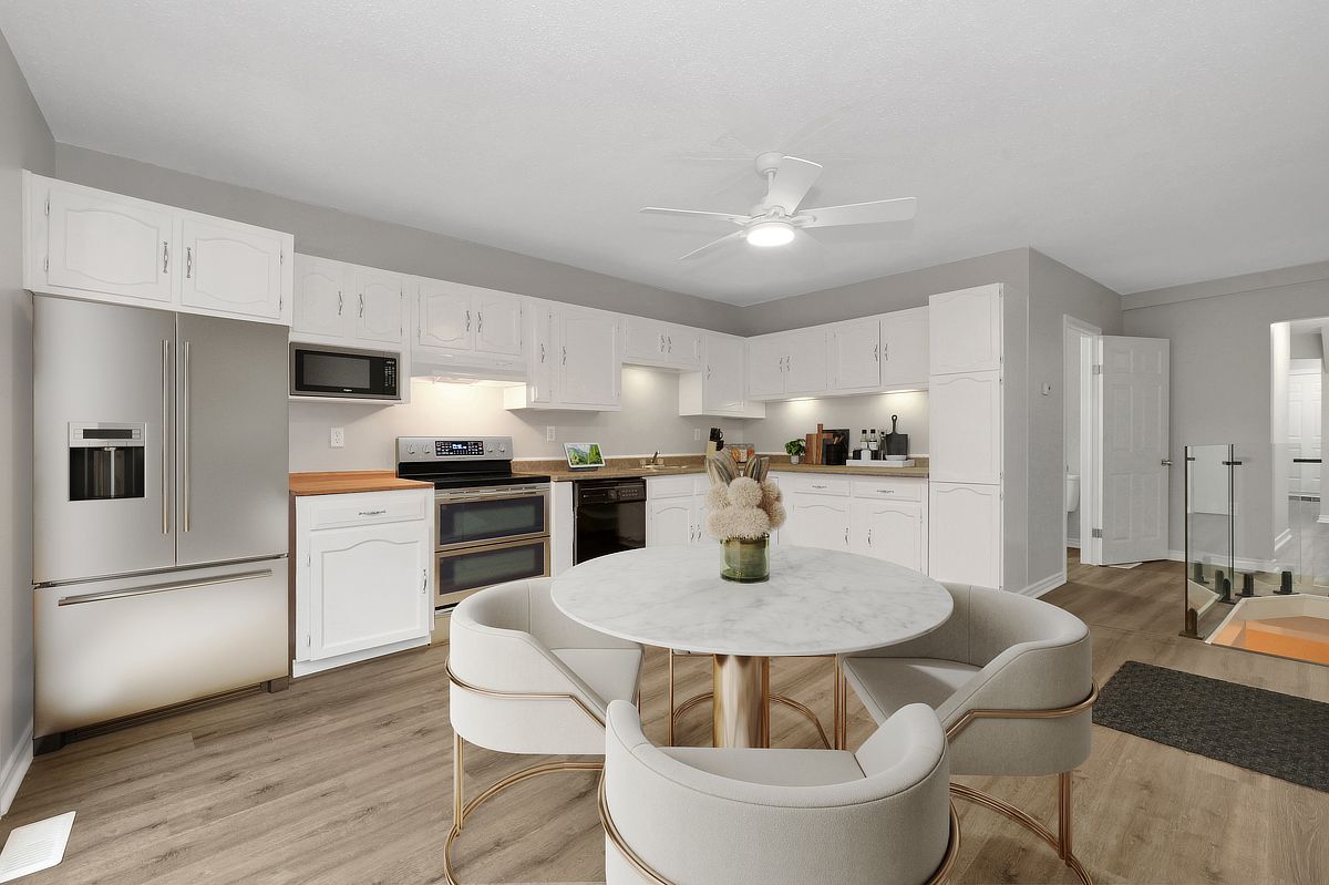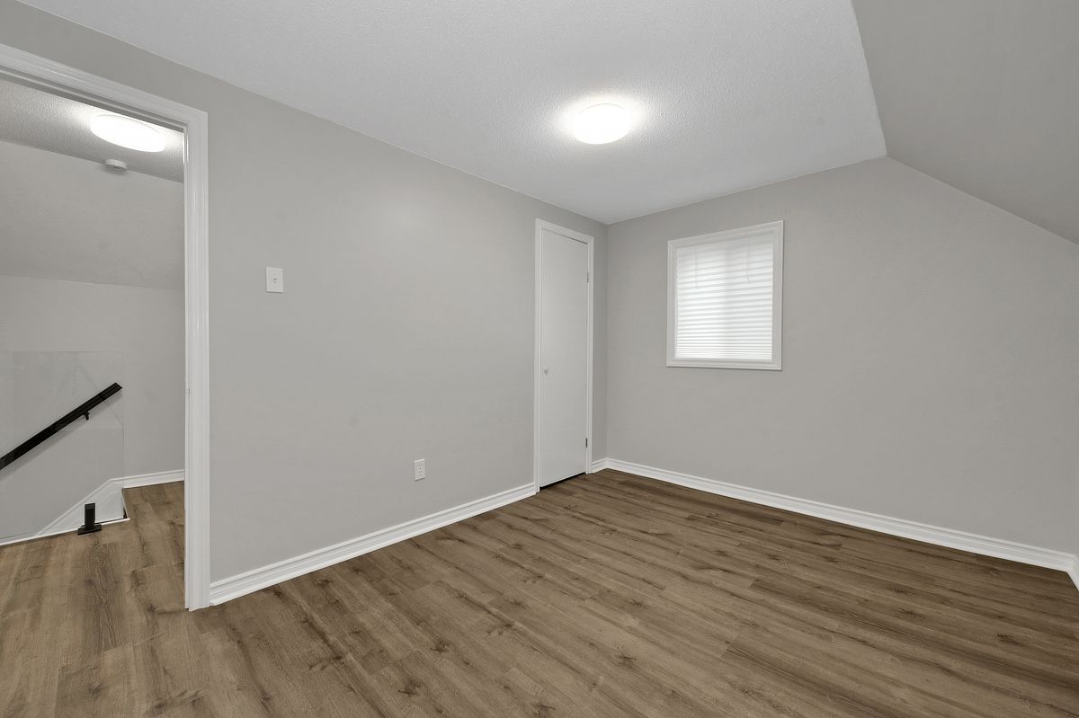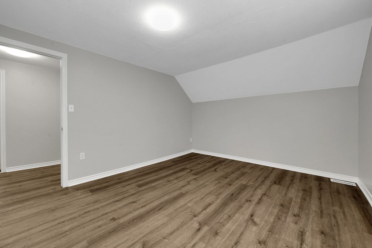 This 1. 5-storey, 3-bedroom home blends thoughtful updates with a layout that simply makes sense. The main floor anchors daily life with a spacious primary bedroom and a full bathroom ideal for easy, single-level living, with two additional bedrooms and a convenient two piece bath upstairs, perfect for family, guests, or a dedicated work-from-home setup. Freshly painted throughout, the home feels crisp and move-in ready, with new glass railings and vinyl flooring that carries a seamless flow from room to room, durable, modern, and ready for everything. Step outside and the lifestyle expands, a welcoming front porch for morning coffee, and out back, a generous deck overlooking a large treed lot with no rear neighbours, your own private backdrop for summer dinners, quiet reading, or weekend gatherings. Whether you're searching for a detached home in family friendly rockland with a main floor primary bedroom, a large private yard, or simply a space that balances function and calm, this property delivers a country vibe in a convenient location with easy highway access and walking distance to shops and restaurants. Great location, great value. Some photos have been virtually staged.