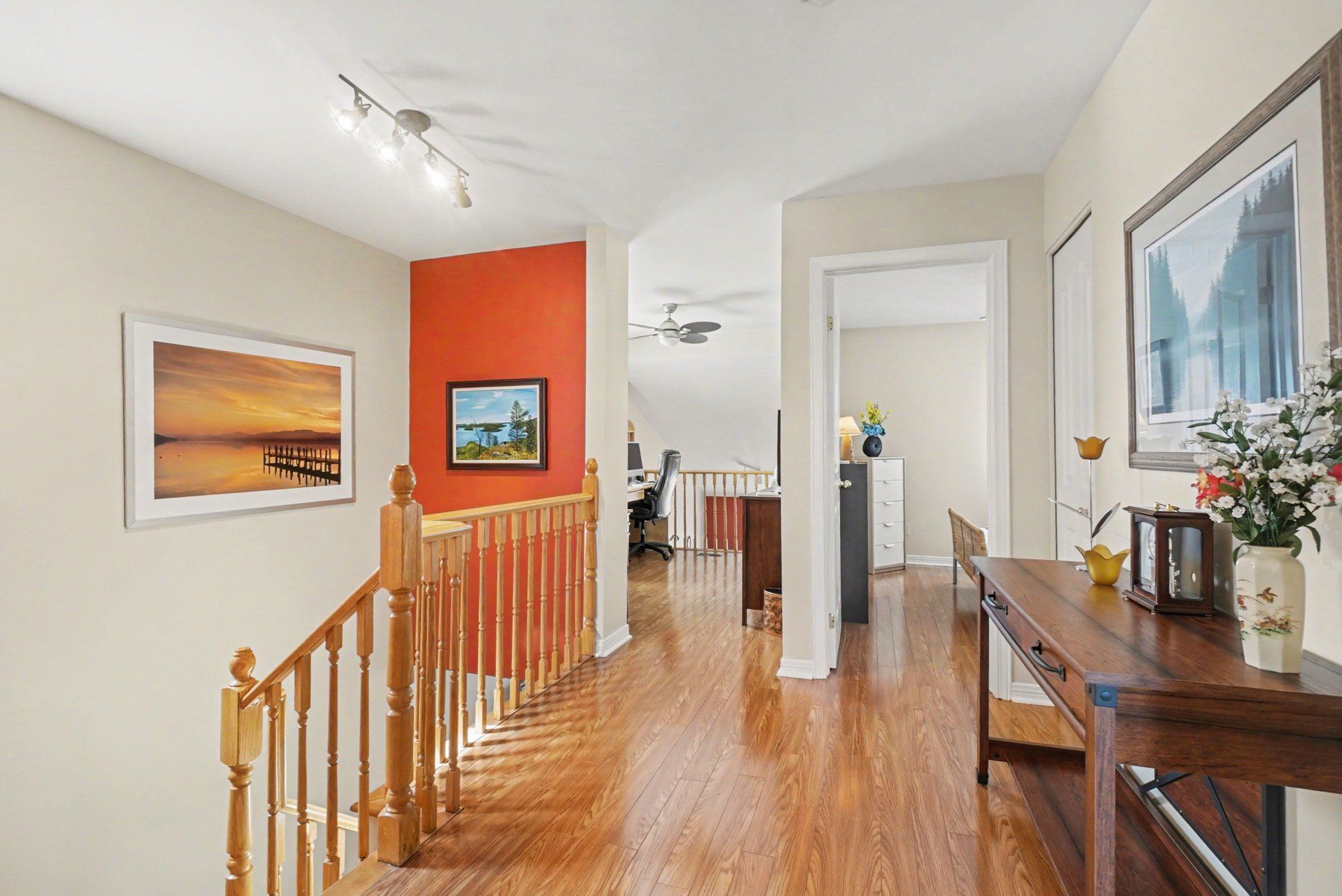 Location! Welcome to sought-after notting hill, 1 of orleans' most convenient family-oriented areas! Easy access to hwy 174, innes rd, transit, parks, schools, grocery stores, shopping & everyday services. Walk 9 mins to millennium plaza & park on trim rd w/sobeys, lcbo, cafés, restaurants, fitness centres, soccer/football fields... Steps to provence pk w/tennis & basketball crts, splash pad, gazebo & hockey fun off scala. Curb appeal & upgrades galore! A fabulous end unit w/pizzazz, a sexy layout, lovely front porch w/metal railing, re-landscaped front & back, added trees for privacy/shade, perennial boxes, fenced yard, shed & recently redone 2-tier pressure-treated deck, great for bbq & outdoor enjoyment. Inside! A revamped home from top to bottom w/pride of ownership evident throughout! Over 55k upgrades: no carpets! Ceramic & hardwood flrs 1st & 2nd incl. Stairs w/oak railing to upstairs new flrs, flat ceilings except 2 bds, decora switches, upgraded lights/fans, hi-eff toilets, neutral décor.. Open concept lr/dr w/soaring cathedral ceiling, palladium window, west exposure & abundant natural light. The well-appointed kitchen/eat-in area offers professionally painted cabinetry, quartz counters incl breakfast counter, undermount sink & tap, ceramic backsplash, new flr, all new appl's incl gas stove & patio drs to deck. Adjacent living rm with corner gas fplace & picture window. Upstairs! Double doors lead to the primary bd w/walk-in closet & thoughtfully enhanced ensuite w/large shower w/glass drs. Good sized secondary bd/versatile loft w/window, a rare find, ideal for office or easily converted to 3rd bd + updated main bath. Lower level! Recently completed in '25 w/french dr down to family rm, laminate flr, large window, laundry/storage - ideal retreat for kids or extra living. Updates:roof & gar opener'18, fresh exterior paint'26, furnace & c/air'19, kitchen & all baths'19-21, custom blinds '22, driveway resealed & lower level '25. Package avail. A gem! Turn key!