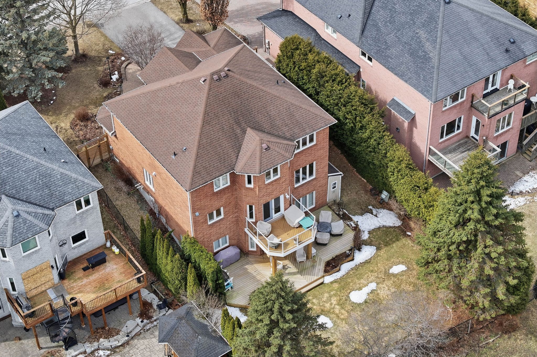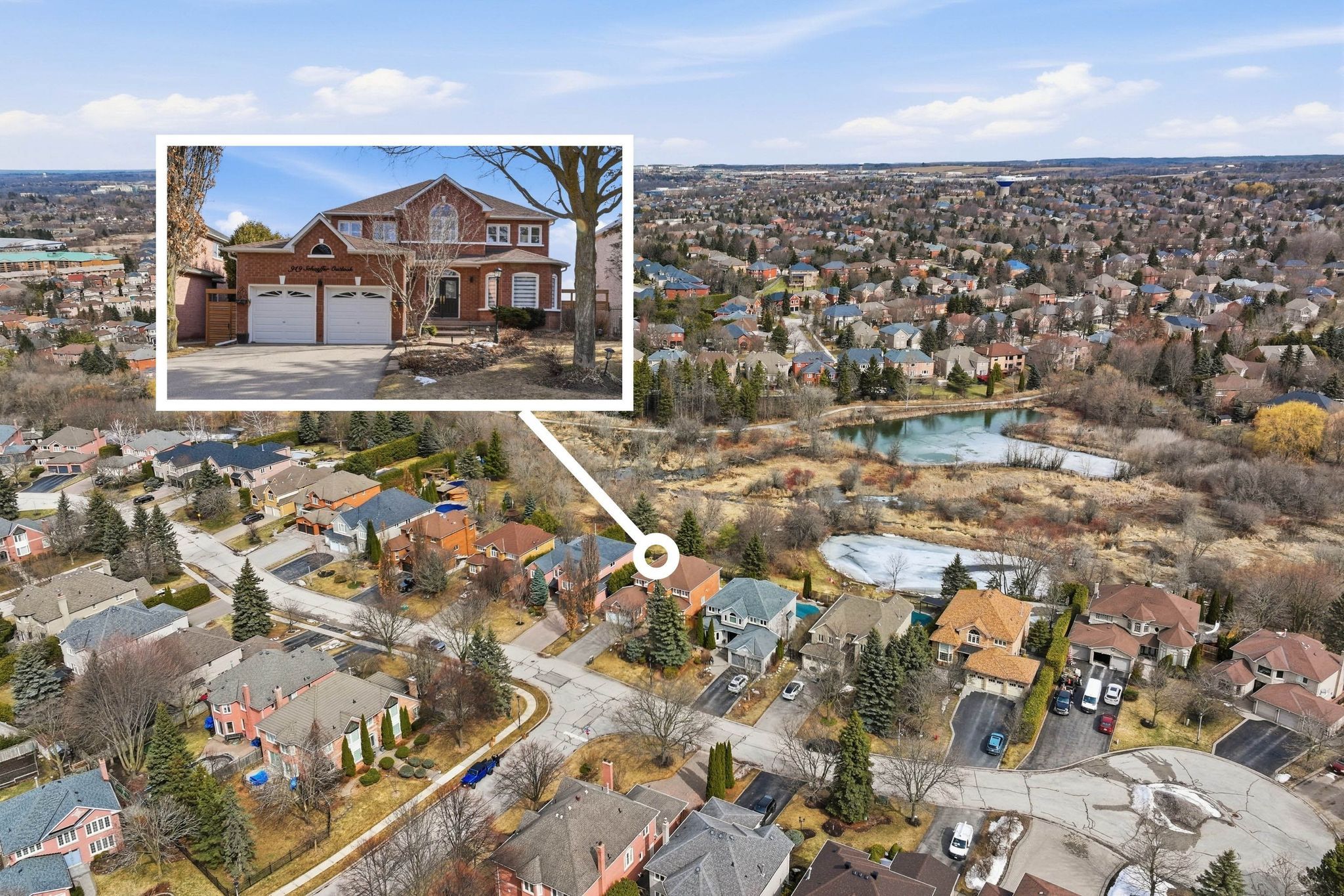Set within a quiet double cul-de-sac in sought-after stonehaven-wyndham, 919 schaeffer outlook offers a rare combination of privacy, space, and natural surroundings, backing onto serene greenspace and a picturesque pond. Lovingly maintained and tastefully updated, this home is designed for both everyday living and elevated entertaining. The main level features 9-foot ceilings, expansive principal rooms, and a bright breakfast area with a walkout to a sun deck, an ideal setting to take in the unobstructed ravine views. The backyard is fully fenced with a large deck and direct connection to nature, creating a peaceful outdoor setting. Upstairs, the primary suite is thoughtfully designed with a 5-piece ensuite, walk-in closet and double closet, and a separate side room featuring vaulted ceilings and oversized windows, perfect as a private lounge, home office, or work-out space. With 4 spacious bedrooms on the second floor plus an additional bedroom in the basement, providing exceptional flexibility for growing families, guests, or multi-generational living. The finished walkout basement extends the home's living space with the same 9-foot ceilings, offering a recreation area with a gas fireplace, wet bar, and an included pool table, ideal for entertaining. This level also features an additional bedroom, 3-piece bathroom, and a dedicated workshop. Ideally located near highly rated stonehaven p. S. Positioned just north of the border of aurora and newmarket, this home offers convenient access to top schools, parks, and amenities while delivering the tranquility of a premium ravine lot. A refined family home where space, setting, and thoughtful updates come together seamlessly.