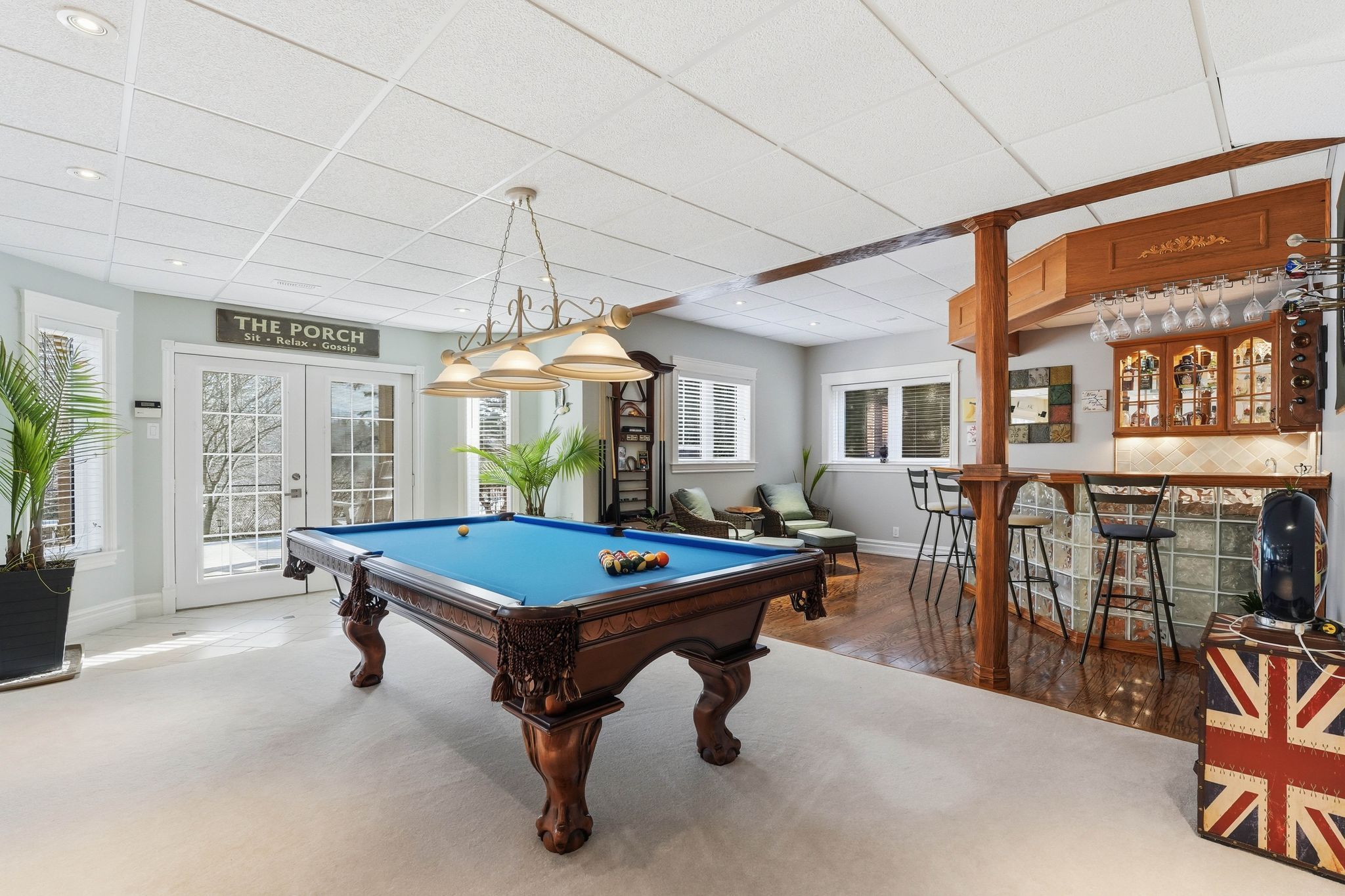 • Finished walkout basement with a recreation area and gas fireplace.