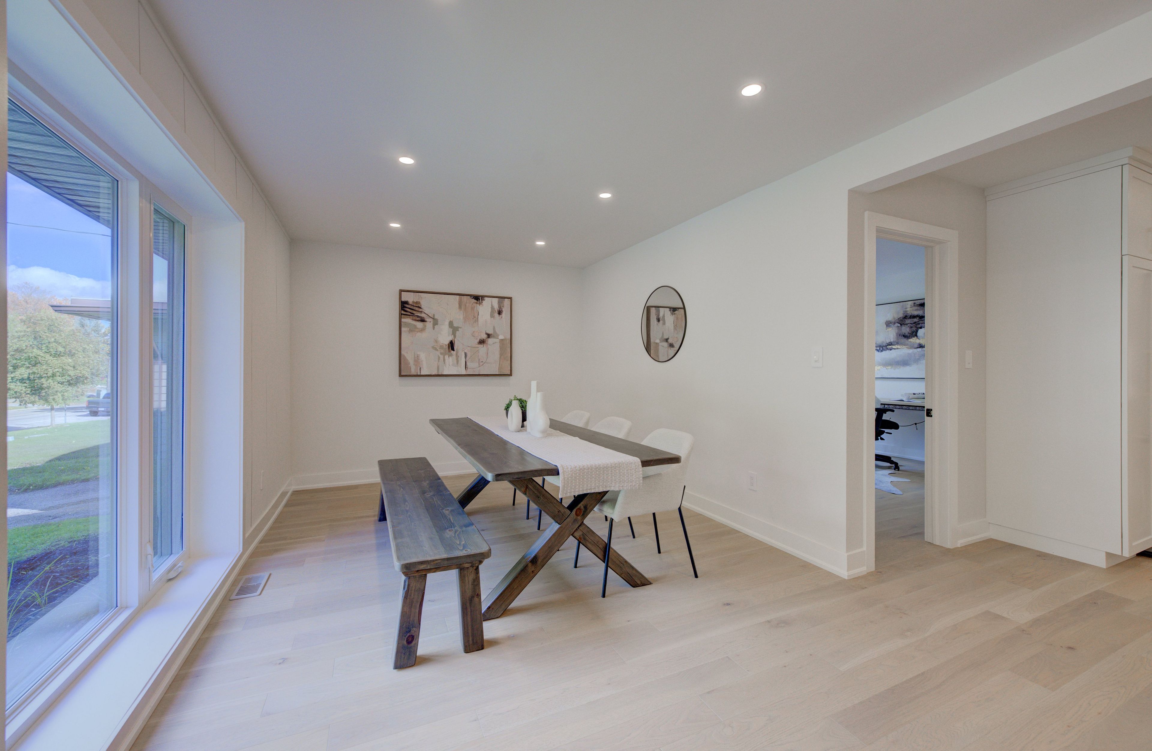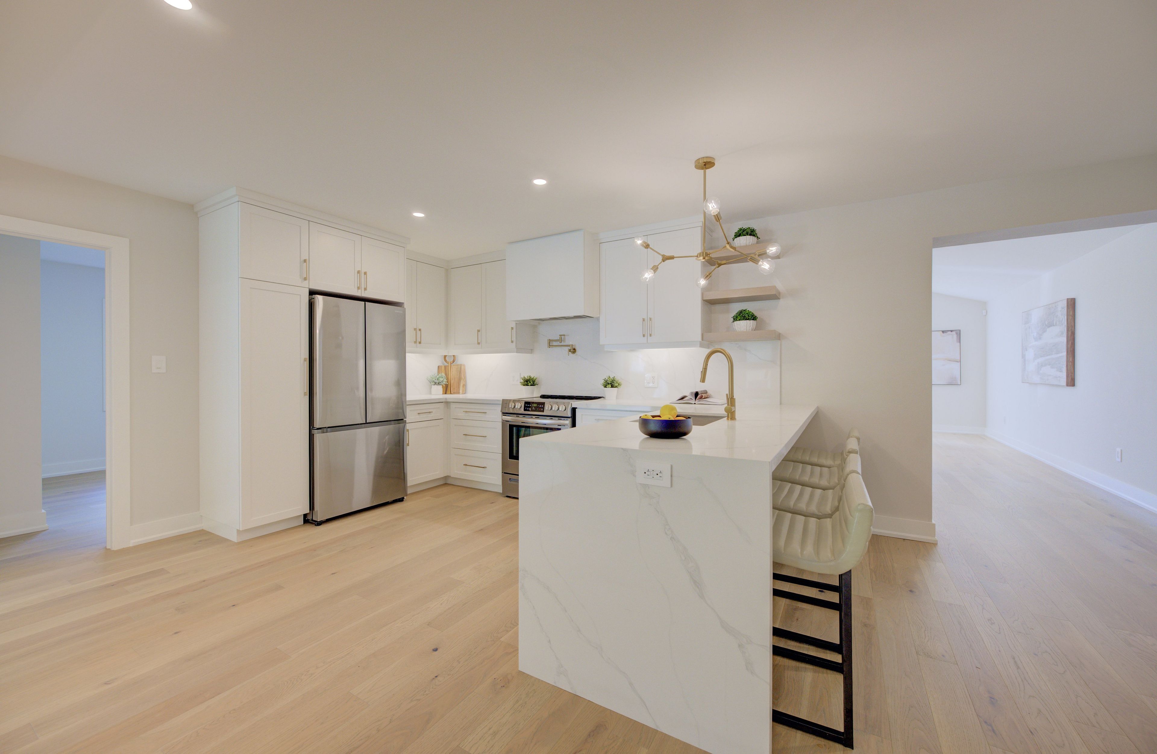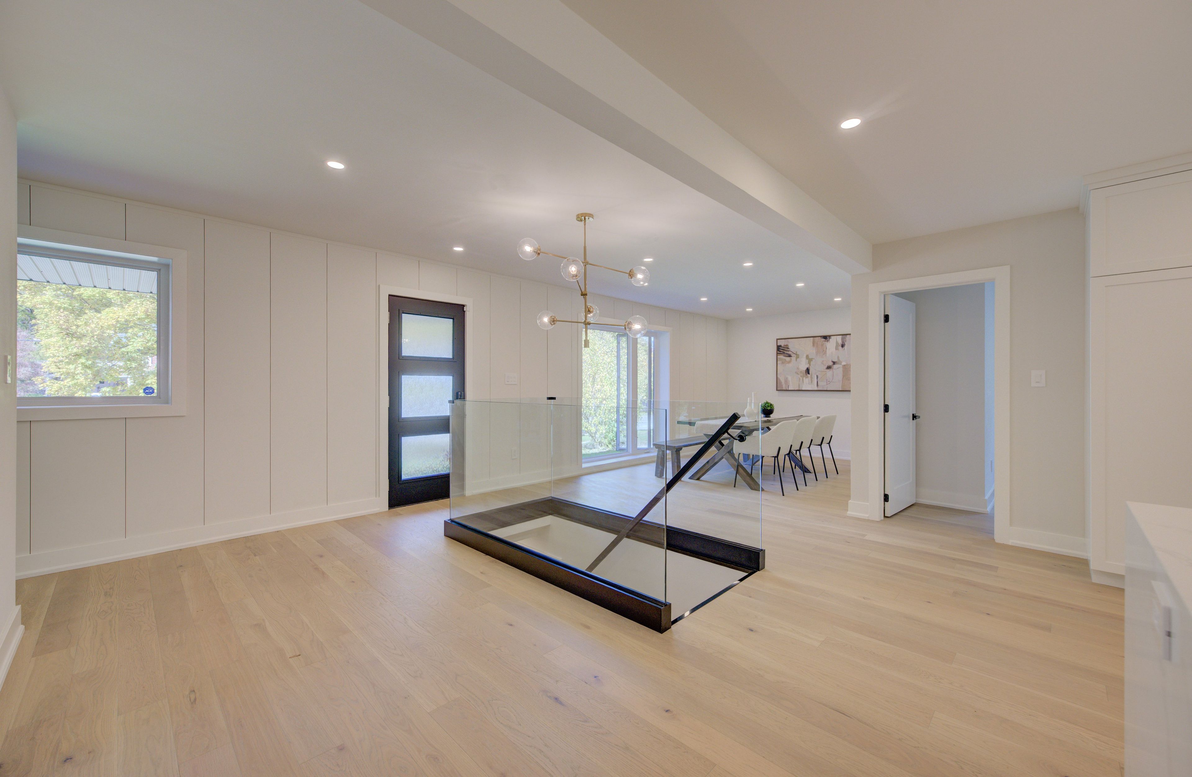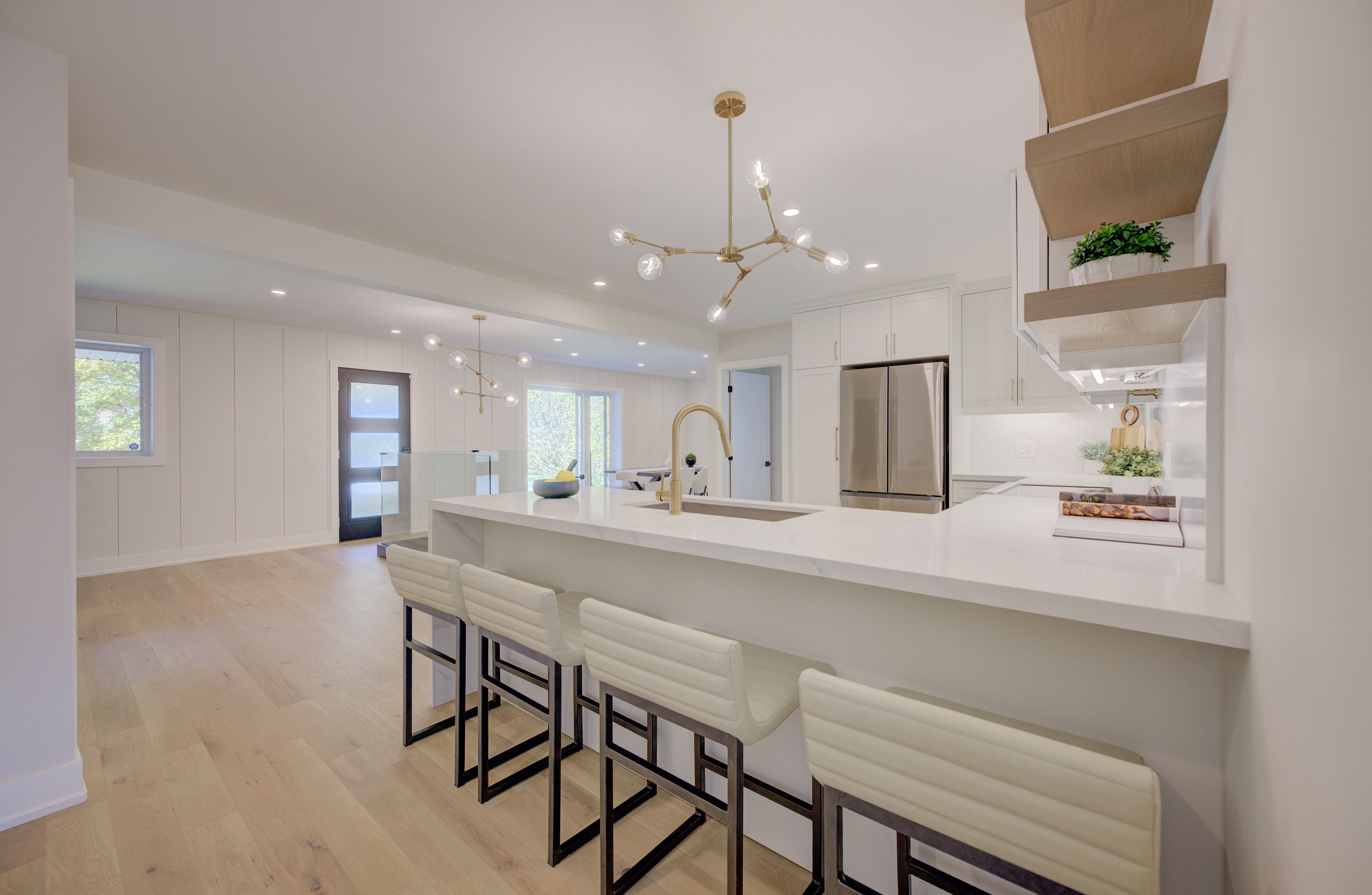 Welcome to 919 union street, a stunning, fully renovated luxury bungalow in the heart of kitchener. Set on a generous 60x135 ft lot, this 4-bedroom, 3-bathroom home offers over 2,140 sq ft of beautifully finished living space, thoughtfully designed for comfort, elegance, and function. Inside, light oak flooring sets a warm, contemporary tone throughout. The custom barzotti kitchen is a showpiece, featuring quartz waterfall countertops, a full slab backsplash, designer brass fixtures, and timeless cabinetry. The open-concept layout flows seamlessly into the dining and living areas, creating a welcoming and functional space for daily life or entertaining. At the rear of the home, a breathtaking living room steals the spotlight with its 12-foot vaulted ceiling and floor-to-ceiling windows, perfectly positioned to capture serene morning sunrises and private backyard views. A modern glass staircase leads to the finished lower level, where a spacious rec room, second laundry room, and generous storage areas offer exceptional versatility for everyday living. The elevated design continues below grade, with the same attention to detail and quality finishes found throughout the home. Step outside to find a brand-new deck and a fully enclosed backyard oasis with no rear neighbours, offering privacy and a peaceful retreat. Located steps from scenic walking trails and just minutes from major highway access, 919 union street is not just a home, it's a lifestyle. Renovated top to bottom and truly move-in ready, this is kitchener real estate at its finest.