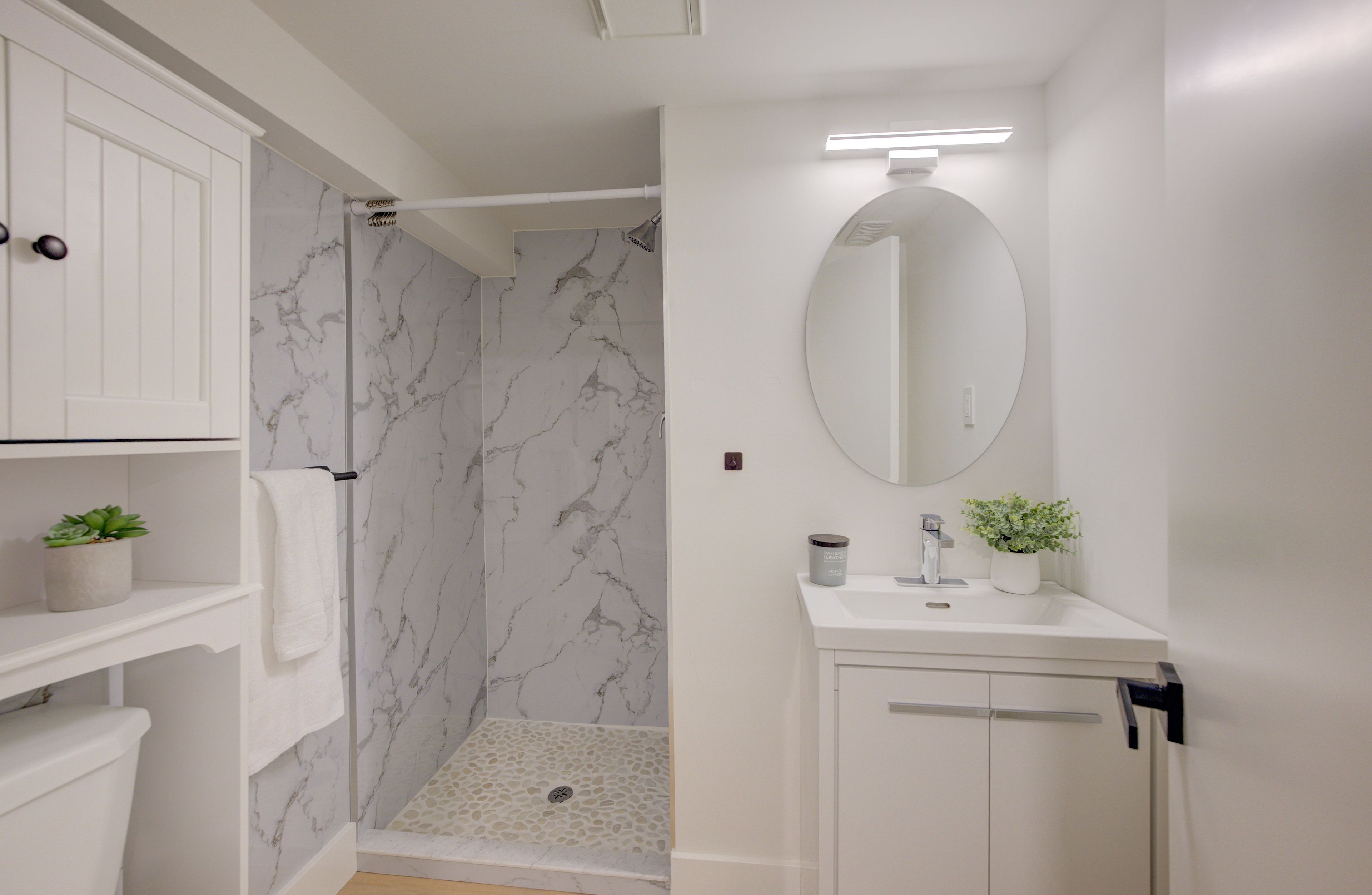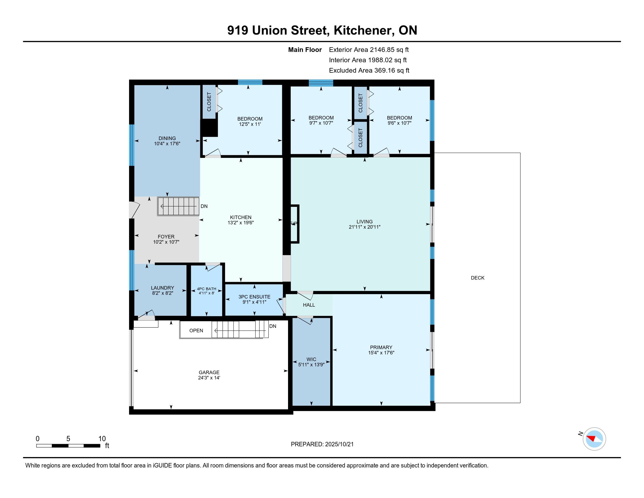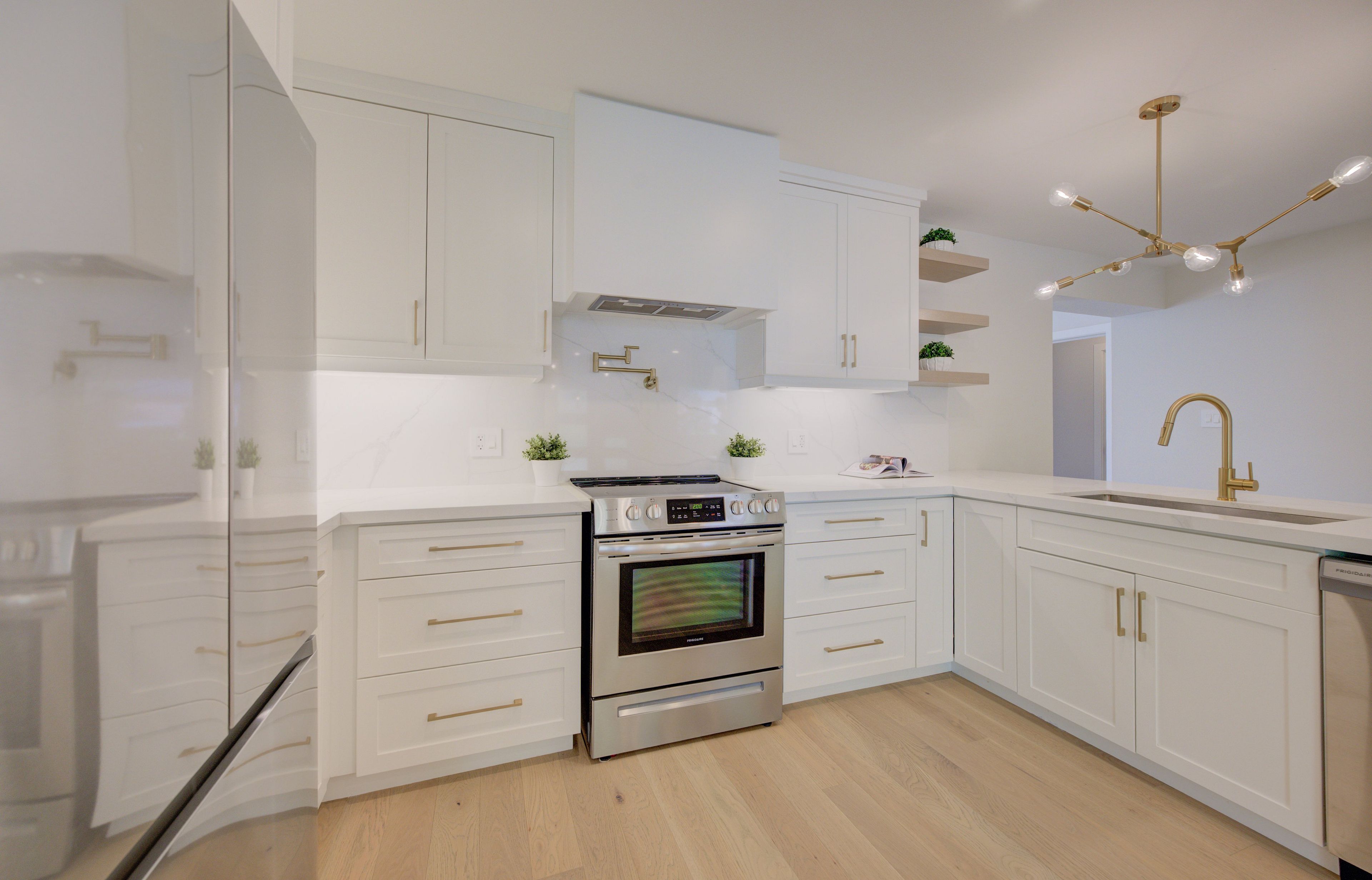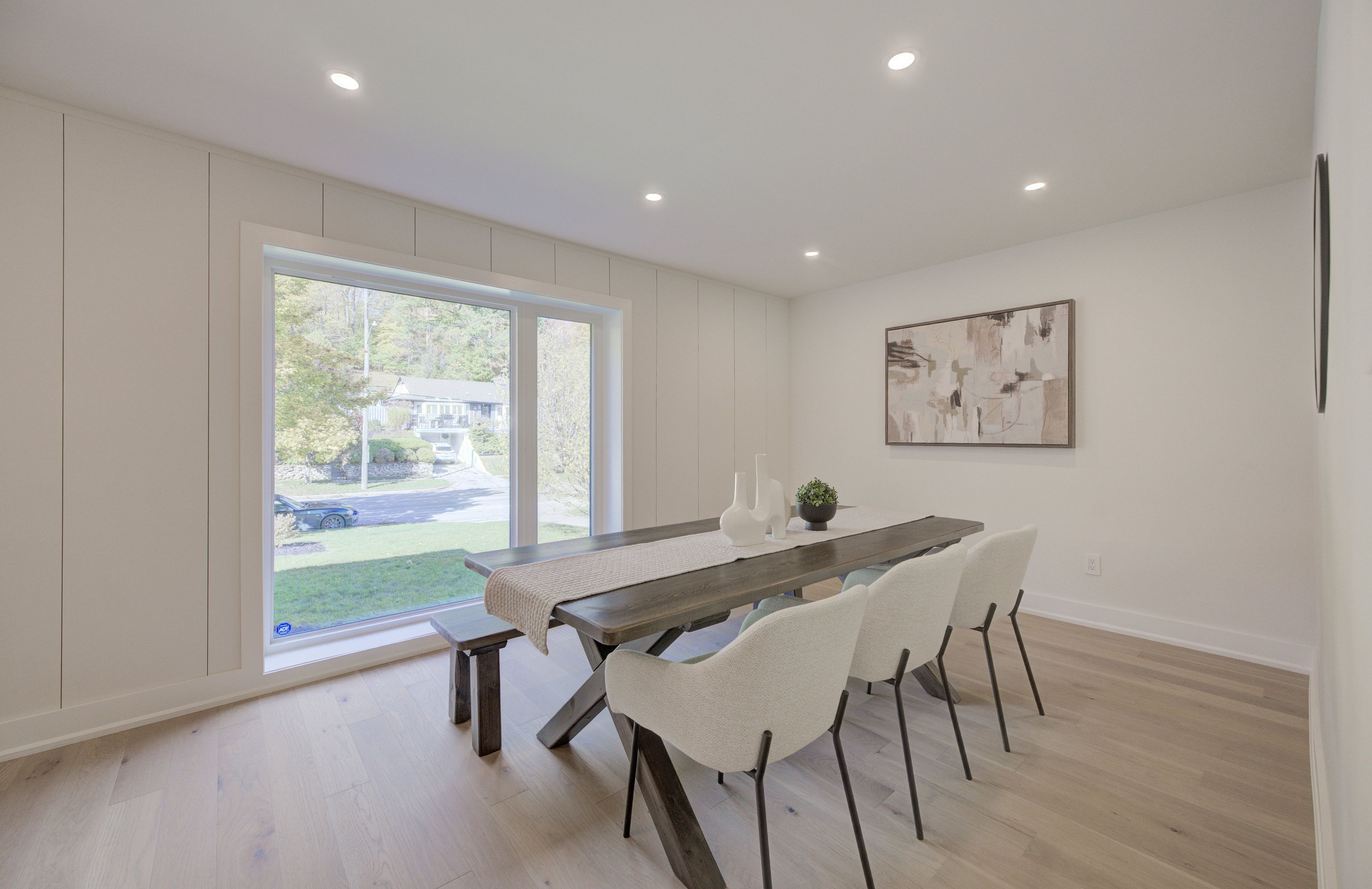 Welcome to 919 union street, a stunning, fully renovated luxury bungalow in the heart of kitchener. Set on a generous 60x135 ft lot, this 4-bedroom, 3-bathroom home offers over 2,140 sq ft of beautifully finished living space, thoughtfully designed for comfort, elegance, and function. Inside, light oak flooring sets a warm, contemporary tone throughout. The custom barzotti kitchen is a showpiece, featuring quartz waterfall countertops, a full slab backsplash, designer brass fixtures, and timeless cabinetry. The open-concept layout flows seamlessly into the dining and living areas, creating a welcoming and functional space for daily life or entertaining. At the rear of the home, a breathtaking living room steals the spotlight with its 12-foot vaulted ceiling and floor-to-ceiling windows, perfectly positioned to capture serene morning sunrises and private backyard views. A modern glass staircase leads to the finished lower level, where a spacious rec room, second laundry room, and generous storage areas offer exceptional versatility for everyday living. The elevated design continues below grade, with the same attention to detail and quality finishes found throughout the home. Step outside to find a brand-new deck and a fully enclosed backyard oasis with no rear neighbours, offering privacy and a peaceful retreat. Located steps from scenic walking trails and just minutes from major highway access, 919 union street is not just a home, it's a lifestyle. Renovated top to bottom and truly move-in ready, this is kitchener real estate at its finest.