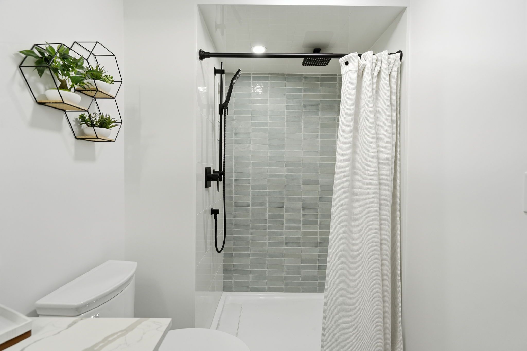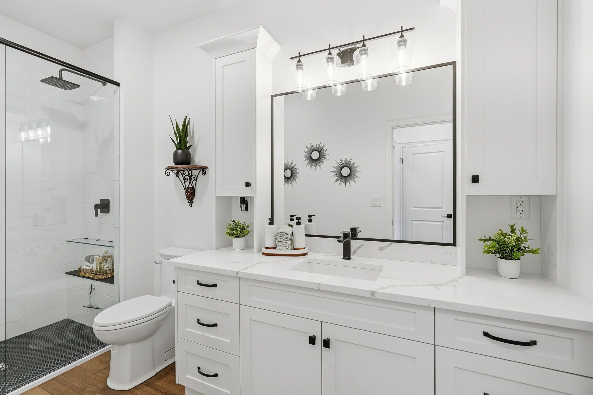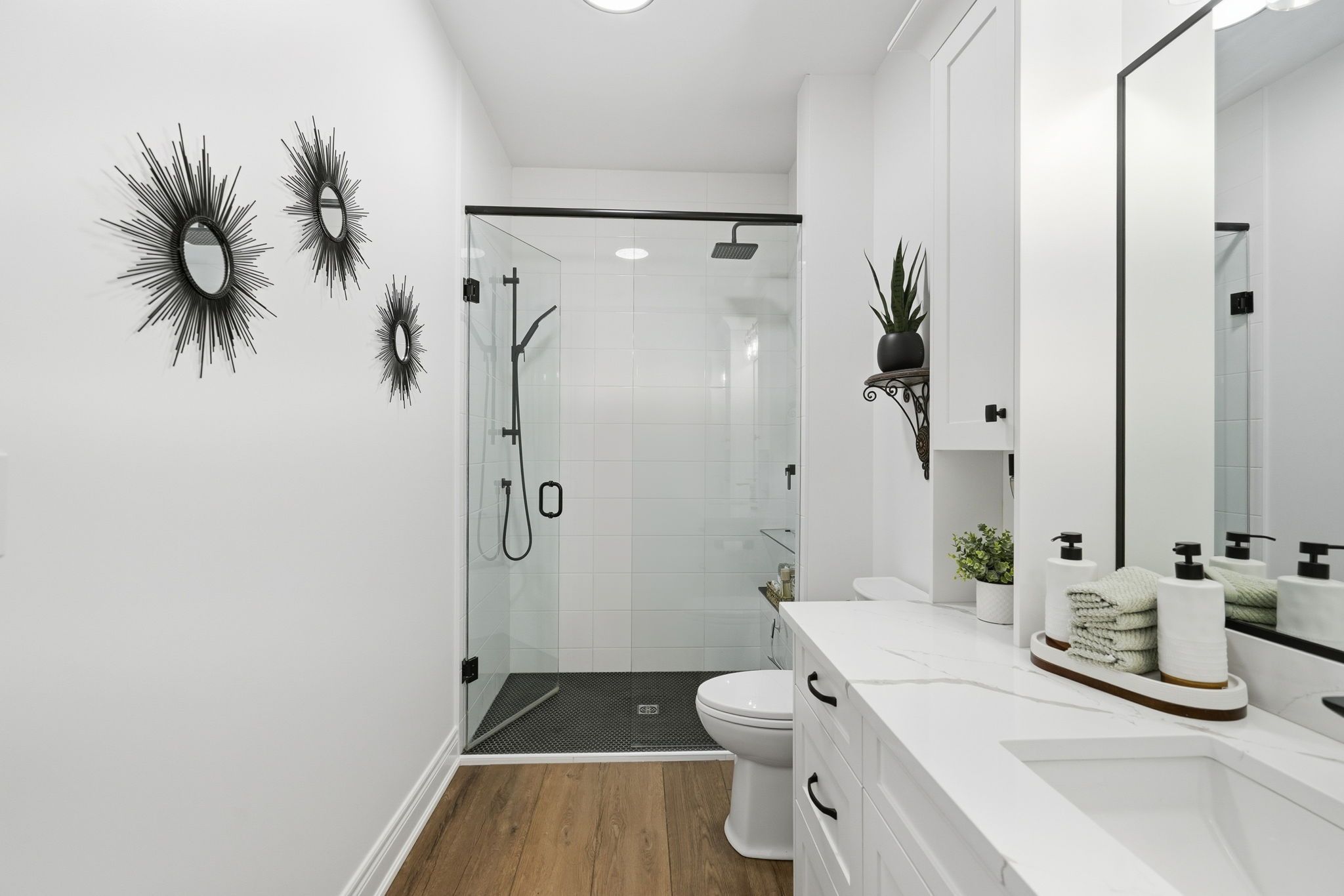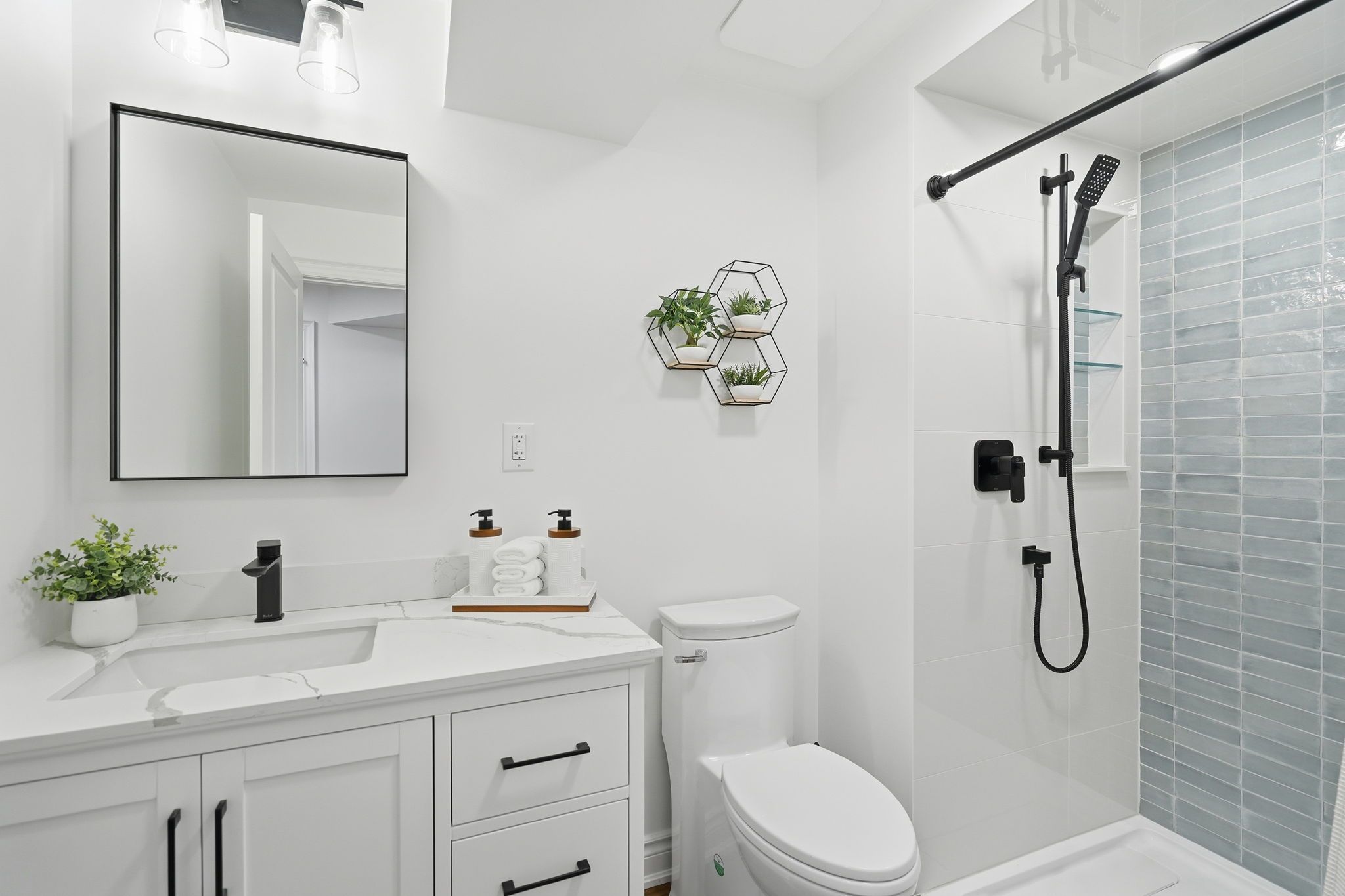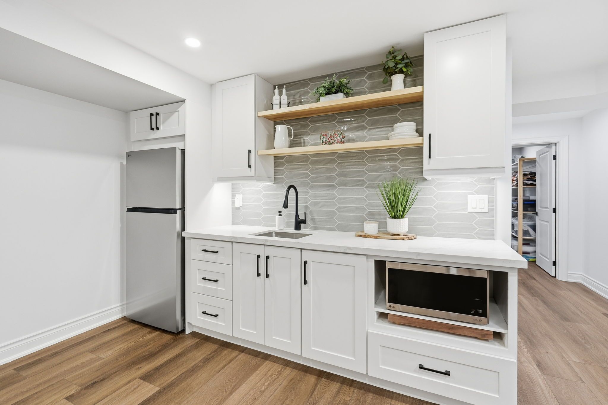 • Modern kitchen with Bosch appliances and quartz countertops.
