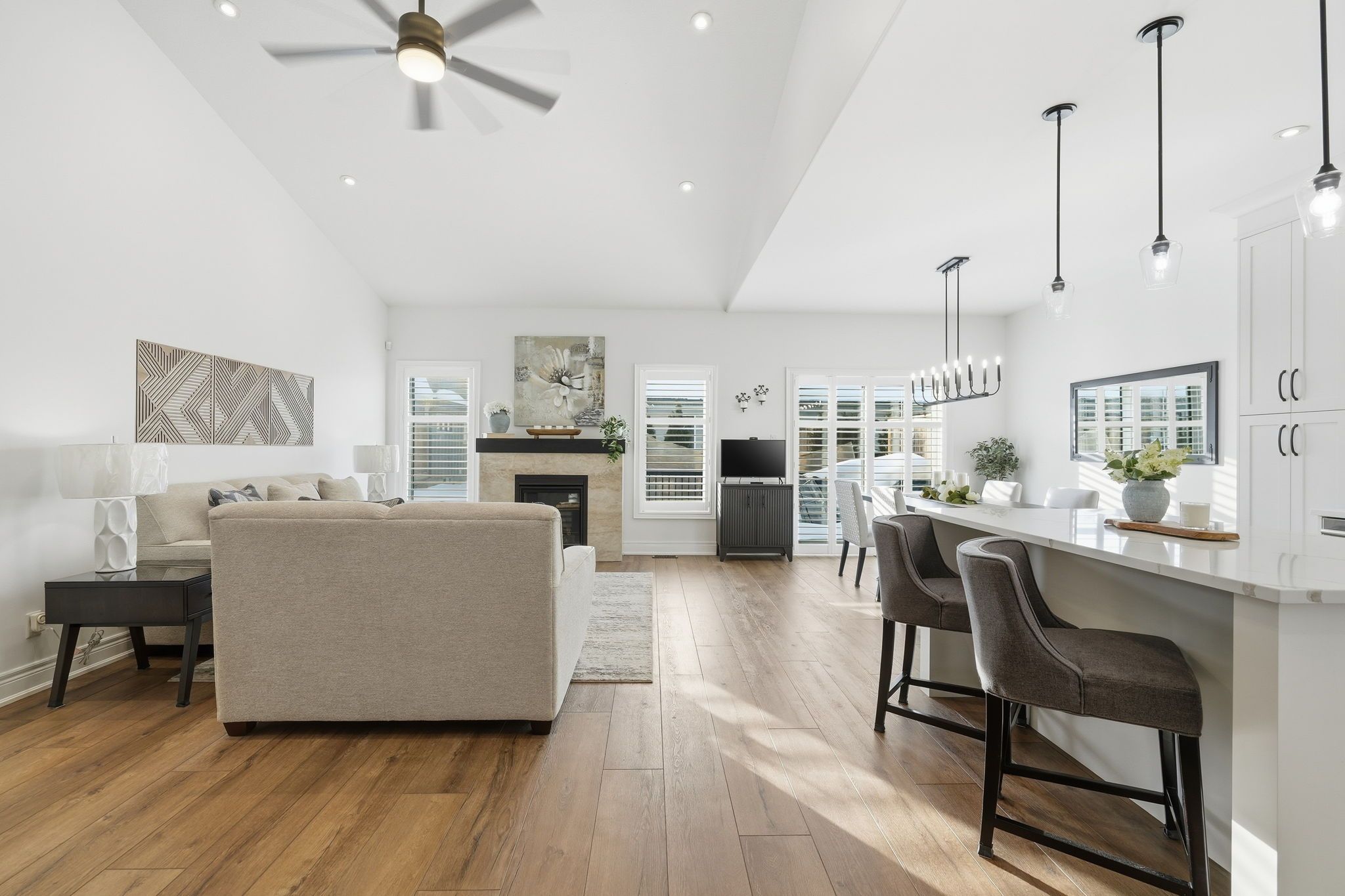 • Bright open-concept main level with 12-foot vaulted ceilings.