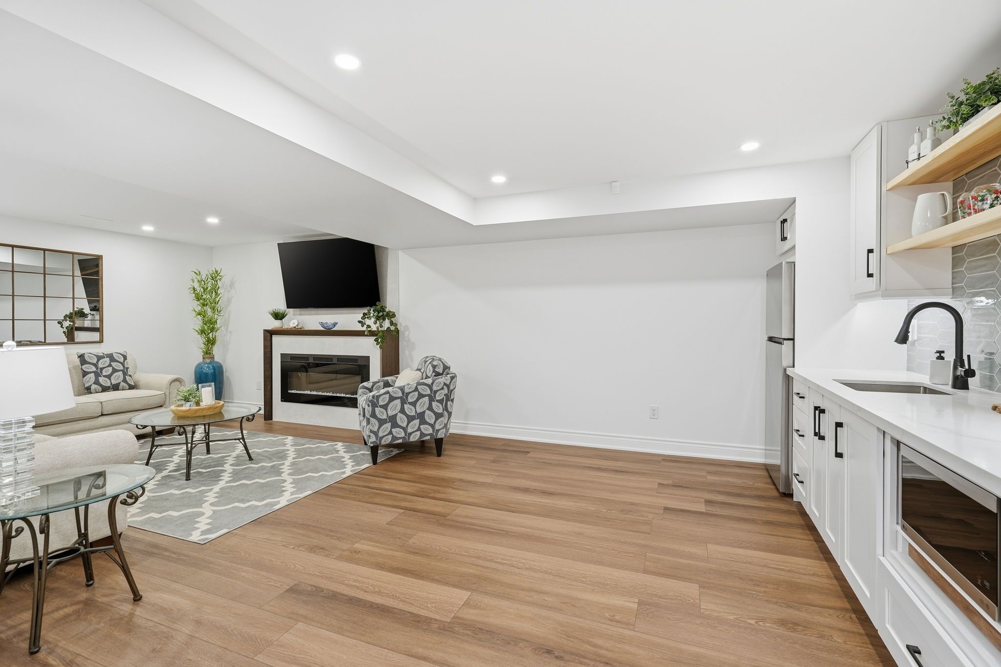 • Fully finished basement with kitchenette and two spacious bedrooms.