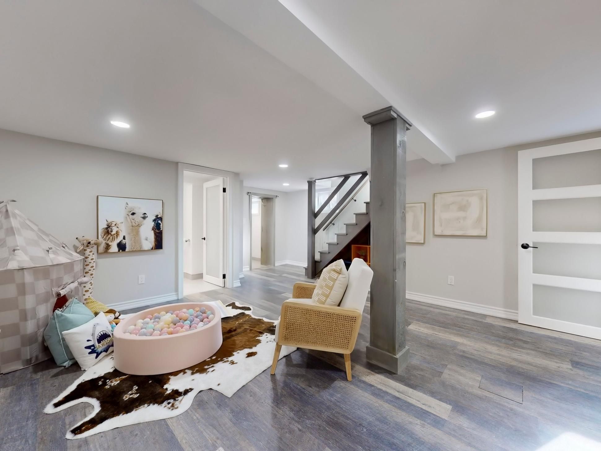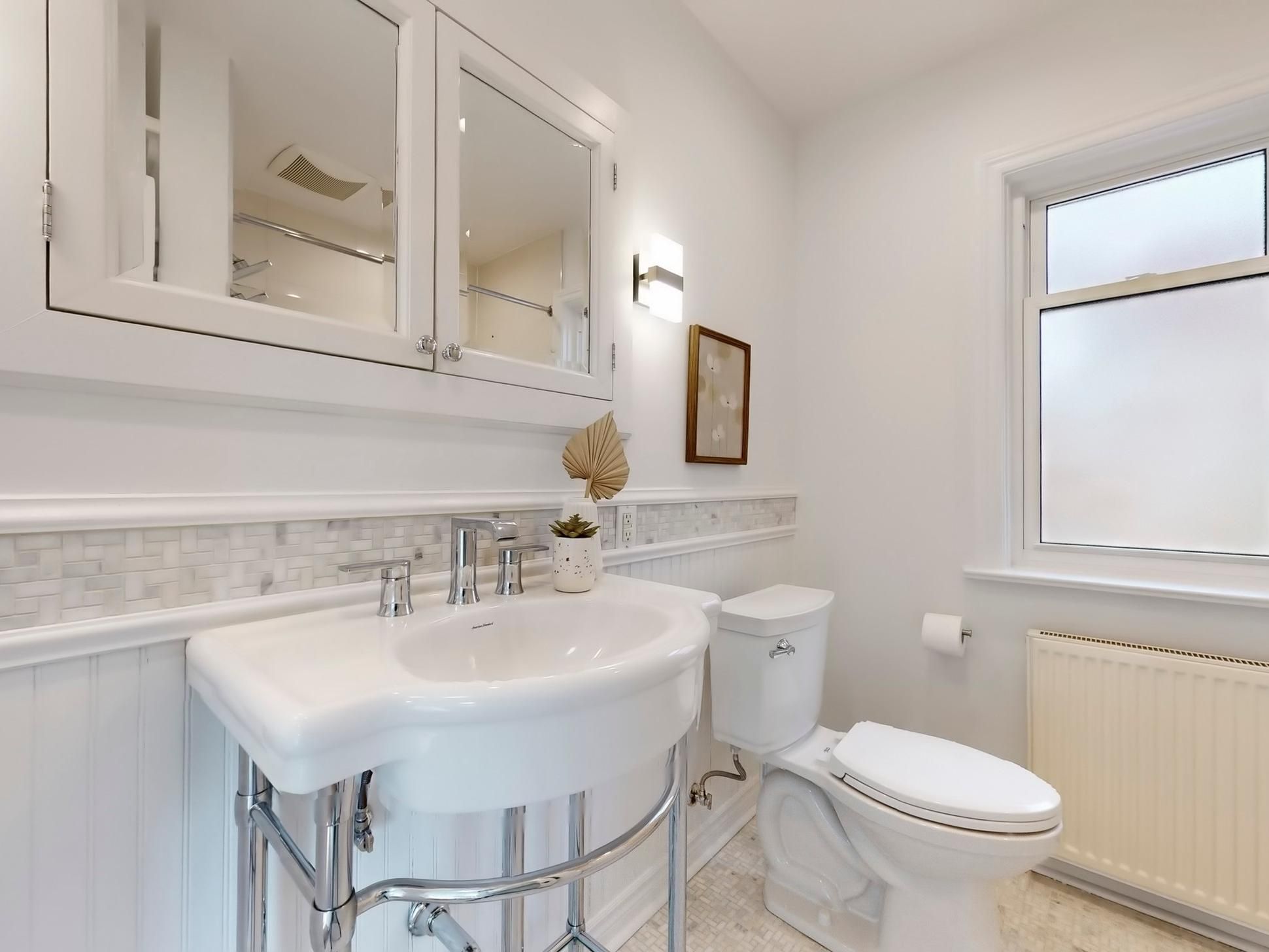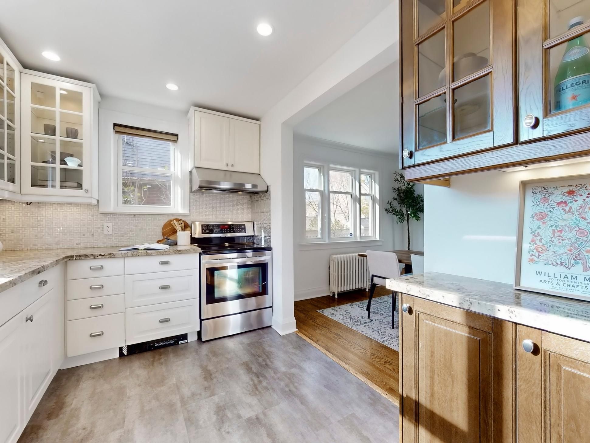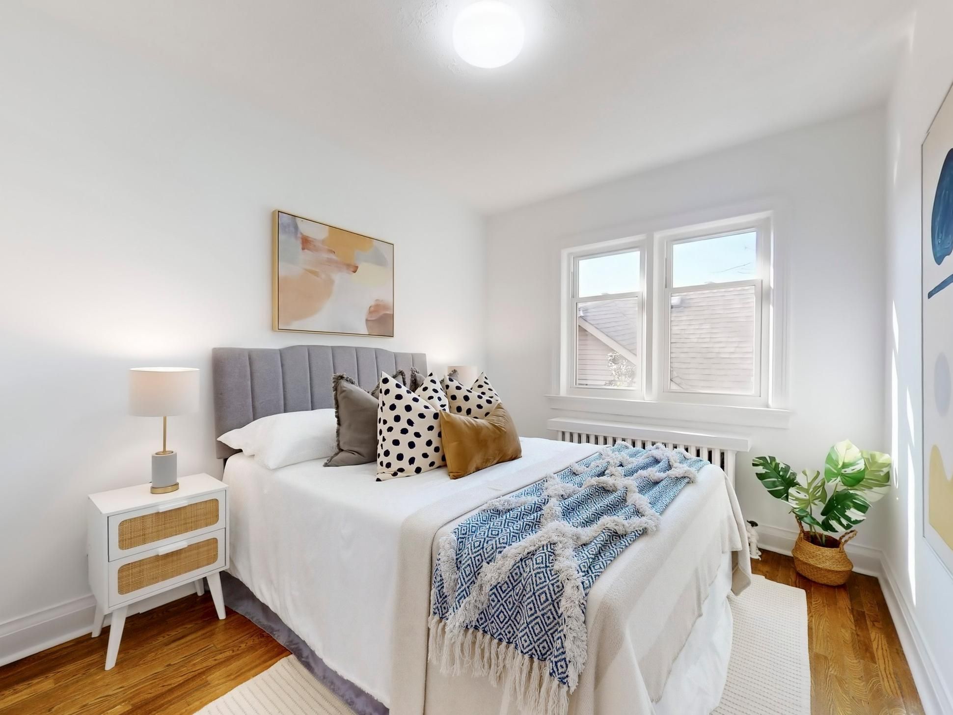 Welcome to this beautifully renovated and meticulously maintained home in one of the best neighbourhoods along the lake. Winding streets, classic homes and mature trees, and a short walk from both waterfront parks and the retail and transit on lake shore blvd. This three bedroom, two bathroom traditional home has been tastefully renovated to enhance its charm and maximize functionality. Both bathrooms and the kitchen were completely renovated. The basement has been finished to include an open-plan family recreation room as well as a second bathroom, pantry, laundry and storage areas. An open stair and side door allow for easy communication between kitchen and family room, as well as direct garden access. The garden itself is unbelievable! A fenced and landscaped oasis of lush planting, pathways and patio areas, perfect for entertaining or quiet relaxation. The detached garage (12' x 20' inside) has been electrified and includes french doors and sonos speakers. Whether for your car, your friends or just yourself, it's ideal extra space. The current owners have loved & cared for this house since 2001. Updates include: " water main; rear & bsmt windows 2007; front & side windows 2023; kitchen & 2nd fl bath renovation 2009; high capacity range hood; wiring replaced 2009; boiler replaced 2011; bsmt bathroom renovation 2017; bsmt insulated with roxul to party wall and ceiling, spray-foam to exterior walls; original attic insulation removed and replaced with blown-in insulation in 2017 by george kent roofing; roof, soffit & eavestroughs on house & garage replaced in 2012; garage reclad and french doors added 2016; front & side entry doors replaced 2017; water tank (owned) replaced 2017; rear fence 2024; side fence 2009; mitsubishi mr slim ductless air conditioner 2012. A home inspection was completed 19 november 2025 and is available for your review. Laneway housing advisors has confirmed that a substantial garden suite is possible.