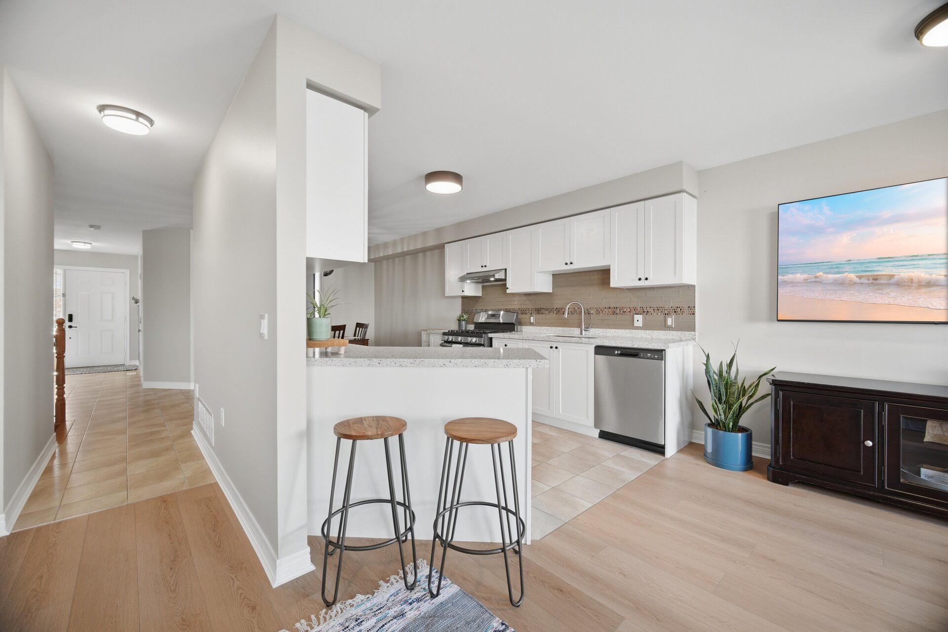 • Stylish new flooring and quartz countertops for modern appeal.