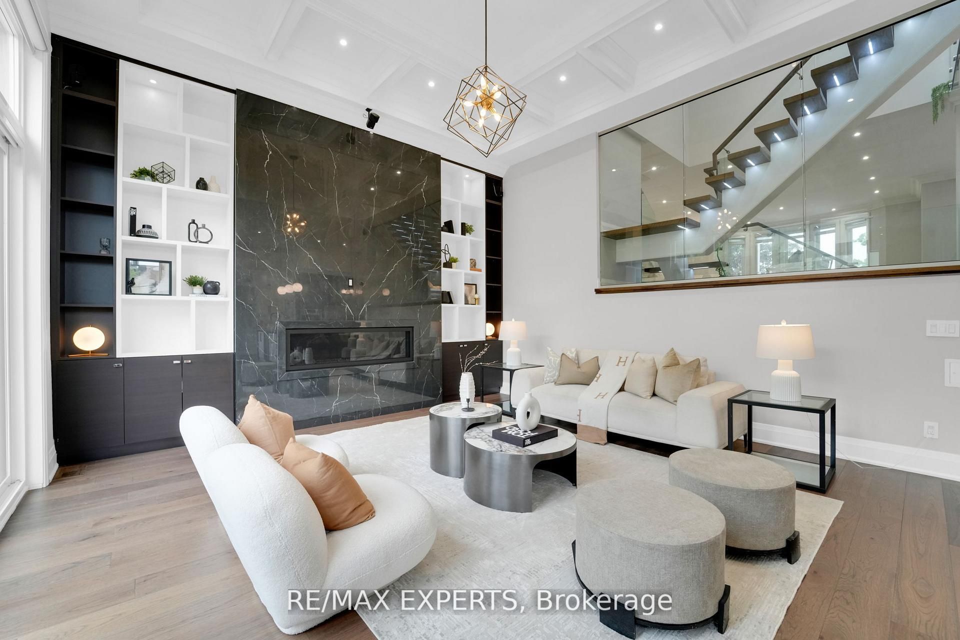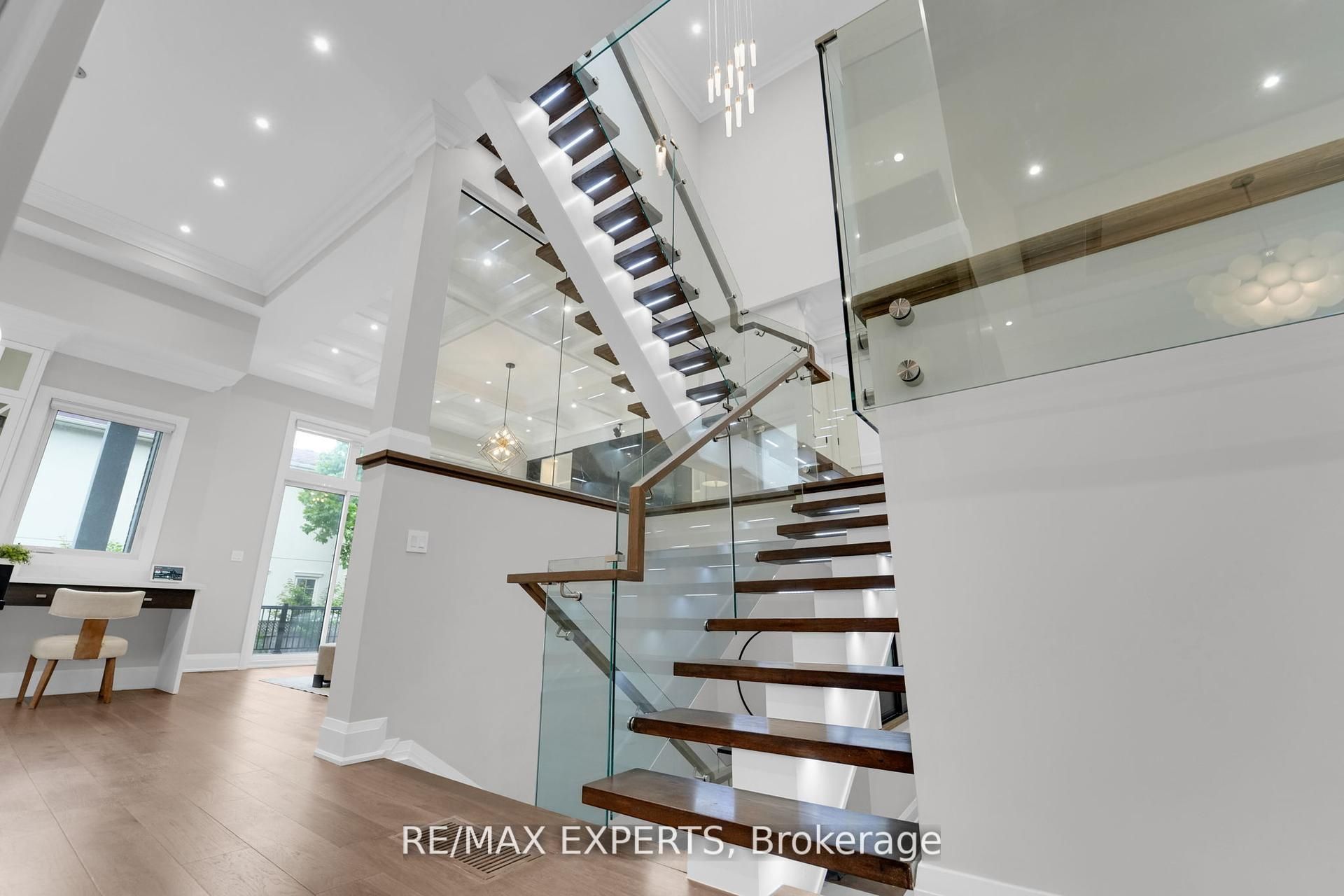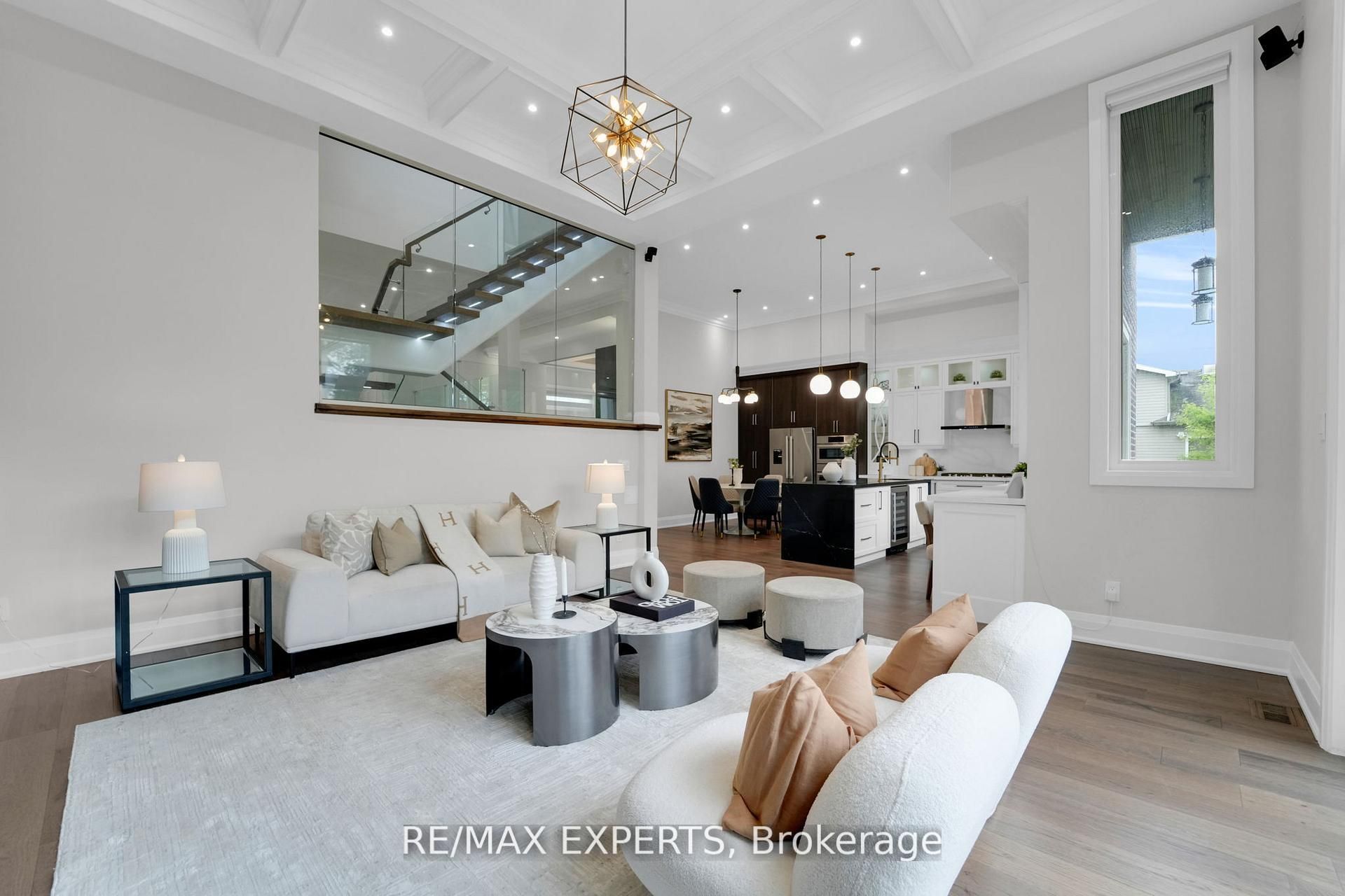 Welcome to this custom-built, luxurious home where elegance meets everyday comfort. Designed to impress, this bright and spacious home features an open-concept layout with soaring 13 and14-foot ceilings on the main floor and 9-foot ceilings upstairs. The upper level boasts 4spacious bedrooms-each with its own private terrace-and a convenient laundry room. Thoughtful details include coffered ceilings in the living room, heated floors in the upper-level bathrooms, and sleek epoxy flooring in the garage. The separate entrance leads to a beautifully finished 2-bedroom basement apartment with its own laundry and kitchen-ideal for extended family or rental income. Step into your private backyard oasis, perfect for entertaining or relaxing in style. Unbeatable location just off yonge street, close to shops, restaurants, groceries, subway, movie theatre, and a short drive to hwy 401. This is truly adream home for families seeking style, space, and convenience.