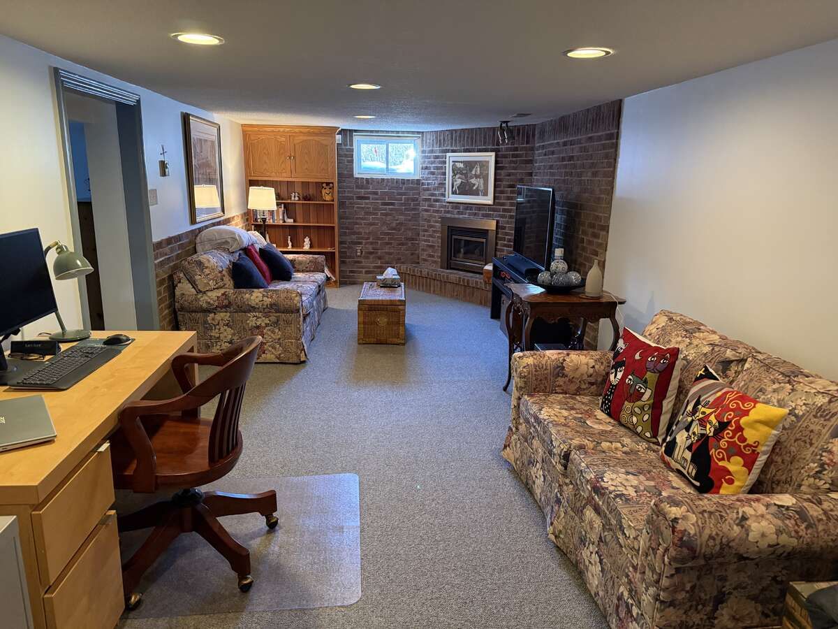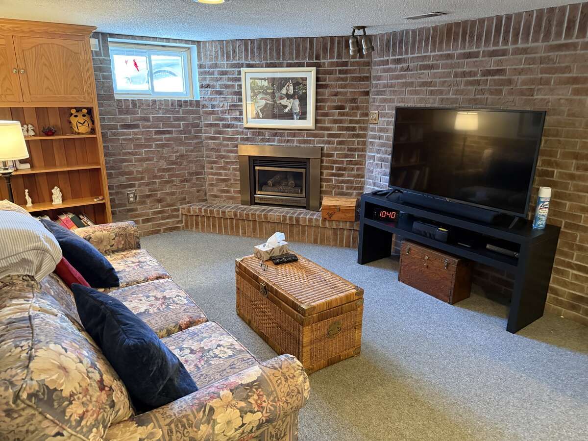 • Separate accommodations downstairs with a cozy fireplace for guests.