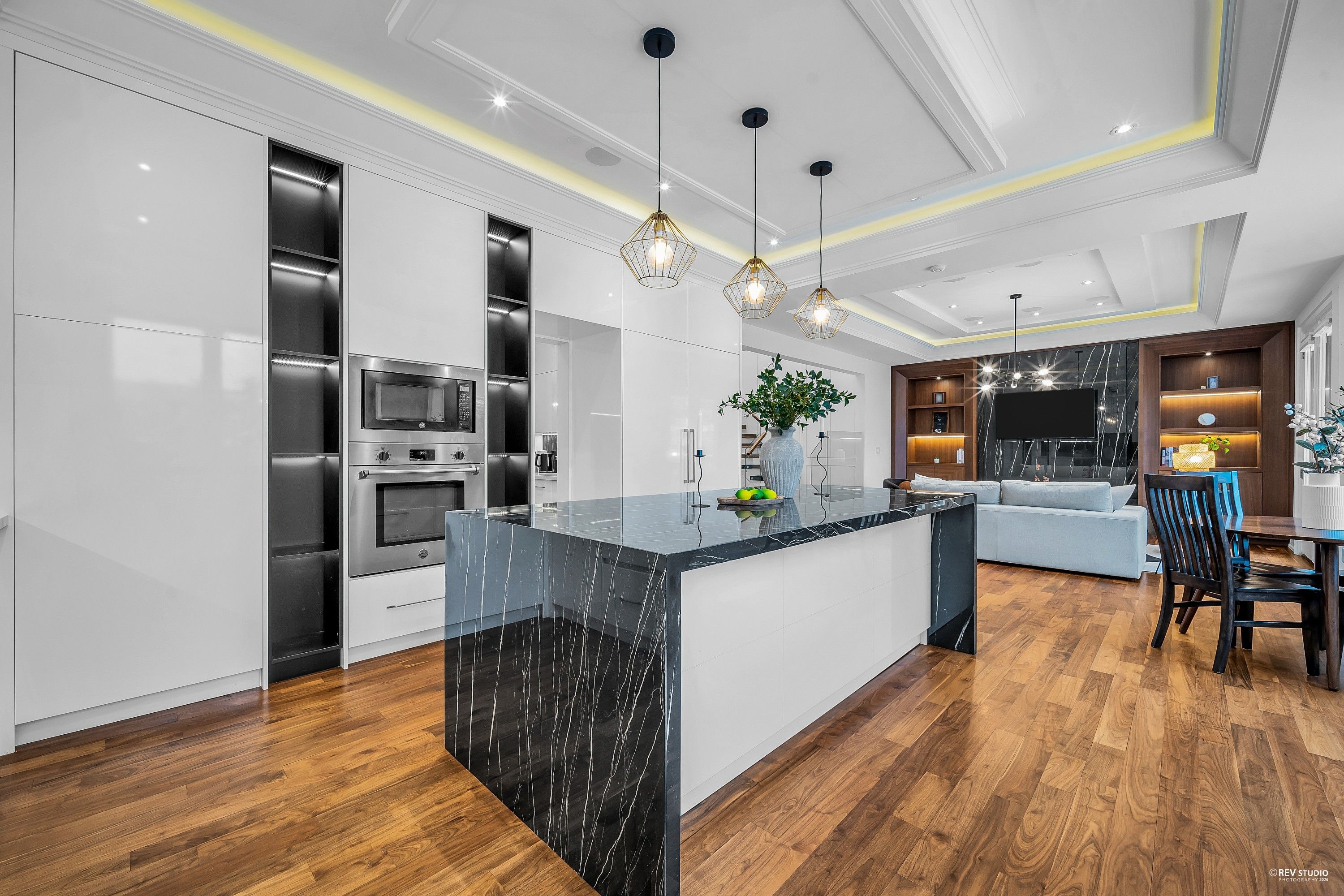 • Gourmet kitchen equipped with premium built-in appliances and quartz countertops.
