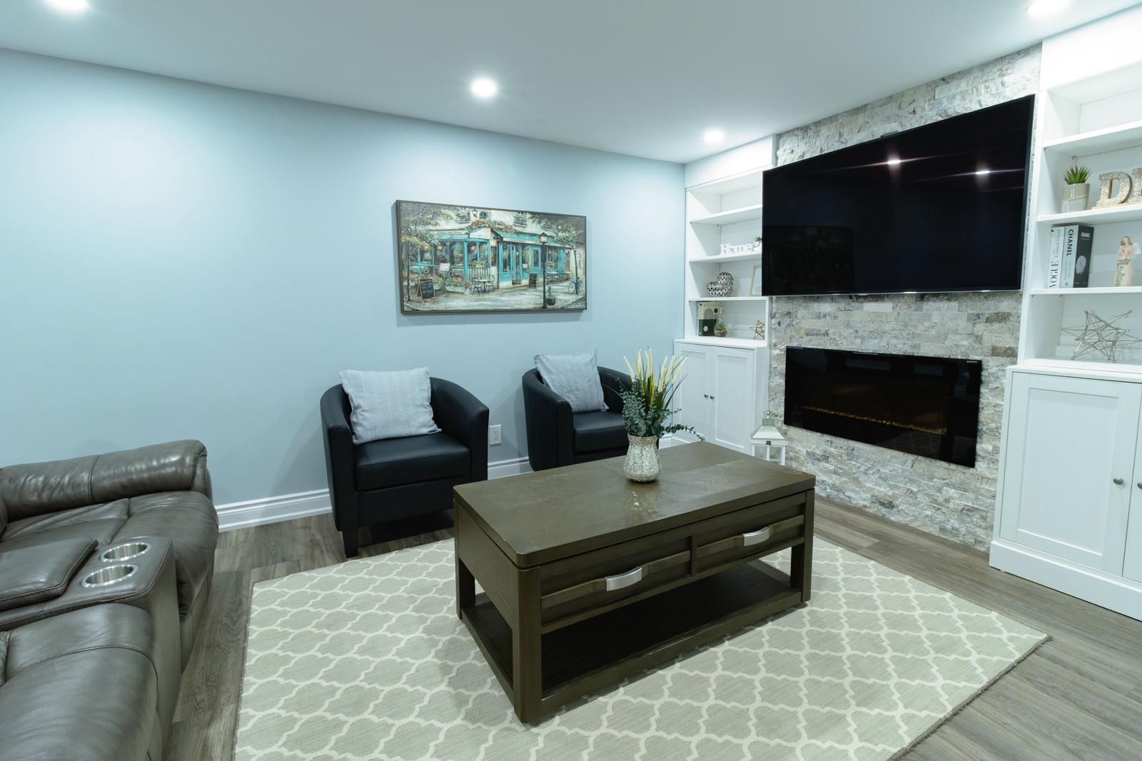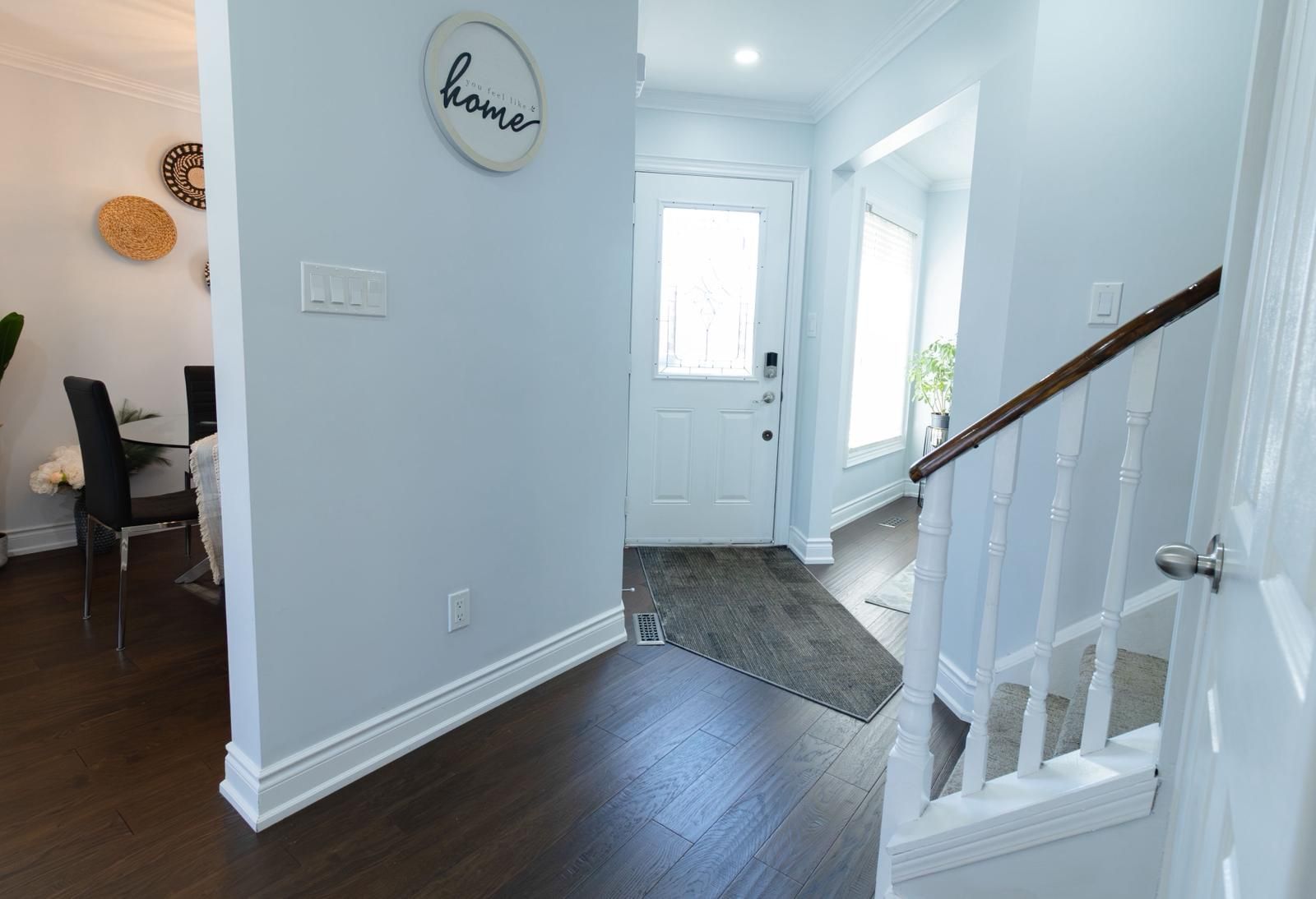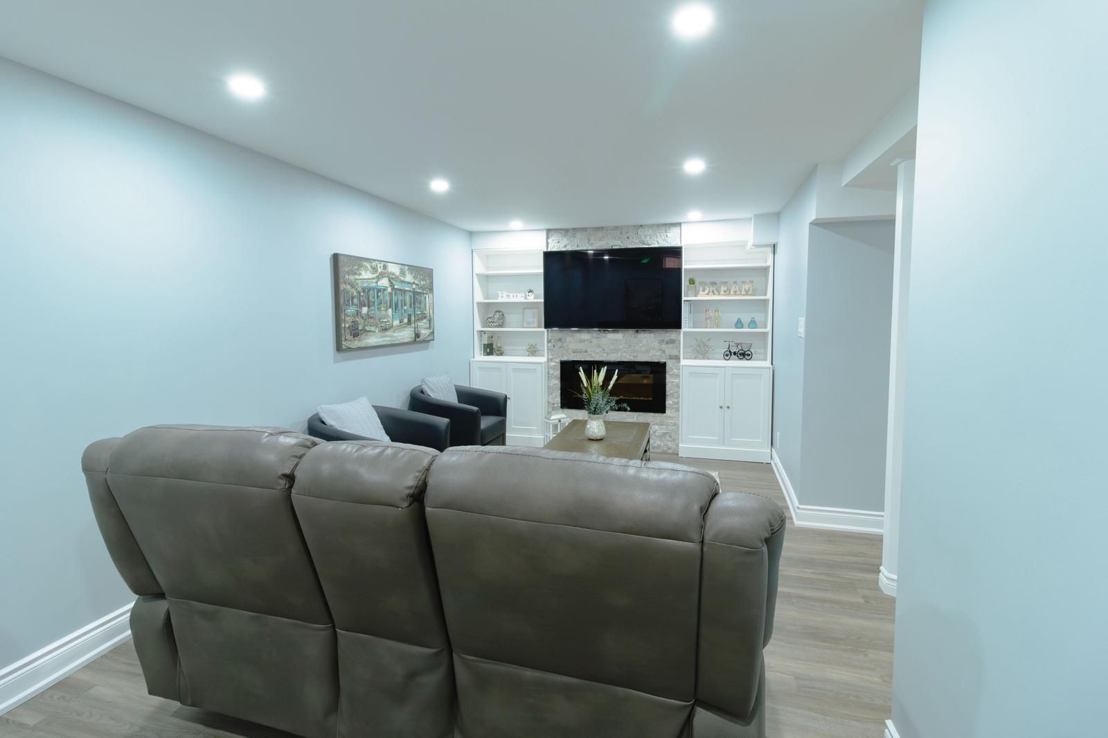 Offer any time!!! Welcome to amazing home for sale 3+1 bedrooms and 4 bathrooms. This meticulously maintained home is move-in ready the custom kitchen boasts quartz counters, a large island, stainless steel appliances, and custom cabinetry. Flooring enhances both the main and second floors. The primary bedroom features a newly built ensuite washroom that comes with a glass shower door and a modern shower. The finished basement includes an electric fireplace and a potential separate entrance to the basement, a feature wall with built-in shelves, and ample space for relaxation. Home is equipped with security system cameras and a touchpad key lock. Step outside to enjoy a private backyard with a deck, shed, and gas bbq hookup. Driveway: with no sidewalk, the driveway accommodates parking for 4 cars. Walking distance to transit /plaza. Located in an aaa-rated school area, 5 minutes to hwy 401 !!!! 4 public & 4 catholic schools serve this home. Of these, 8 have catchments. There are 2 private schools nearby. 8 sports fields, 5 basketball courts and 7 other facilities are within a 20-minute walk of this home. Street transit stop less than a 1 min walk away. Rail transit stop less than 6 km away.