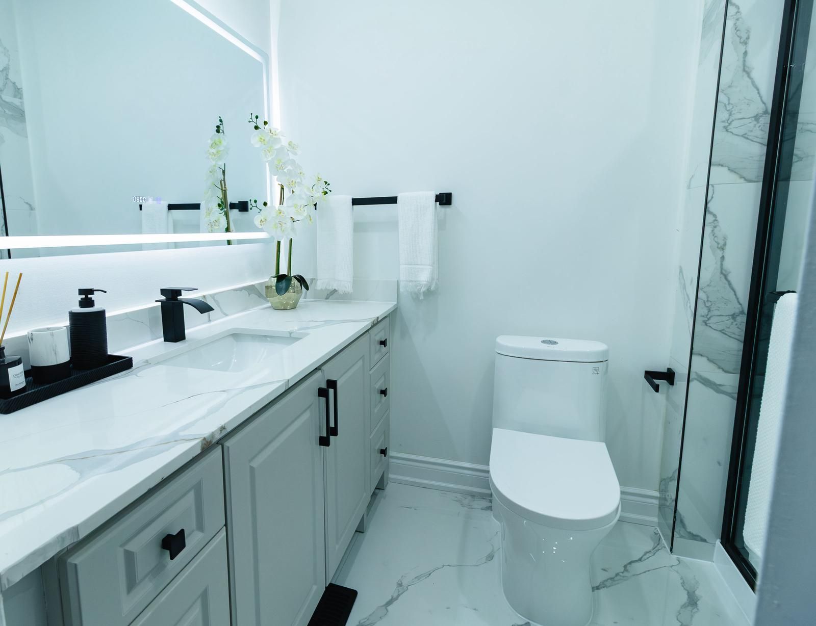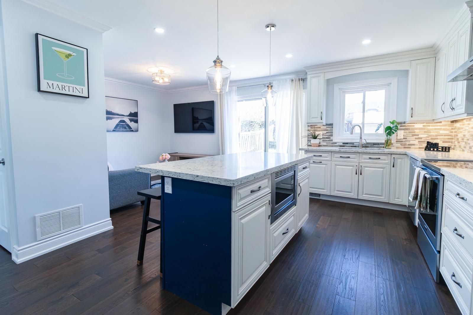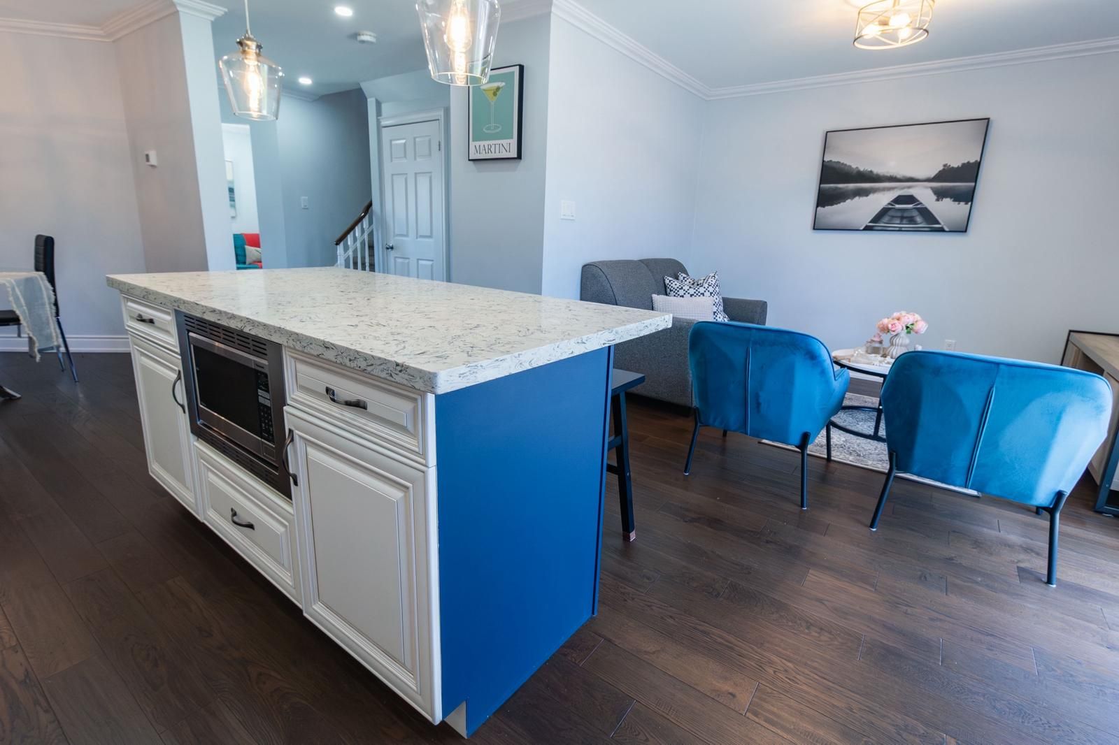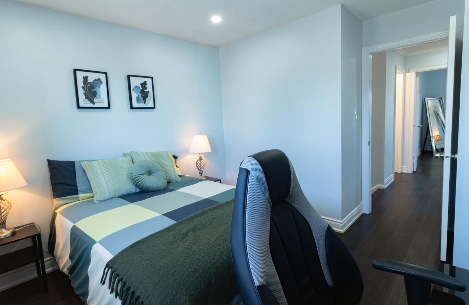 Offer any time!!! Welcome to amazing home for sale 3+1 bedrooms and 4 bathrooms. This meticulously maintained home is move-in ready the custom kitchen boasts quartz counters, a large island, stainless steel appliances, and custom cabinetry. Flooring enhances both the main and second floors. The primary bedroom features a newly built ensuite washroom that comes with a glass shower door and a modern shower. The finished basement includes an electric fireplace and a potential separate entrance to the basement, a feature wall with built-in shelves, and ample space for relaxation. Home is equipped with security system cameras and a touchpad key lock. Step outside to enjoy a private backyard with a deck, shed, and gas bbq hookup. Driveway: with no sidewalk, the driveway accommodates parking for 4 cars. Walking distance to transit /plaza. Located in an aaa-rated school area, 5 minutes to hwy 401 !!!! 4 public & 4 catholic schools serve this home. Of these, 8 have catchments. There are 2 private schools nearby. 8 sports fields, 5 basketball courts and 7 other facilities are within a 20-minute walk of this home. Street transit stop less than a 1 min walk away. Rail transit stop less than 6 km away.