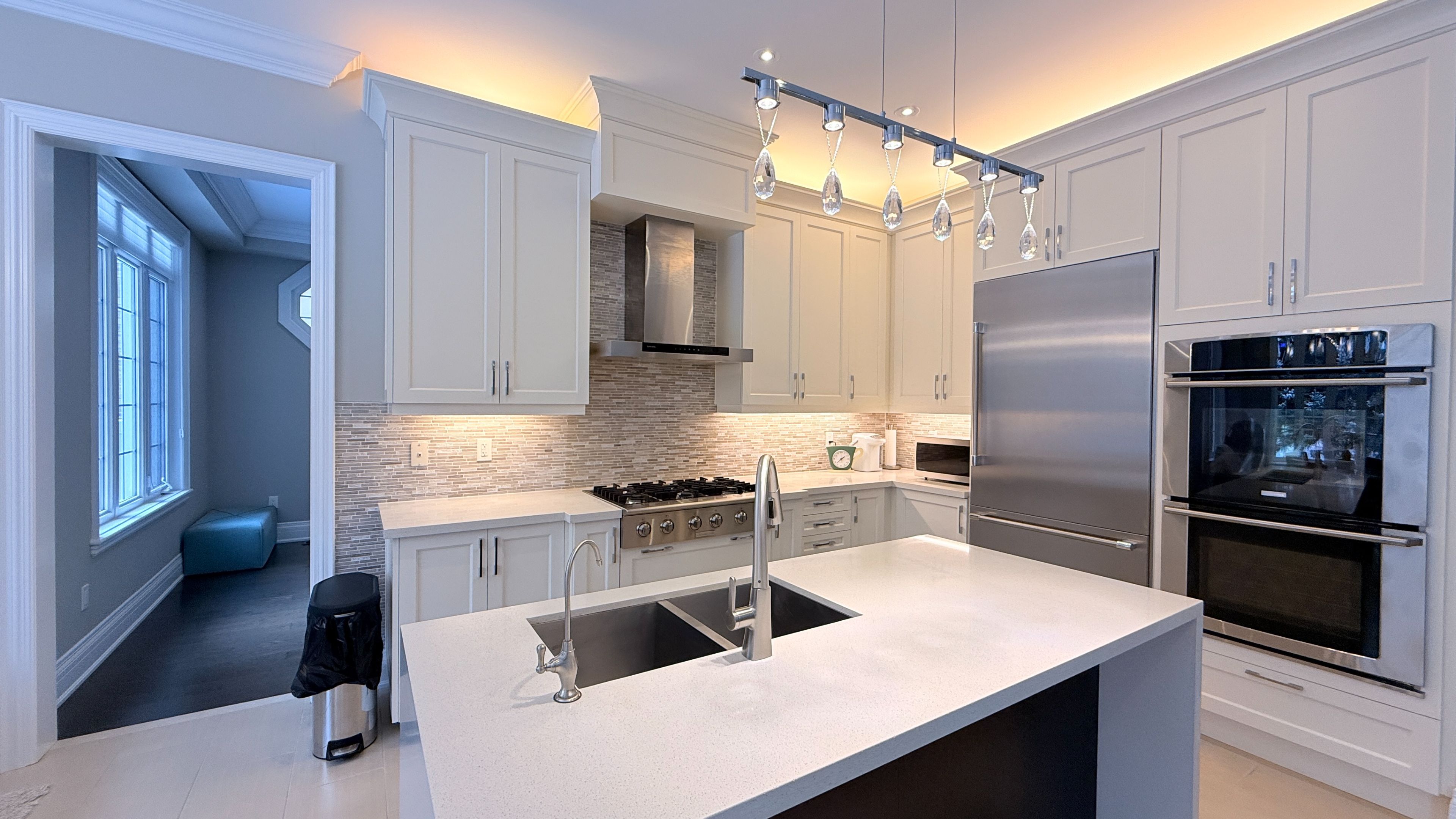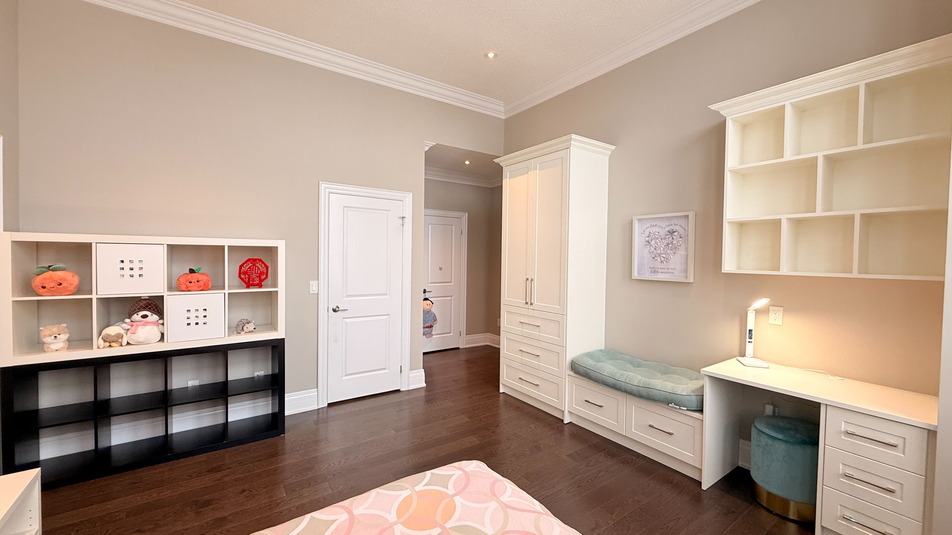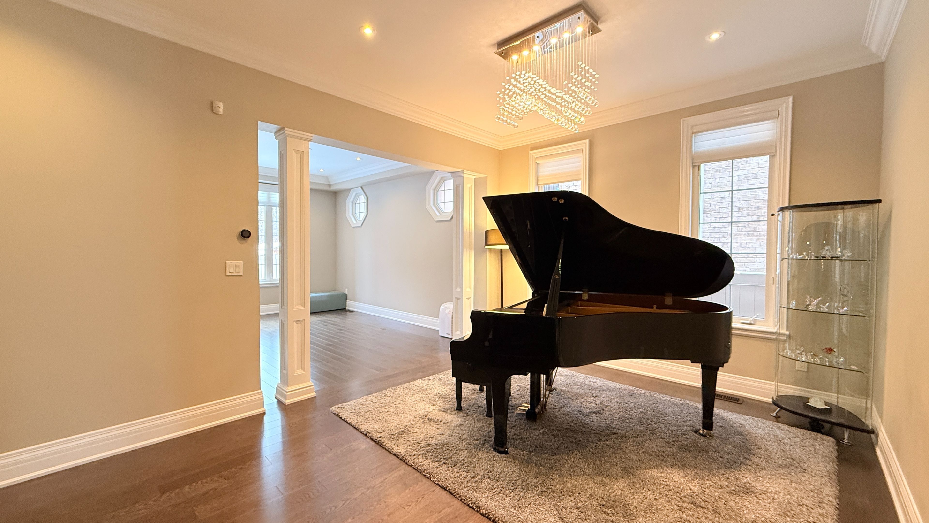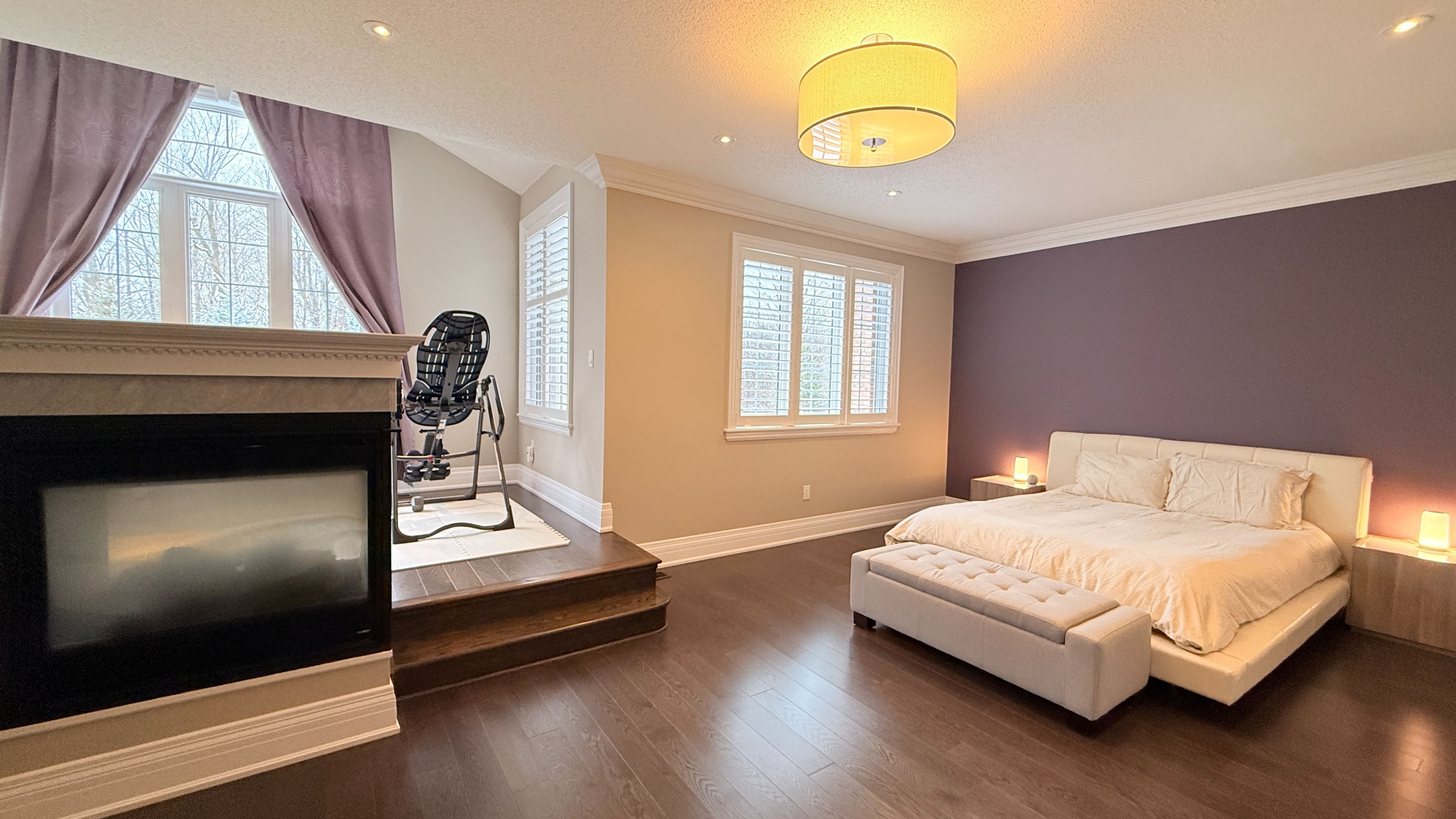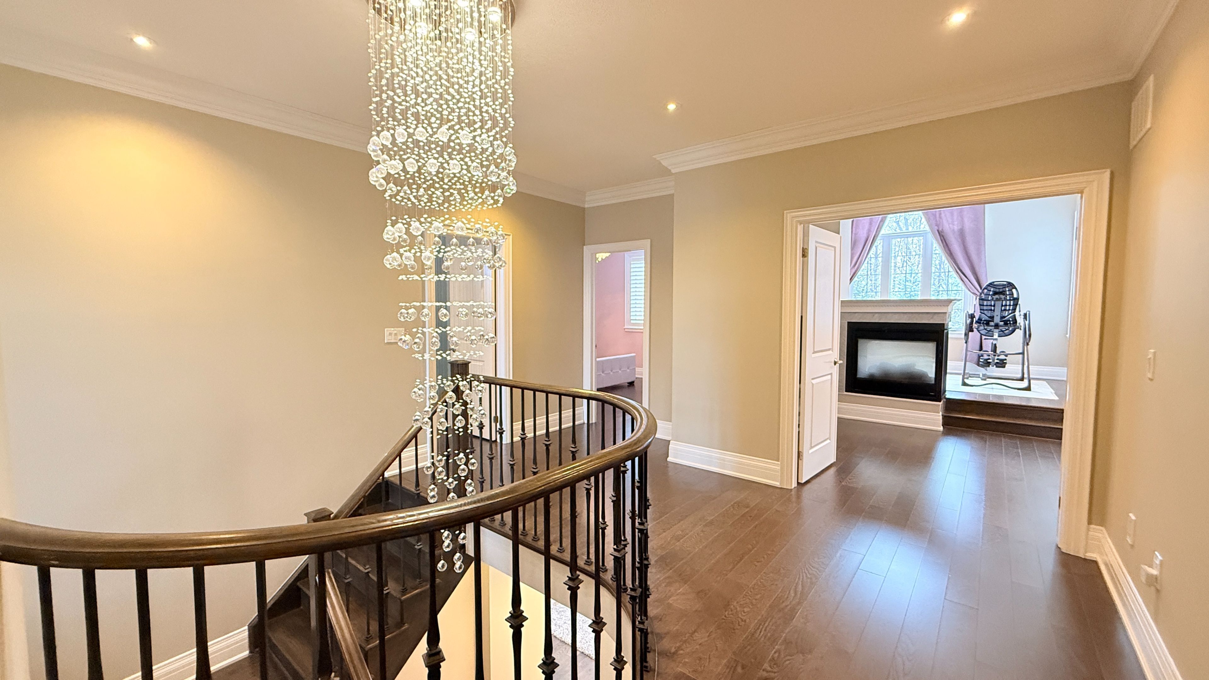 Stunning luxury home in upper thornhill estates! This 5+2 bedroom, 6-bath residence sits on a 50ft120ft premium lot backing onto a serene conservation area, providing unobstructed private ravine views through expansive windows. Nestled on a quiet crescent surrounded by ponds and trails, it's steps to top schools, parks, shops, go transit, golf courses, and major highways. Zoned for st. Thereseoflisieuxcatholich. S., ranked #1 in ontario. Offering over 5,450sqft of total living space (3,760sqft above grade), the home features 10ft ceilings on the main level, extended doors and windows, and 9ft ceilings upstairs. The grand foyer opens with a custom 42" woodgrain fiberglass entry door accented by wrought iron. The gourmet kitchen showcases thermador and electrolux built-in appliances, custom cabinetry, a quartz waterfall island, and under-cabinet lighting. Additional features include a main floor office, hardwood flooring throughout, smooth ceilings, hunterdouglas silhouette shades on the main level, and vinyl shutters upstairs. Premium finishes include elegant lighting, led pot lights, crystal chandeliers, crown moulding, and one-piece toto toilets. The primary suite offers a spa-inspired 6-piece ensuite, three-sided fireplace, a wellness den with ravine views, and his-and-hers walk-in closets. The professionally finished basement (2017) is perfect for entertaining with a home theatre featuring a 120" projector screen and sound system, wet bar, games area, gym or 7th bedroom enclosed by glass, a guest bedroom, built-in bookcase, and a 3-piece bath. A generous mudroom with garage access, custom built-ins, and large closets enhances everyday convenience. The professionally landscaped exterior includes a driveway with unilock courtstone pavers, a backyard with flagstone pavers, a pvc fence, rainbird wi-fi irrigation, and a designer garden bordered by six mature evergreens.