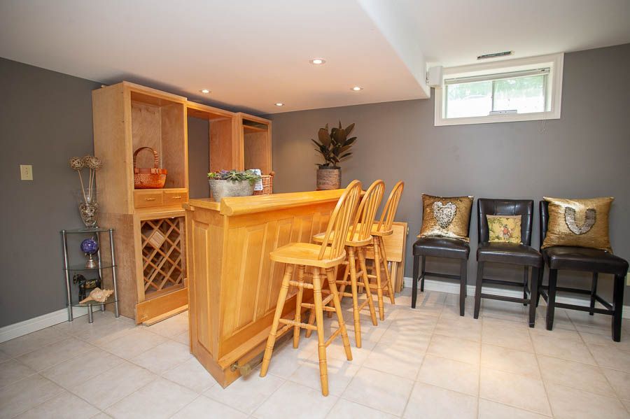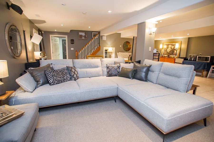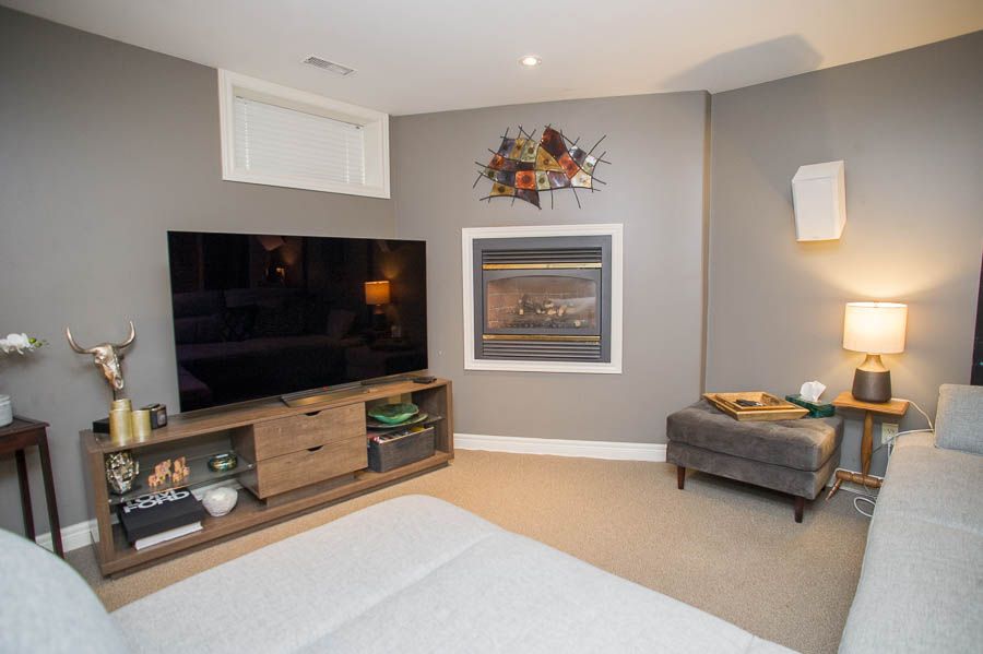 • Fully finished basement includes a recreation room, gym area, and storage.