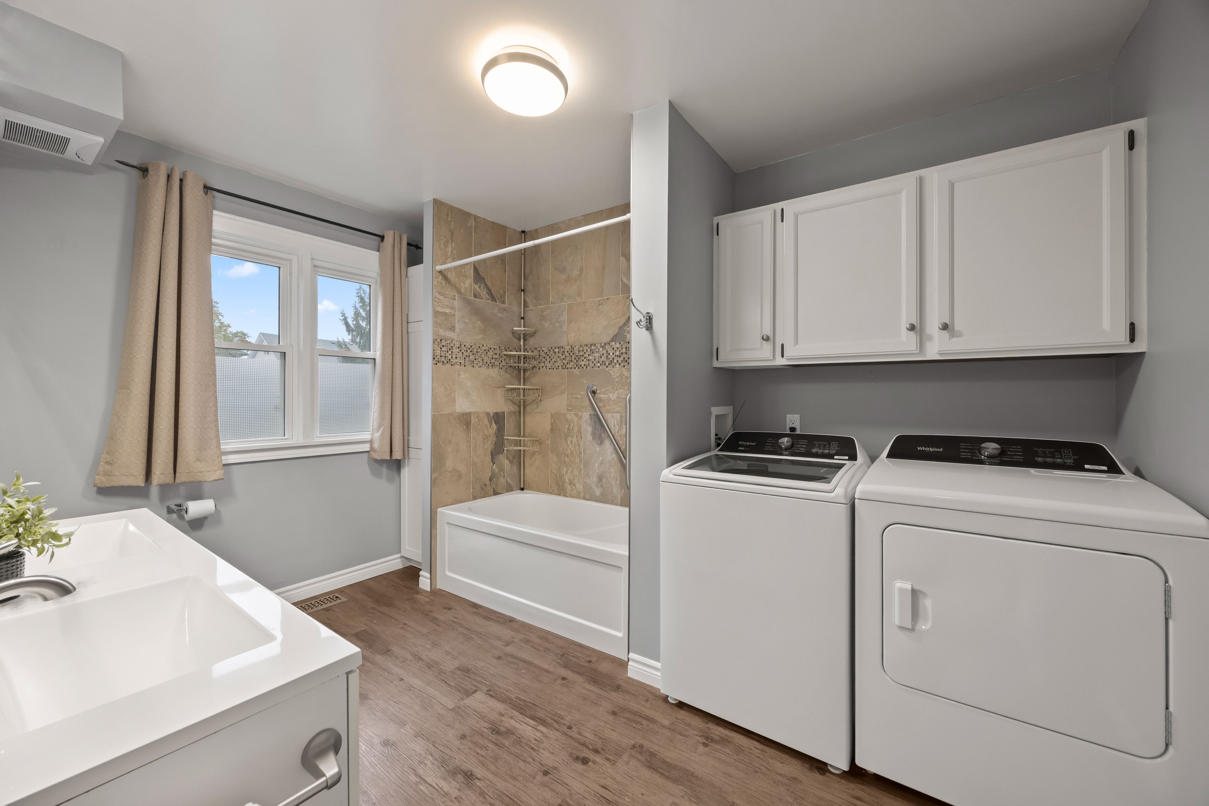 • Convenient main-floor laundry with included appliances for easy living.