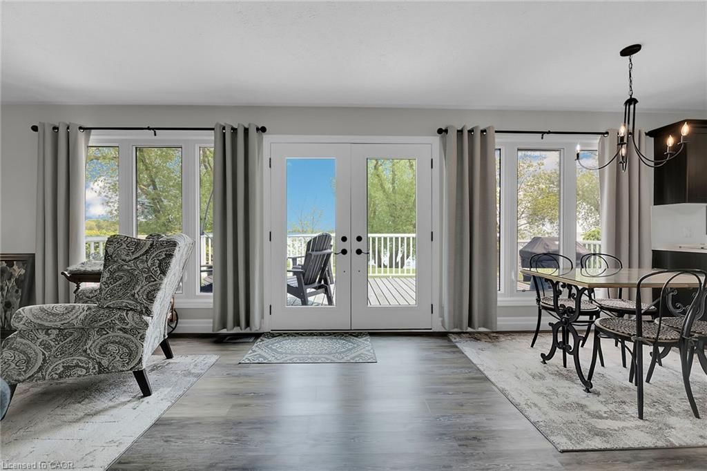 Lake erie living at it's finest! This year-round lake-house/cottage offers nearly 2000 sqft of living space with 3 bedrooms and a finished lower level. It is located on a premium acre waterfront lot on hoover's point lane, featuring panoramic views and a private beach with about 100 ft of sandy shoreline extending into the clear waters of lake erie. The house sits on high ground with a gradual slope to the beach, no break-wall needed. The property includes a paved driveway for 4 vehicles and an rv/boat, interlock brick walkways, privacy fenced yard, mature trees, manicured lawn, vibrant gardens, and extraordinary landscape. There is also an attached garage with inside entry and a detached boathouse/workshop. Inside, the custom kitchen has attractive cabinetry, elegant quartz countertops, and hi-end stainless steel appliances. The open concept dining and living room offer large windows with lake views and garden doors leading to a composite deck overlooking the lake offering stunning sunrises as you enjoy your morning coffee. The main floor includes a foyer with laundry and a dishwasher, a designer 4pc bathroom, primary and guest bedrooms, both with custom closets. The finished basement has a 3rd bedroom/home office, family room with gas fireplace, storage room, and utility room with shelving and plenty of storage space. Additional features include a metal roof, updated windows and exterior doors, luxury vinyl plank flooring, 200-amp hydro, central-air, hi-efficiency furnace, electronic air cleaner, full aerobic septic system, two 5000-gallon cisterns, and starlink hi-speed internet. Must view to appreciate the attention to detail, quality finishes, & amp; overall "feel" of this lovingly maintained home. Located minutes to selkirk, fisherville, and port dover, with a public boat launch about 1 km away. Convenient commutes to dunnville or cayuga, and 1-2hr drives from hamilton, niagara, or toronto. Ideal for a home, cottage, or for those looking to retire in style!