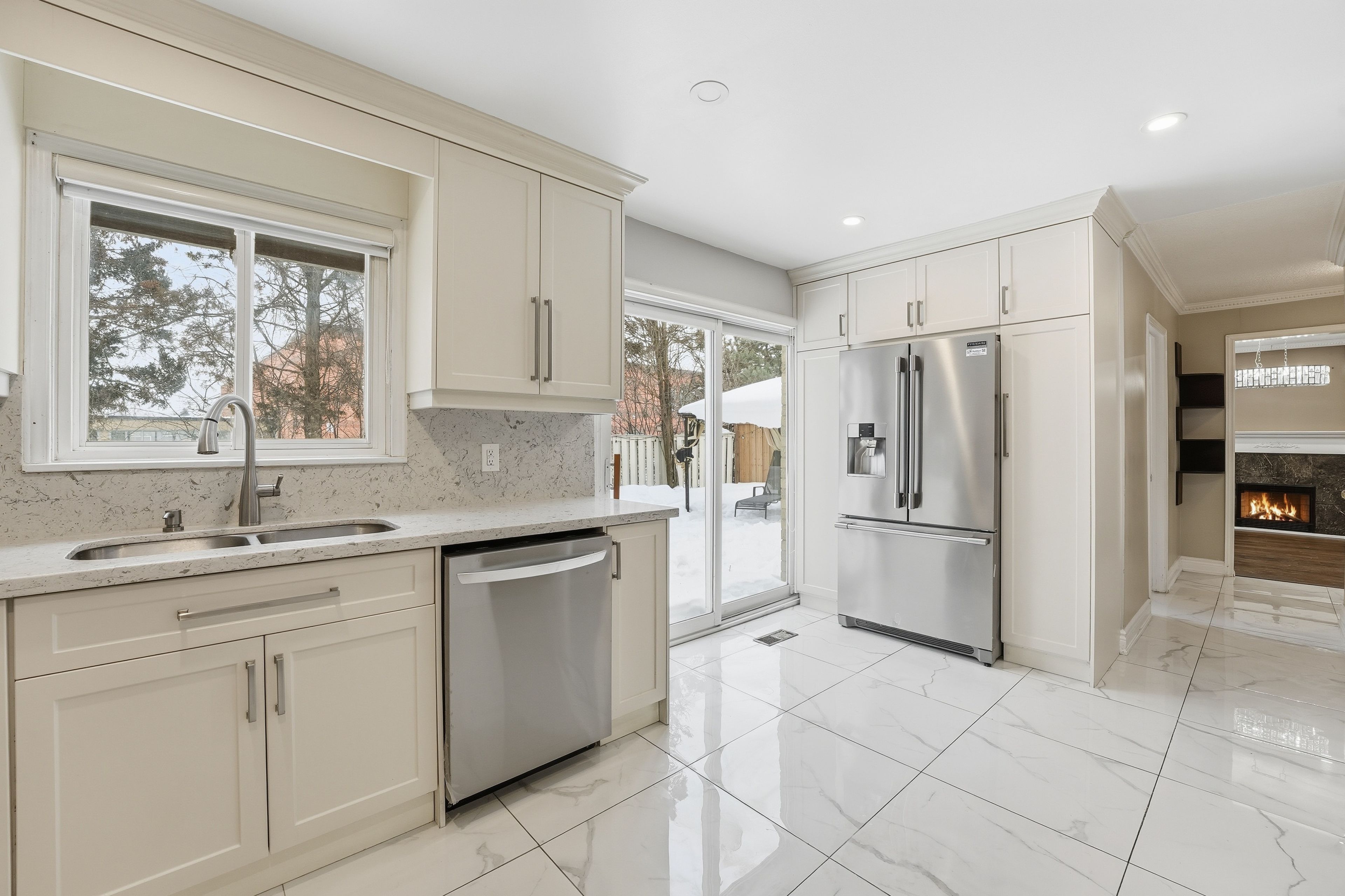 Welcome to 92 jaffa drive, a beautifully upgraded detached home tucked into the sought-after professor's lake community. Offering four spacious bedrooms above grade plus a fully finished two-bedroom basement, this residence delivers exceptional flexibility for growing families, multigenerational living, or income potential. The main and upper levels feature a well-balanced, functional layout with generously sized bedrooms, while the interiors have been thoughtfully upgraded with professional finishes throughout. Pot lights add warmth and clarity, an elegant hardwood staircase anchors the home, and the inviting living area is centred around a cozy fireplace. At the heart of the home, the open-concept kitchen has been fully modernized with stainless steel appliances, quartz countertops, and a custom backsplash, creating a space that is equally suited to everyday living and entertaining. The finished basement includes two additional bedrooms, a full bathroom, a kitchen, and a dedicated storage room, offering remarkable versatility. Step outside to a professionally finished deck and fully fenced backyard, ideal for private outdoor gatherings. A private driveway accommodates up to four vehicles. Set in a high-demand neighbourhood close to professor's lake, this home offers convenient access to public transit, schools, major highways, shopping centres, restaurants, the convention centre, and more. A must-see for families and investors alike.