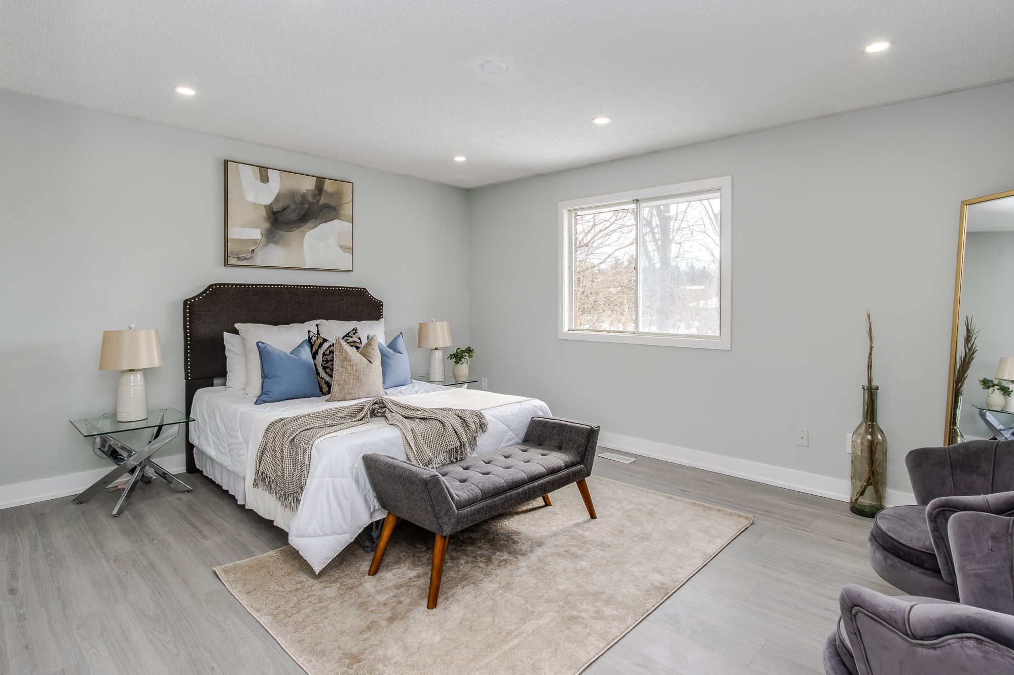 Situated in an excellent family-friendly neighborhood, this beautifully updated home is within walking distance to schools, parks, shopping, and just minutes to bayfield street amenities and hwy 400 access. Set on a generous lot backing onto a ravine - environmentally protected land, the property offers peaceful treed views and a large deck perfect for outdoor relaxation. The updated kitchen features ample storage, and great natural light, flowing seamlessly into the dining and living areas for easy everyday living and entertaining. Quartz countertop in the kitchen, upgraded tiles, upgraded washrooms, pot lights throughout the house make this property a must see. The property has been fully renovated - brand new hvac, hot water heater, roof, renovated interiors from top to bottom, huge bedroom sizes and huge windows. This property must be viewed to be fully appreciated.